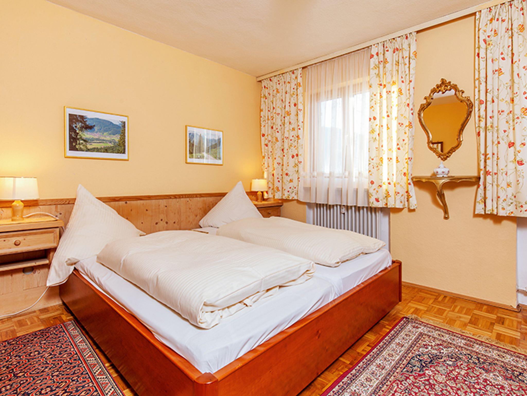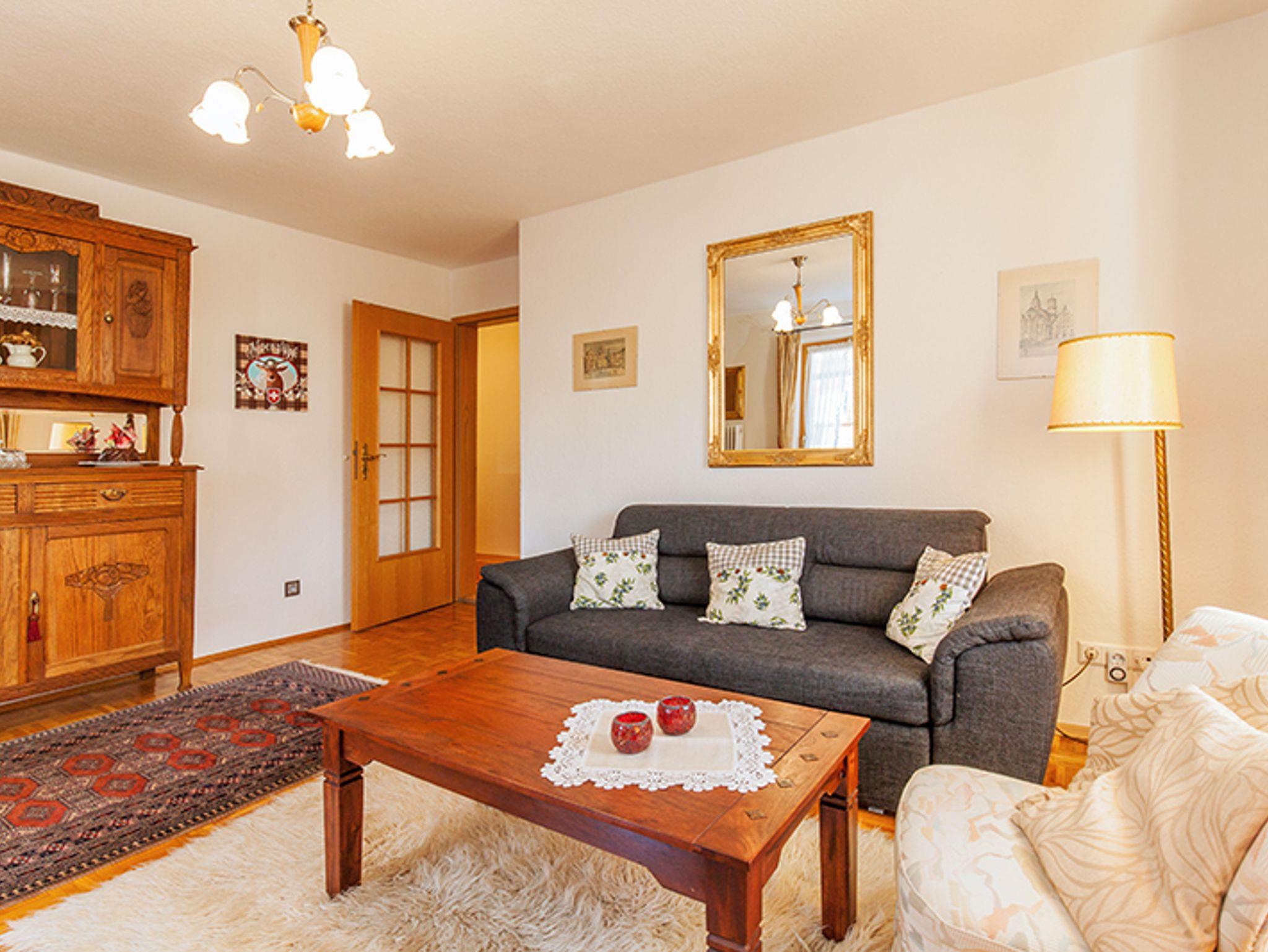 Unsere 53 m² große, gemütliche Ferienwohnung verfügt über ein Schlafzimmer mit Doppelbett sowie einen komfortablen Wohnraum mit Eß- und Sofaecke. Das Sofa kann bei Bedarf aufgebettet werden. Die Küche ist gut ausgestattet. Genießen Sie den herrlichen Bergblick auf unseren beiden möblierten Balkonen. Der zum Haus gehörende Parkplatz ist von der Wohnung aus einsehbar.