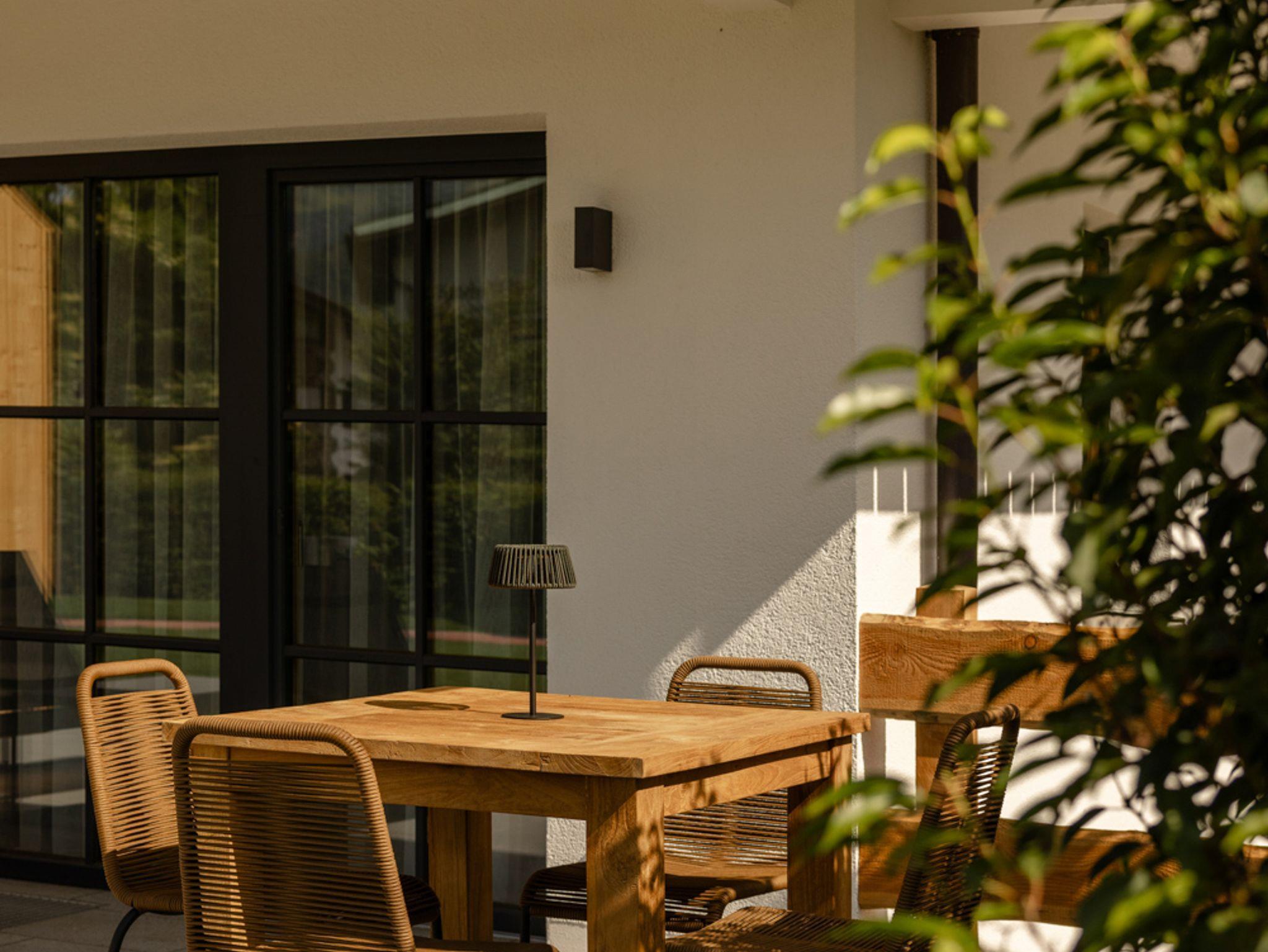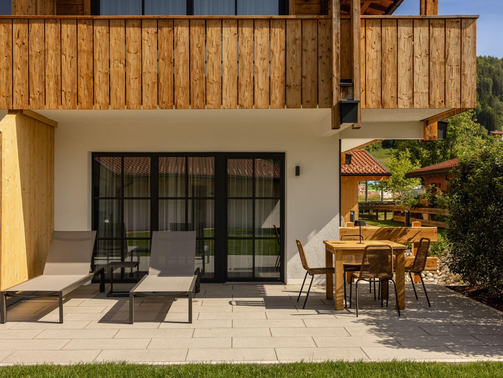 Für alle, die Ruhe mit Stil und Natur mit Komfort verbinden möchten: Sobald Sie Das Denisl betreten, stellt sich ein tiefes Gefühl der Erholung ein. Mitten im Herzen von Reit im Winkl, zentral an der Sonnenloipe, wartet ein neues Apartmenthaus mit 14 stilvollen, hellen Ferienwohnungen voller Flair auf Ihre unvergessliche Zeit im Chiemgau. Viel Altholz, gedeckte Farben, indirekte Beleuchtung, schwarze Armaturen und große Türen zu Balkon oder Terrasse machen Ihre Urlaubstage zu einem echten Design-Erlebnis. Freuen Sie sich auf bestens ausgestattete Küchen, einladende Essbereiche, gemütliche Ledersofas, große Waschtische, kuschelige Boxspringbetten und Regenduschen, die Sie rundum verwöhnen und entspannen lassen. Im Haus zählt der großzügige Aufenthalts- und Eventraum mit 120?m² zu einem beliebten Treffpunkt, um gemütlich zusammenzusitzen, gemeinsam zu feiern oder Tagungen durchzuführen – ausgestattet mit Küche, Theke, Tontechnik, Getränke-/Snackautomat und einer großen Sonnenterrasse mit Blick ins Grüne. Für Aktive Urlauber beginnen direkt vor der Tür idyllische Wanderwege, tolle Biketouren und gepflegte Skiloipen im Winter. Ihre Ausrüstung ist dabei bestens aufgehoben: im großen Skikeller mit Spinden und Skiwerkstatt sowie im Radlhäusl mit Fahrraddusche, Werkstatt und Spinden. Für entspannte Momente sorgt die charmante Sauna im Garten – Ihr Rückzugsort für Körper und Geist. Familien freuen sich über den Spielplatz und das Freibad ganz in der Nähe, aktive Urlauber schätzen schätzen die Haltestelle für den Wanderbus direkt hinter dem Haus. Kostenlose Parkplätze sind in ausreichender Anzahl im Hof vorhanden und wer elektrisch unterwegs ist, findet eine E-Ladestation bei der nahen Tourist-Info.