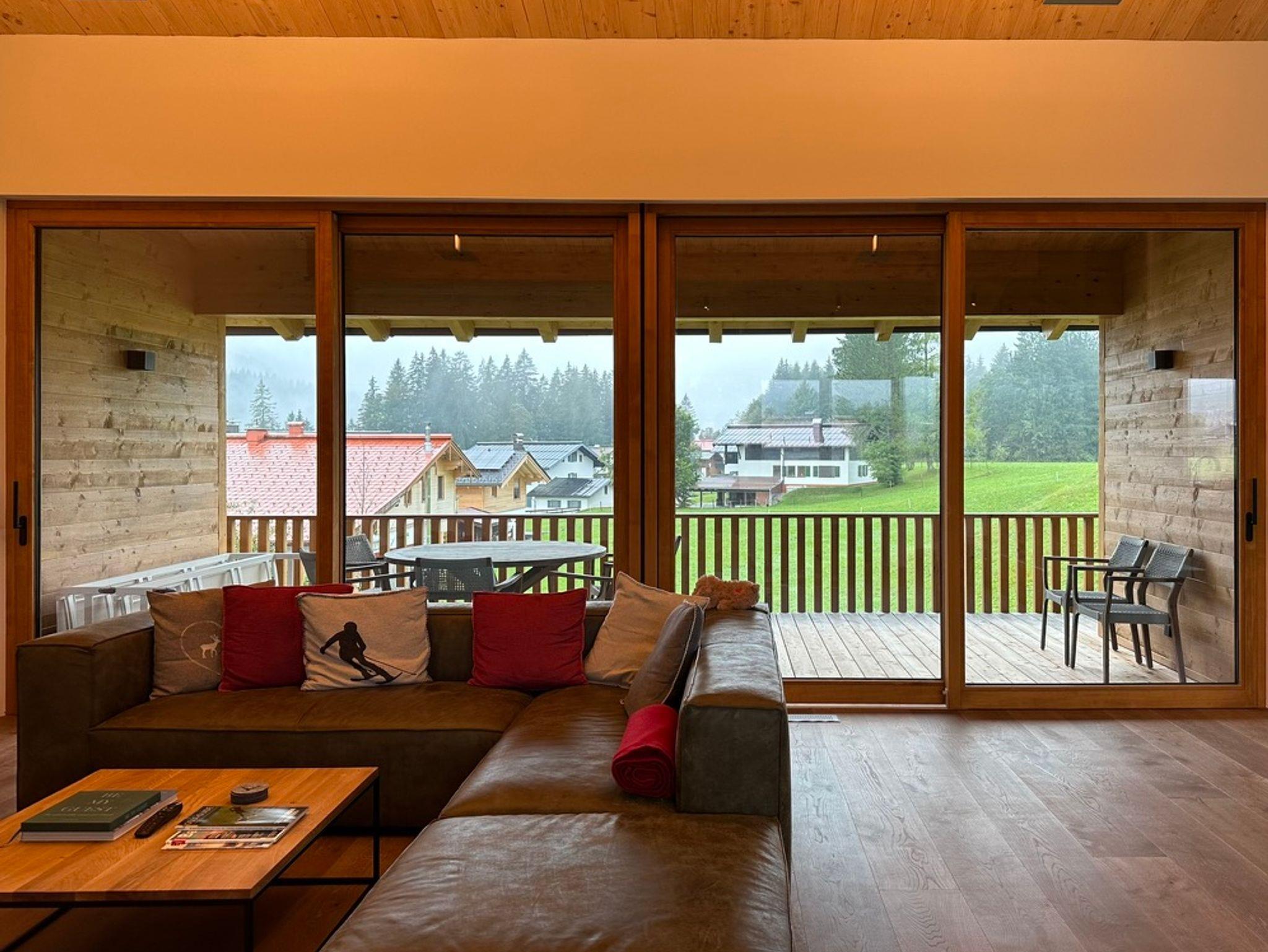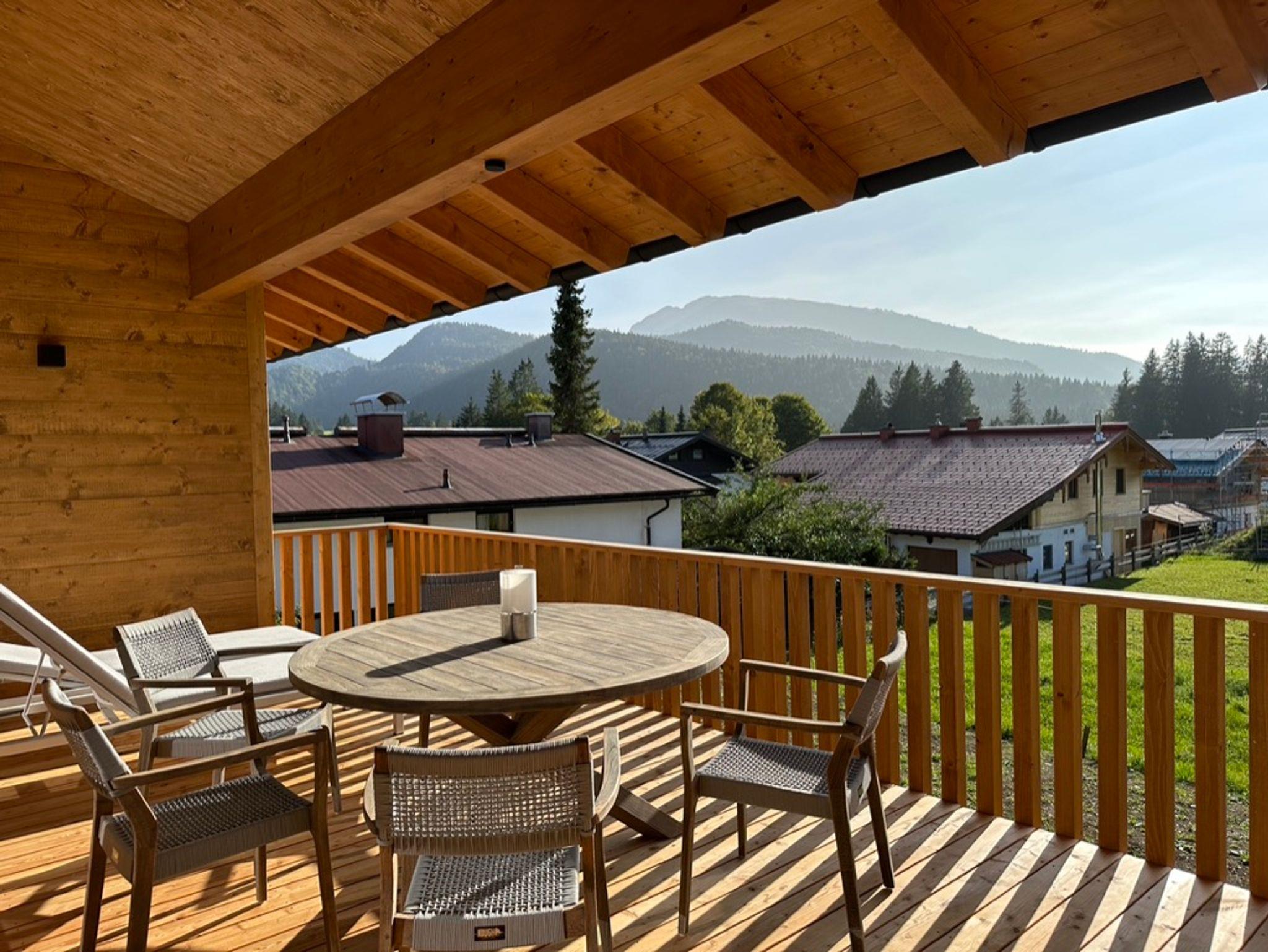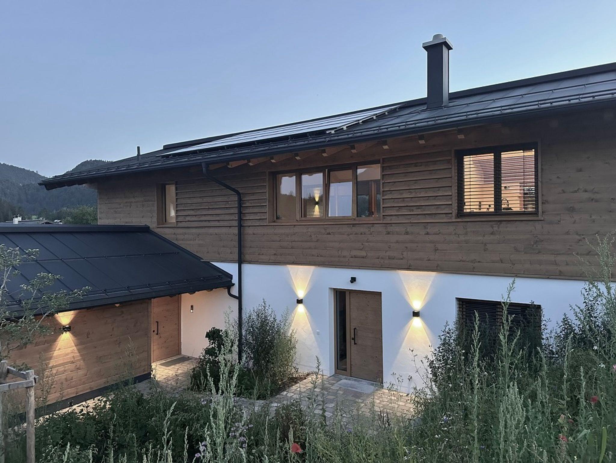 Die besondere Lage vis-a-vis des Ortes mit der Kirche im Mittelpunkt, nur getrennt durch eine Auenfläche mit Wiesengrün, schafft reizvolle Ausblicke in die Landschaft, insbesondere auf das Massiv des Zahmen Kaisers, den Unterberg oder auf den Golfplatz von Reit im Winkl/Kössen. Österreich ist zum Greifen nahe. Der Ausblick in die Natur ist zu jeder Jahreszeit ein besonderes Erlebnis. Das Erwachen der Natur im Frühjahr mit den letzten Schneefeldern auf den Bergen, der Morgentau über den Feldern und Wäldern, das Erleben der sommerlichen Wärme mit saftigem Grün der Blumenwiesen, der goldene Herbst mit grasenden Kühen jenseits des Gartens oder die direkt am Haus vorbeiführende Langlaufloipe laden zu jeder Jahreszeit zum Verweilen in der Natur ein. Hinter dem Haus verläuft unmittelbar die Loipe der Ortsrunde, die Langlaufski können noch auf dem Grundstück angeschnallt werden. Viele Wandermöglichkeiten starten unmittelbar vor der Haustür und führen über Wiesen und durch Wälder vorbei am nah gelegenen Gewässer der Lofer mit seinem klarem Gebirgswasser. Der nächste Ski- und Rodelhang ist fußläufig in wenigen Minuten erreichbar. Auch die reizvolle Laufstrecke als Dorfrunde entlang der Lofer, über Wiesen, Pfade und Wege zum Ortsteil Blindau und zum Ausgangspunkt zurück, führen am Haus vorbei.
