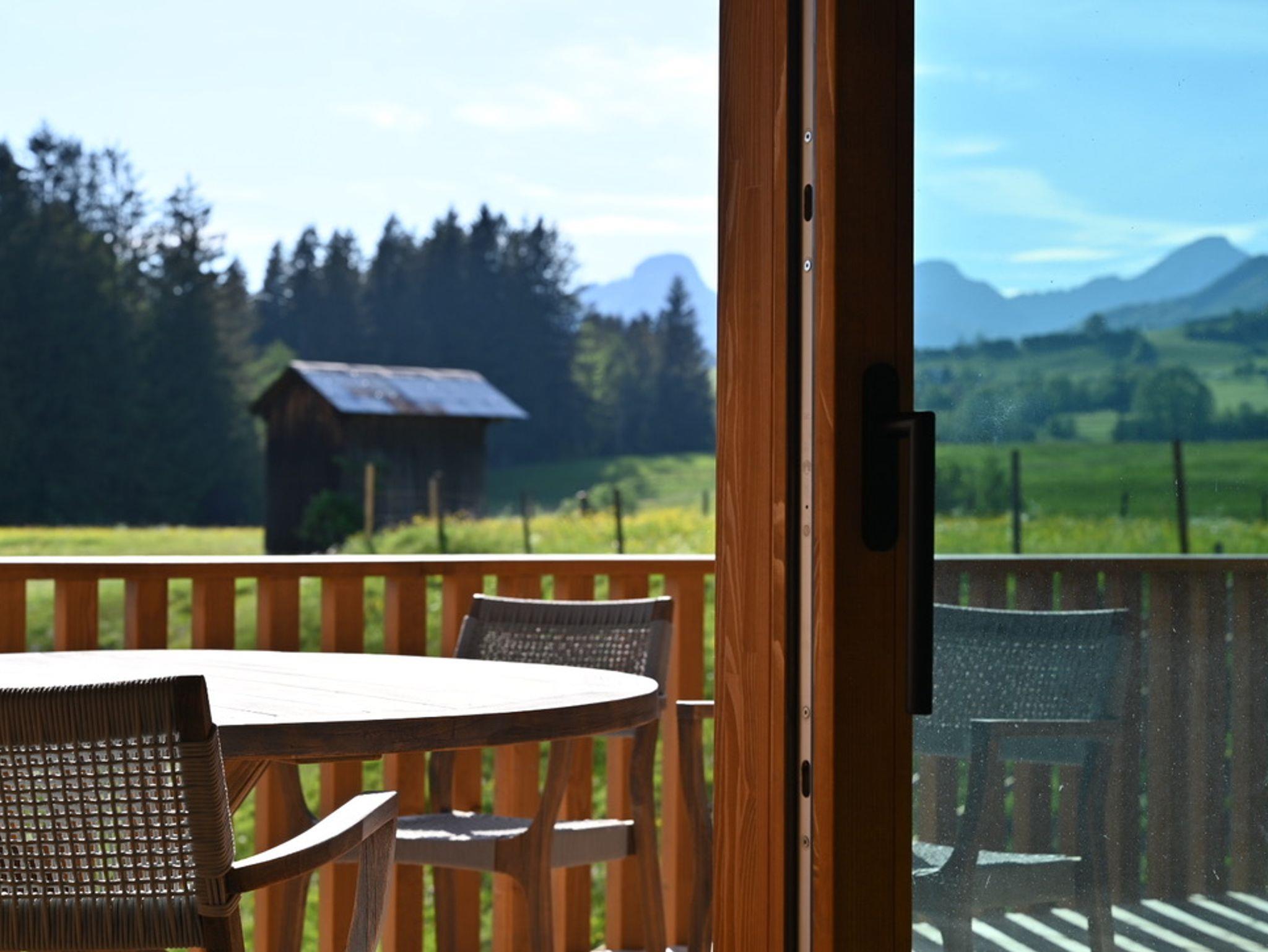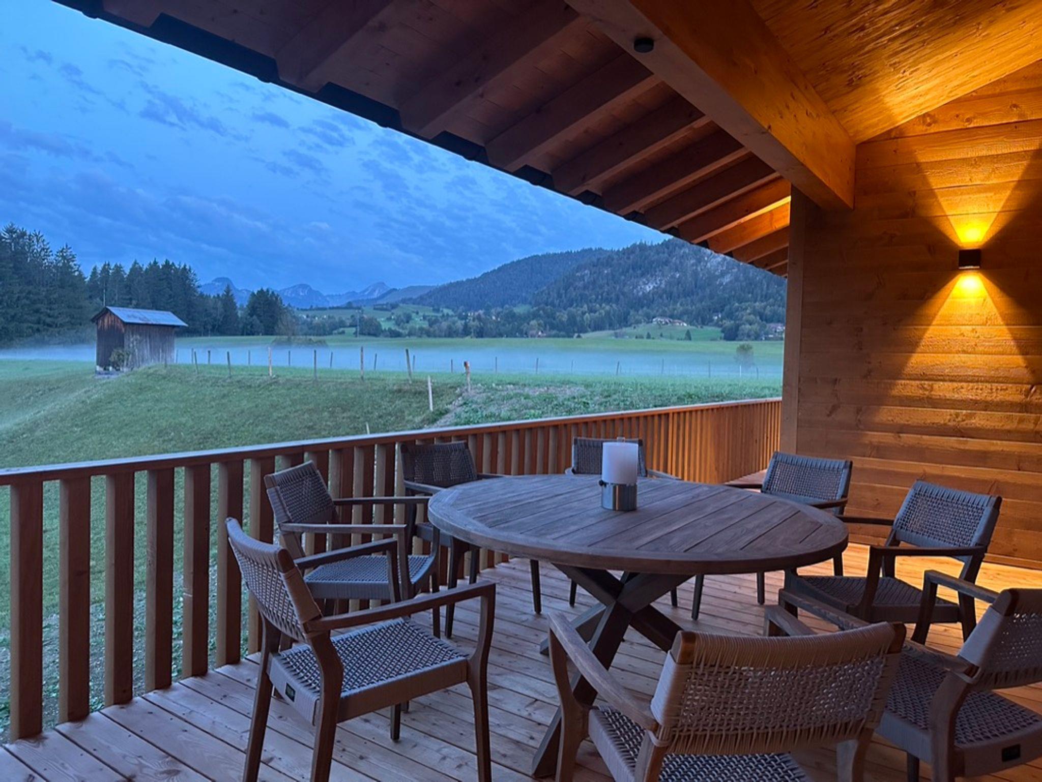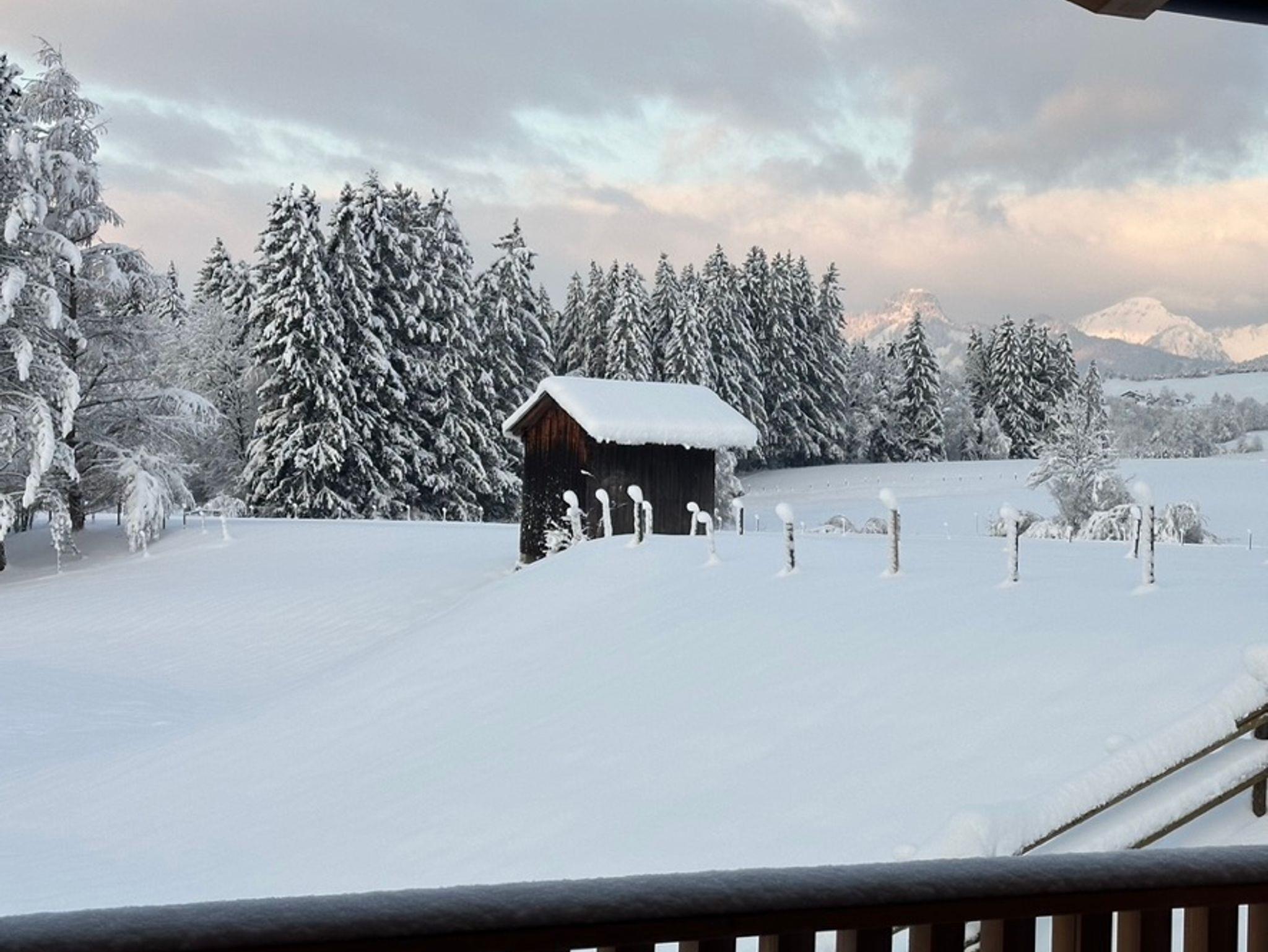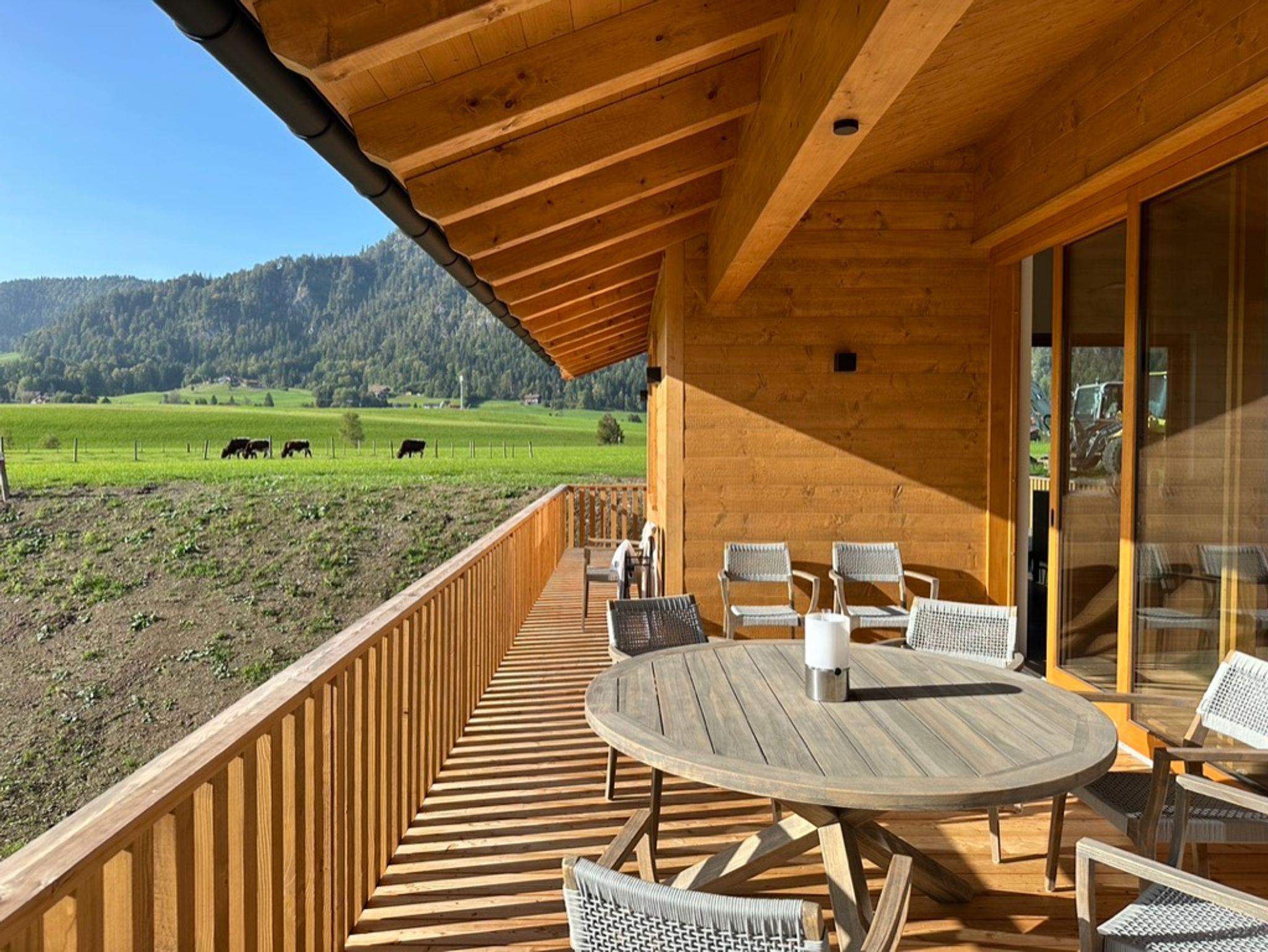 Die besondere Lage vis-a-vis des Ortes mit der Kirche im Mittelpunkt, nur getrennt durch eine Auenfläche mit Wiesengrün, schafft reizvolle Ausblicke in die Landschaft, insbesondere auf das Massiv des Zahmen Kaisers, den Unterberg oder auf den Golfplatz von Reit im Winkl/Kössen. Österreich ist zum Greifen nahe. Der Ausblick in die Natur ist zu jeder Jahreszeit ein besonderes Erlebnis. Das Erwachen der Natur im Frühjahr mit den letzten Schneefeldern auf den Bergen, der Morgentau über den Feldern und Wäldern, das Erleben der sommerlichen Wärme mit saftigem Grün der Blumenwiesen, der goldene Herbst mit grasenden Kühen jenseits des Gartens oder die direkt am Haus vorbeiführende Langlaufloipe laden zu jeder Jahreszeit zum Verweilen in der Natur ein. Hinter dem Haus verläuft unmittelbar die Loipe der Ortsrunde, die Langlaufski können noch auf dem Grundstück angeschnallt werden. Viele Wandermöglichkeiten starten unmittelbar vor der Haustür und führen über Wiesen und durch Wälder vorbei am nah gelegenen Gewässer der Lofer mit seinem klarem Gebirgswasser. Der nächste Ski- und Rodelhang ist fußläufig in wenigen Minuten erreichbar. Auch die reizvolle Laufstrecke als Dorfrunde entlang der Lofer, über Wiesen, Pfade und Wege zum Ortsteil Blindau und zum Ausgangspunkt zurück, führen am Haus vorbei.