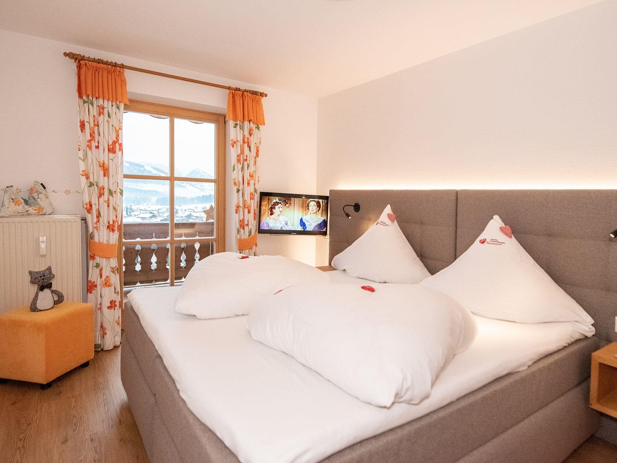 Ideal für einen schönen Urlaub zu zweit sind unsere Ferienwohnungen mit 2 Zimmern, jeweils buchbar mit Sonnenterrasse oder Balkon. Viel Wohnkomfort für Familien mit Kindern bieten unsere 3-Raum-Ferienwohnungen für bis zu 5 Personen. Sie verfügen über 2 getrennte Schlafzimmer und zum Teil auch über zwei Bäder. Erholung pur erwartet unsere Gäste in unserer Ferienwohnung Kaiserwinkl exklusiv mit eigenem Wellnessbereich.