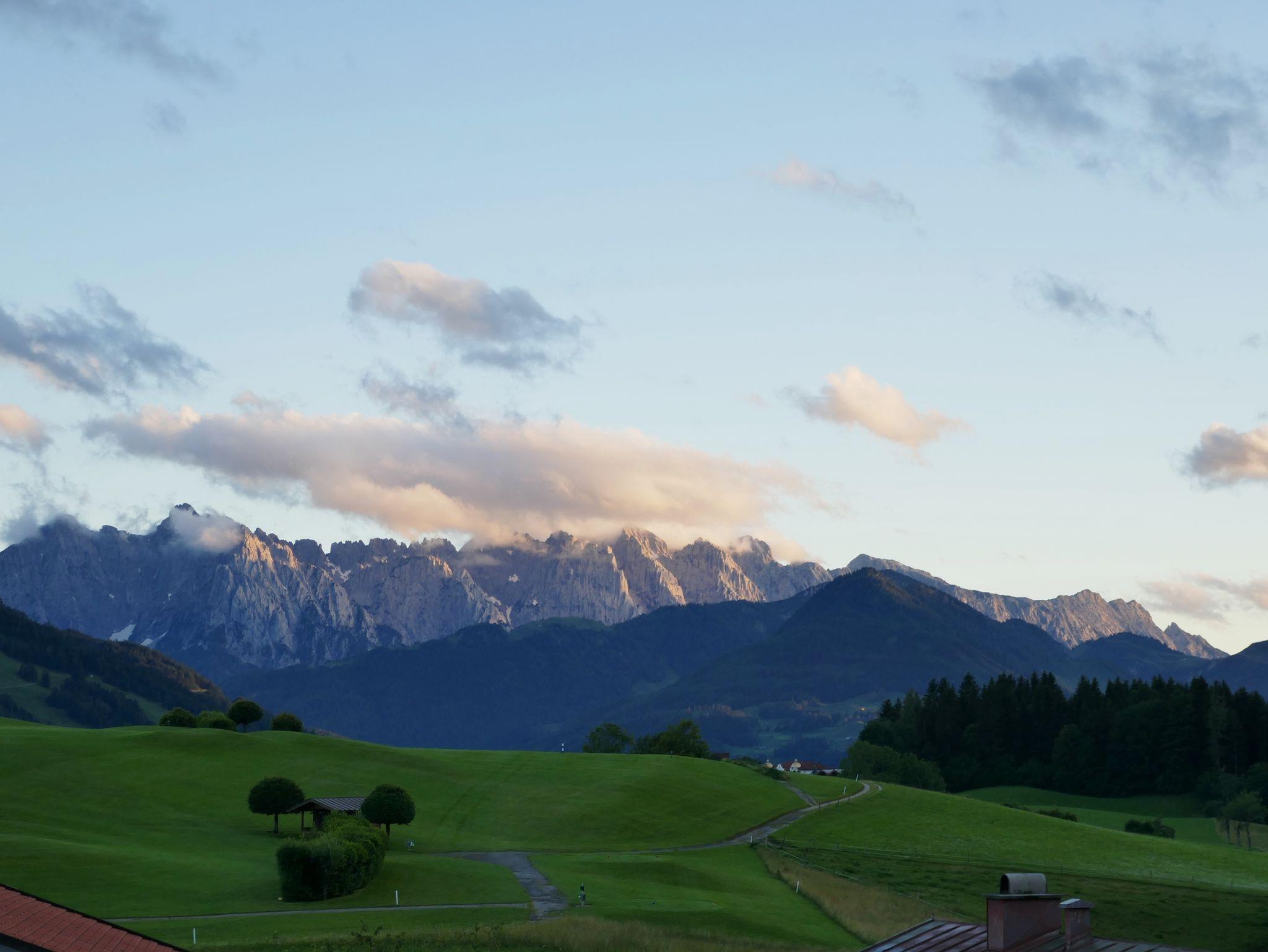 Unser Haus befindet sich in herrlich ruhiger Südhang Lage mit freiem Blick auf den Wilden und Zahmen Kaiser und die umliegenden Berge.