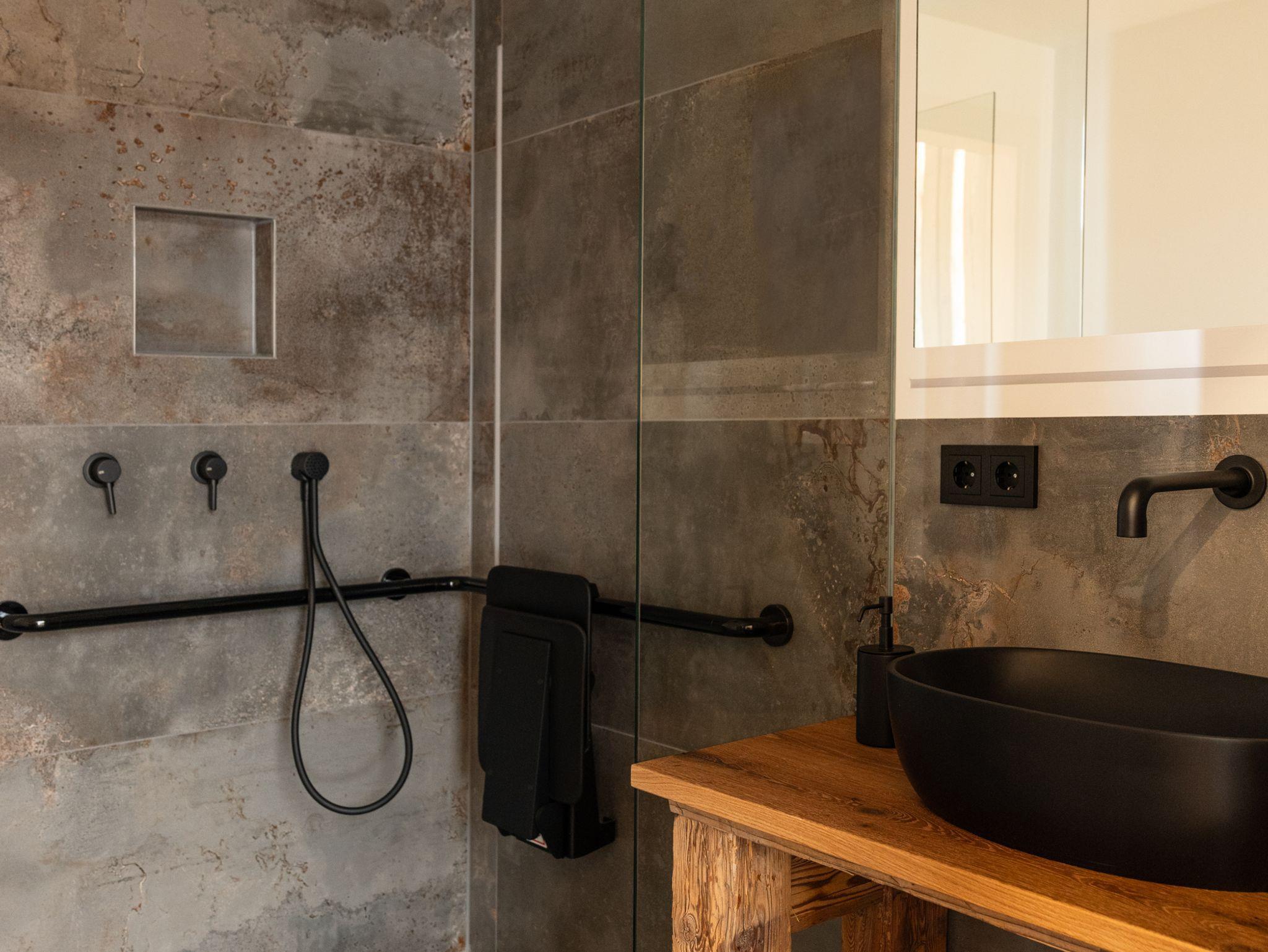 55?m² behindertengerechter Komfort, der Freiheit spürbar macht: Diese schwellenlose Wohnung für zwei Personen verbindet durchdachte Zugänglichkeit mit exklusiver Einrichtung und liebevollen Details. Freuen Sie sich auf ein großzügiges Bad mit Duschsitz, WC mit Stützhilfe, gemütliches Boxspringbett, Ledersofa und eine große Sonnenterrasse für Ihre persönliche Auszeit im Grünen.