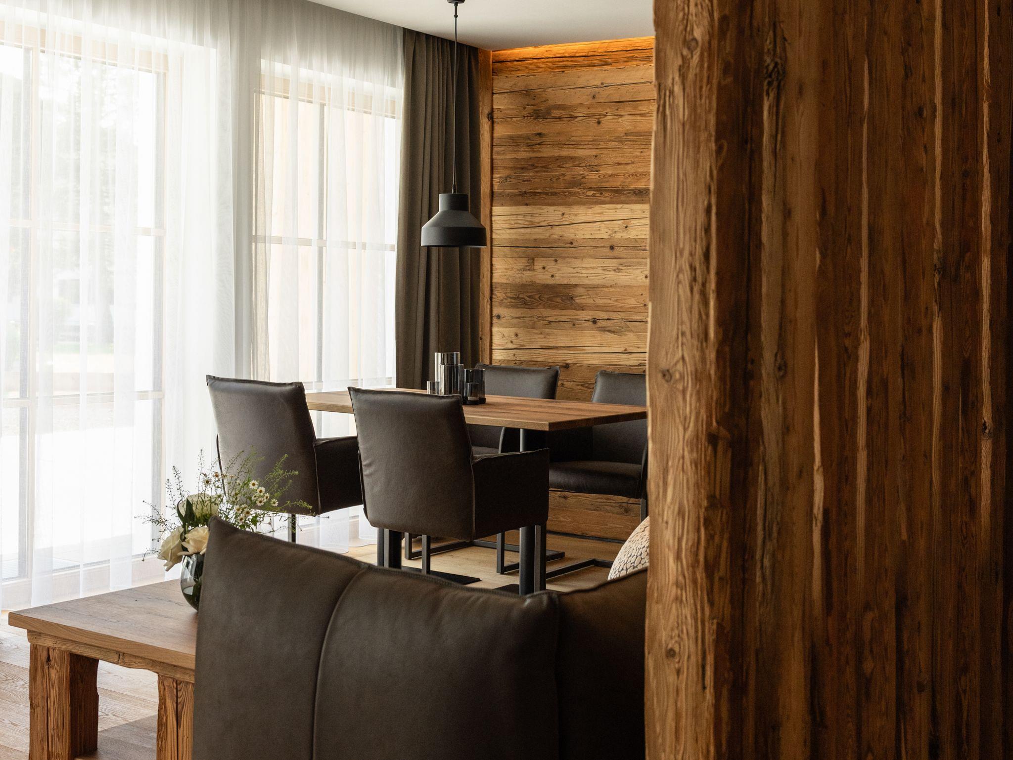 Für alle, die Ruhe mit Stil und Natur mit Komfort verbinden möchten: Sobald Sie Das Denisl betreten, stellt sich ein tiefes Gefühl der Erholung ein. Mitten im Herzen von Reit im Winkl, zentral an der Sonnenloipe, wartet ein neues Apartmenthaus mit 14 stilvollen, hellen Ferienwohnungen voller Flair auf Ihre unvergessliche Zeit im Chiemgau. Viel Altholz, gedeckte Farben, indirekte Beleuchtung, schwarze Armaturen und große Türen zu Balkon oder Terrasse machen Ihre Urlaubstage zu einem echten Design-Erlebnis. Freuen Sie sich auf bestens ausgestattete Küchen, einladende Essbereiche, gemütliche Ledersofas, große Waschtische, kuschelige Boxspringbetten und Regenduschen, die Sie rundum verwöhnen und entspannen lassen. Im Haus zählt der großzügige Aufenthalts- und Eventraum mit 120?m² zu einem beliebten Treffpunkt, um gemütlich zusammenzusitzen, gemeinsam zu feiern oder Tagungen durchzuführen – ausgestattet mit Küche, Theke, Tontechnik, Getränke-/Snackautomat und einer großen Sonnenterrasse mit Blick ins Grüne. Für Aktive Urlauber beginnen direkt vor der Tür idyllische Wanderwege, tolle Biketouren und gepflegte Skiloipen im Winter. Ihre Ausrüstung ist dabei bestens aufgehoben: im großen Skikeller mit Spinden und Skiwerkstatt sowie im Radlhäusl mit Fahrraddusche, Werkstatt und Spinden. Für entspannte Momente sorgt die charmante Sauna im Garten – Ihr Rückzugsort für Körper und Geist. Familien freuen sich über den Spielplatz und das Freibad ganz in der Nähe, aktive Urlauber schätzen schätzen die Haltestelle für den Wanderbus direkt hinter dem Haus. Kostenlose Parkplätze sind in ausreichender Anzahl im Hof vorhanden und wer elektrisch unterwegs ist, findet eine E-Ladestation bei der nahen Tourist-Info.