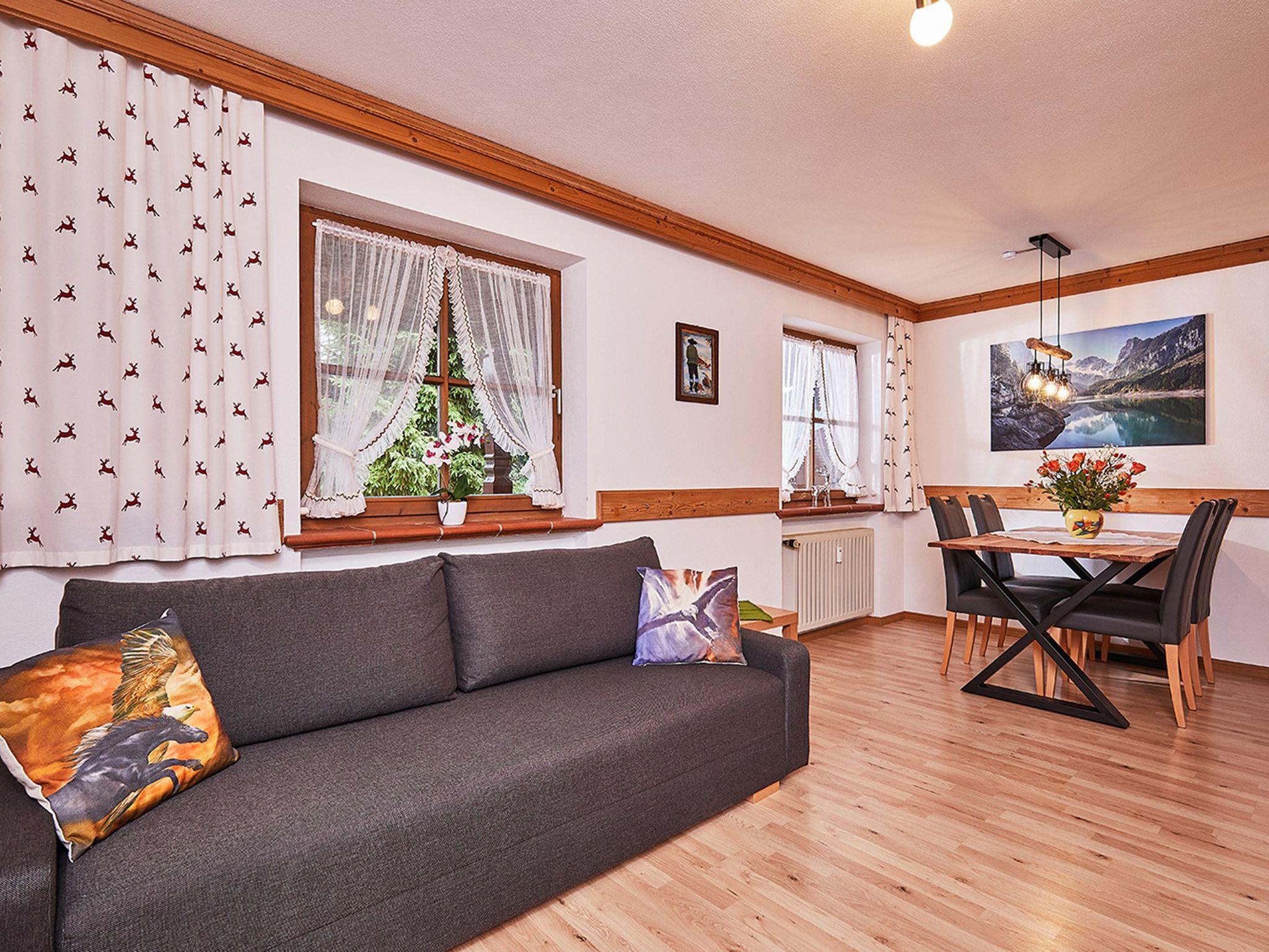 Die helle und ruhige 2-Raum-Wohnung verfügt über ein Wohnzimmer mit Schlafsofa und Essecke, ein getrenntes Schlafzimmer mit Doppelbett, Einbauküche, Bad mit Fenster, großem Süd- und Westbalkon mit Balkonmöbel. Die Wohnung bietet ausreichend Platz für 2 Erwachsene und 2 Kinder, die Wohnungsgröße beträgt 50 Quadratmeter. Unsere Gäste haben mit der Gästekarte freien Eintritt in das Freibad Reit im Winkl, das Waldschwimmbad in Kössen sowie den Badestrand am Walchsee und können im Winter die Benz-Eck-Skilifte kostenlos nutzen. Auf Wunsch werden kostenlos Rodel zur Verfügung gestellt.