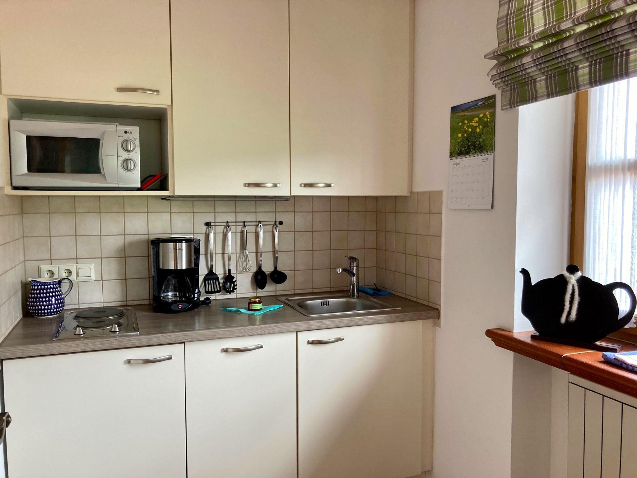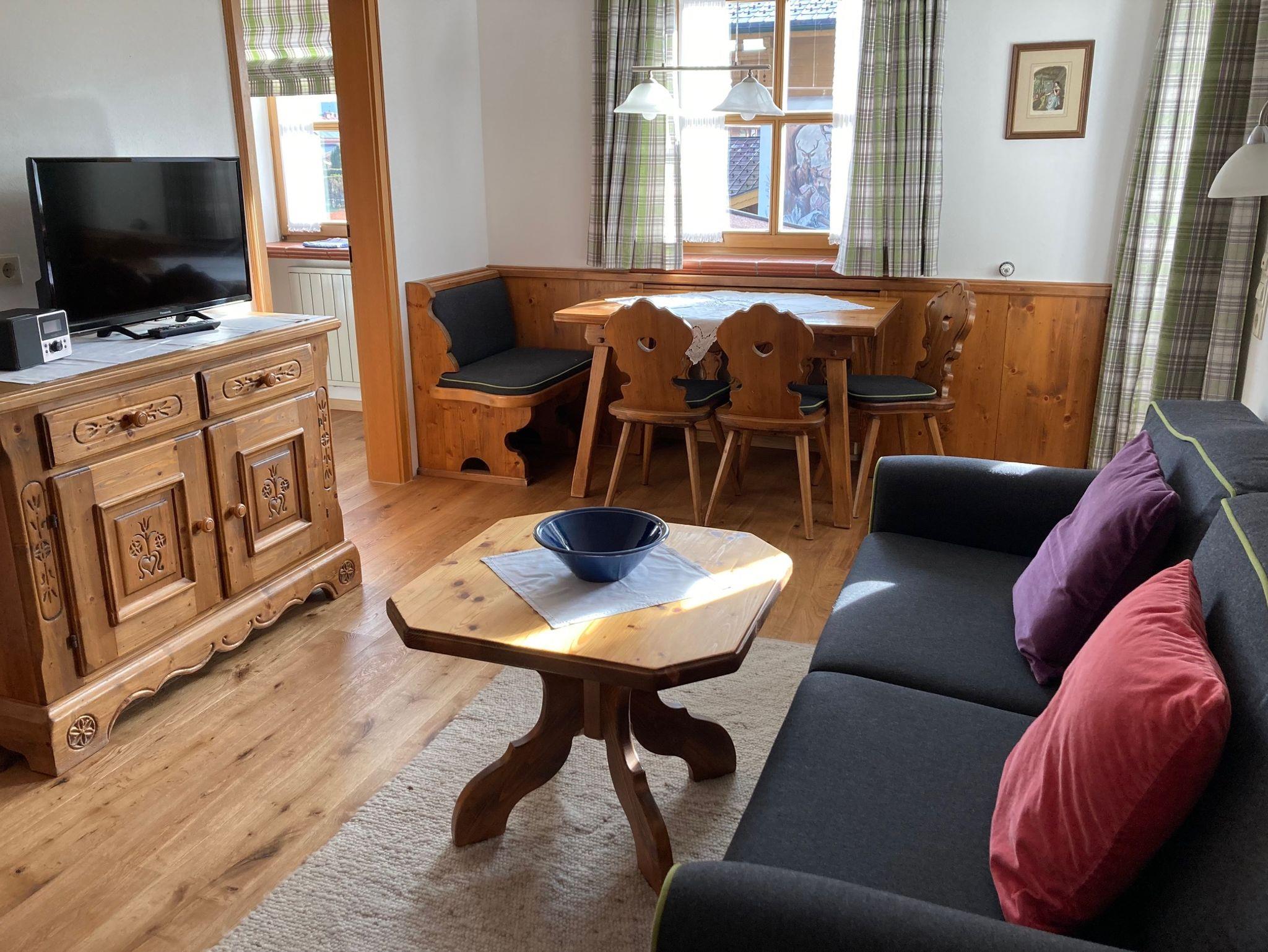 Großzügige und gemütlich eingerichtete Zwei-Raum-Ferienwohnung, ca. 44 qm im 1.OG. Für Allergiker geeignet mit Parkettboden. Großer umlaufender Süd-West-Balkon mit Holzmöbeln. Freier Blick auf Kaisergebirge und Langlaufstadion. Neue, separate Einbau-Küche mit Geschirrspüler und Mikrowelle. Bett- und Tischwäsche, sowie Handtücher sind ausreichend vorhanden. Flat/TV und Radio, W-LAN kostenlos.