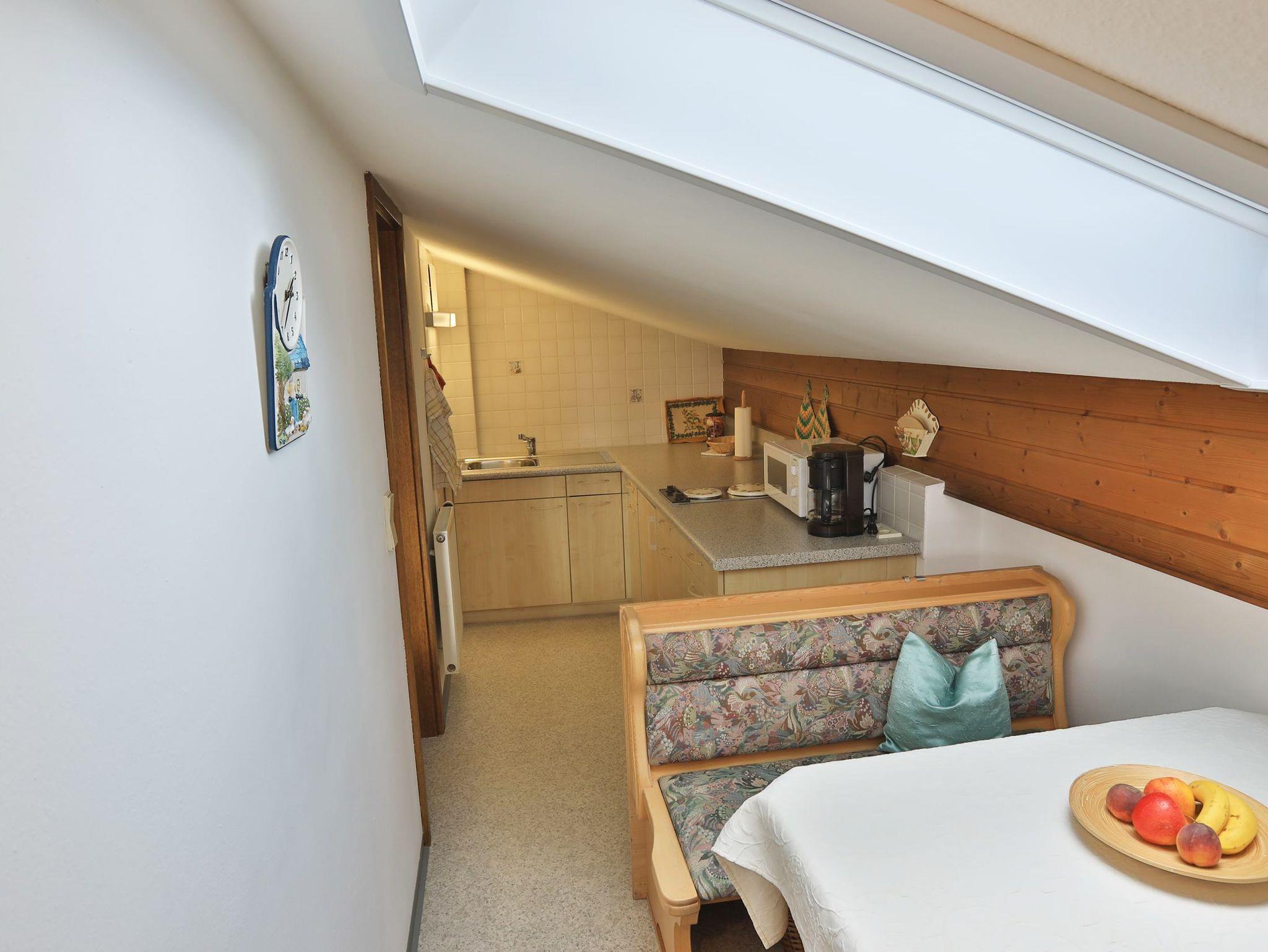 Appartement mit Küche, Sitzecke in der Küche, Bad, Diele und bestens ausgestattet mit Oberland Möbel. 2. Etage und Südbalkon.