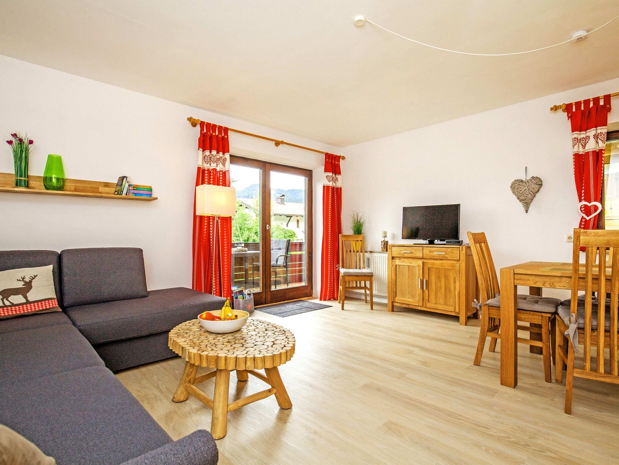 Die Wohnung ‚Schmankerl‘ wurde vor einigen Jahren renoviert, dabei wurden auch alle Möbel erneuert. Der moderne, hochwertig eingerichtete Wohnbereich strahlt ein angenehmes Wohngefühl aus und verfügt über einen Essbereich und eine große, komfortable Sofagarnitur. Die neue, vollausgestattete Einbauküche ist unter anderem mit Induktionsherd, Spülmaschine, Mikrowelle, Kaffeemaschine, Toaster, Wasserkocher, ausgestattet und lässt keine Wünsche offen. In einem der Schlafzimmer befindet sich ein bequemes Doppelbett, während das andere mit einem ausziehbaren Doppelbett ausgestattet ist. Bei Bedarf stehen auch ein Kleinkindbett und ein Hochstuhl zur Verfügung. Das helle, große Badezimmer verfügt über WC, Dusche und zwei Waschbecken. Zwei gemütliche Balkone laden bei sonnigem Wetter zum Entspannen ein und bieten eine herrliche Aussicht auf die umliegenden Berge. Zur Unterhaltung stehen unseren Gästen ein Flachbildfernseher, Blu-Ray-Player, Bose-Bluetooth-Lautsprecher und kostenloses WLAN zur Benutzung. Außerdem gibt es eine Waschmaschine im Keller, einen Trockenraum, und einen abschließbaren Ski- und Fahrradraum – selbstverständlich auch ein eigener Parkplatz. Dank der naturnahen Lage finden Sie direkt vor der Haustüre Wander-, Spazier- und Radwege, unter anderem zum Walmberg und zur beliebten Chiemseeschau. Auch Langläufer kommen auf ihre Kosten, denn die bestens gepflegten Langlaufloipen sind nur wenige Gehminuten entfernt. Ein großer Supermarkt ist etwa 500 Meter oder 10 Fußminuten. Zur Haltestelle für den Skibus läuft man etwa 400 Meter. Der malerische Ortskern von Reit im Winkl mit seinen zahlreichen Geschäften und Wirtshäusern ist ca. 1,5 km entfernt. Haustiere sind herzlich willkommen!