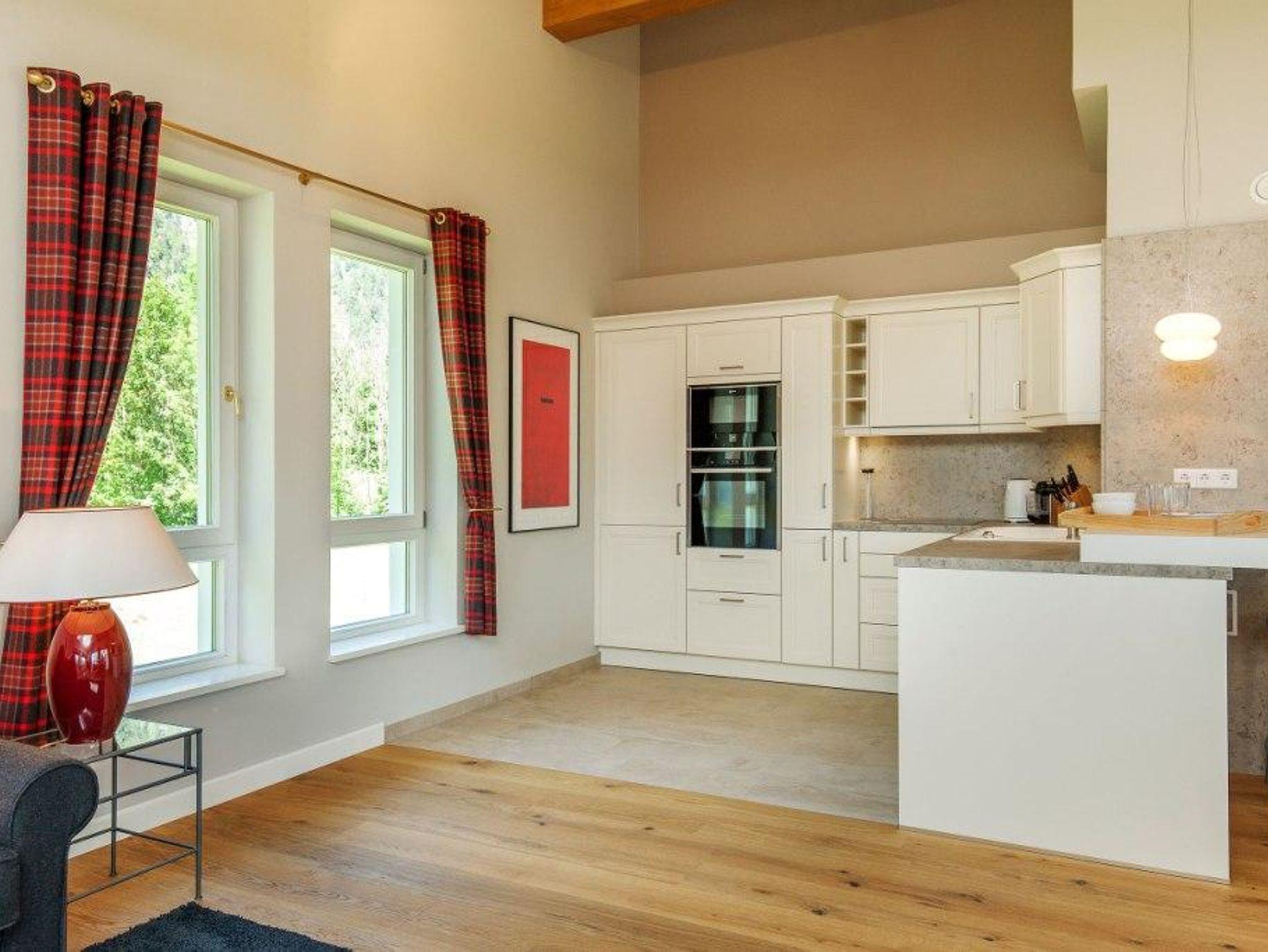 Unsere 80 m² große Ferienwohnung Wilder Kaiser verfügt über ein separates Entrée und ist im modernen Landhausstil eingerichtet. Vom Wohnzimmer mit offener Küche genießen Sie den Blick auf den angrenzenden Golfplatz. Der Südbalkon bietet eine gemütliche Sitzgelegenheit und eine herrliche Aussicht auf ein faszinierendes Bergpanorama. Das separate Schlafzimmer hat ein Boxspringbett mit 1,80 x 2,00 m. Für zwei weitere Personen steht im Wohnzimmer eine Schlafcouch (2,00 x 2,00 m) mit Federkernmatratze bereit. Ein voll ausgestattetes Badezimmer mit Dusche, Badewanne, WC, Handtuchtrockner, Bademäntel erwartet Sie. W-LAN Internetzugang, TV-Flachbildschirm und Stereoanlage mit USB- und I-Phone-Zugang. Komplett ausgestattete Küche, Induktionskochfeld, Mikrowelle, Backofen, große Kühl-Gefrierkombi, Spülmaschine, Nespresso Kaffeemaschine uns sonstige Küchenhilfen.