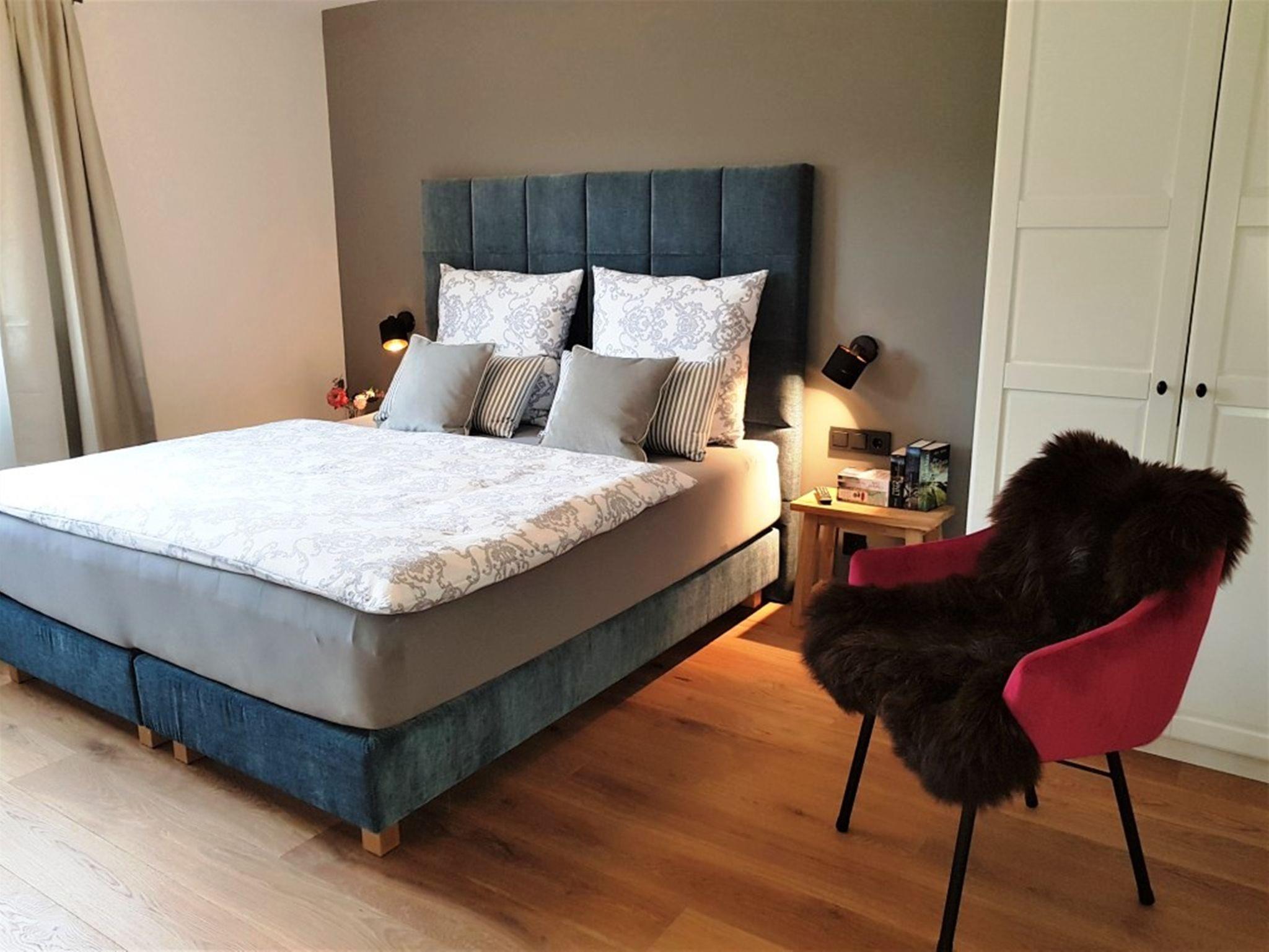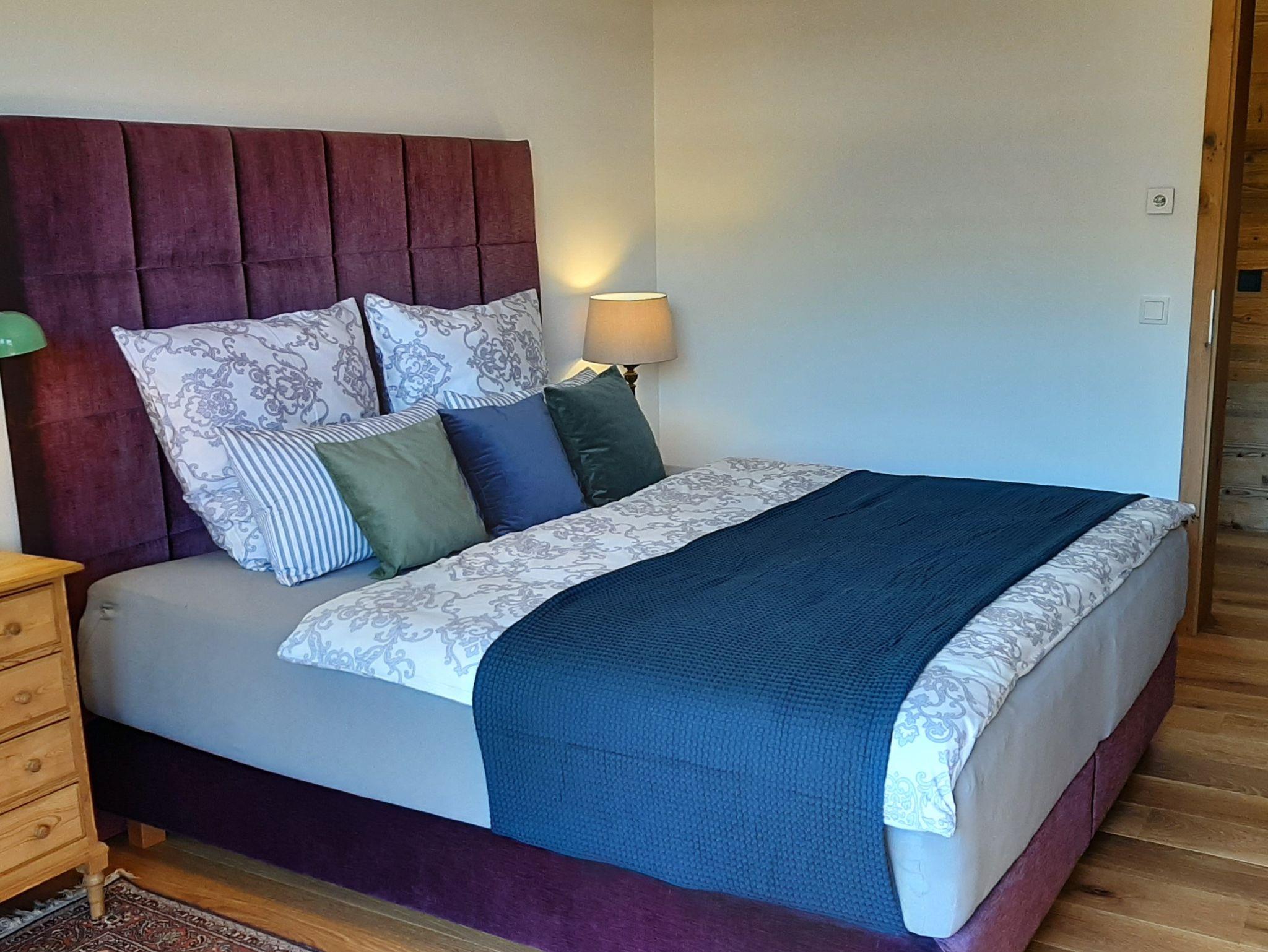 Die Ferienwohnung Kaiserblick befindet sich im Erdgeschoss und verfügt über eine Terrasse mit direktem Gartenzugang. Sie ist nach Süden und Westen ausgerichtet - mit Panoramablick auf das Kaisergebirge. Die Wohnung ist 80 qm groß, verfügt über ein Wohnzimmer mit Wohnküche und gemütlicher Eckbank sowie über zwei Schlafzimmer mit Boxspring-Betten - perfekt für 2-4 Personen. Die Wohnung ist sehr hochwertig mit Vollholzparkett, Fußbodenheizung, Markenküche mit Spülmaschine und Backofen, großzügigem Wohnzimmer, 2 großen Flachbildschirmen, High-Speed-Internet, Walk-In-Regendusche ausgestattet.