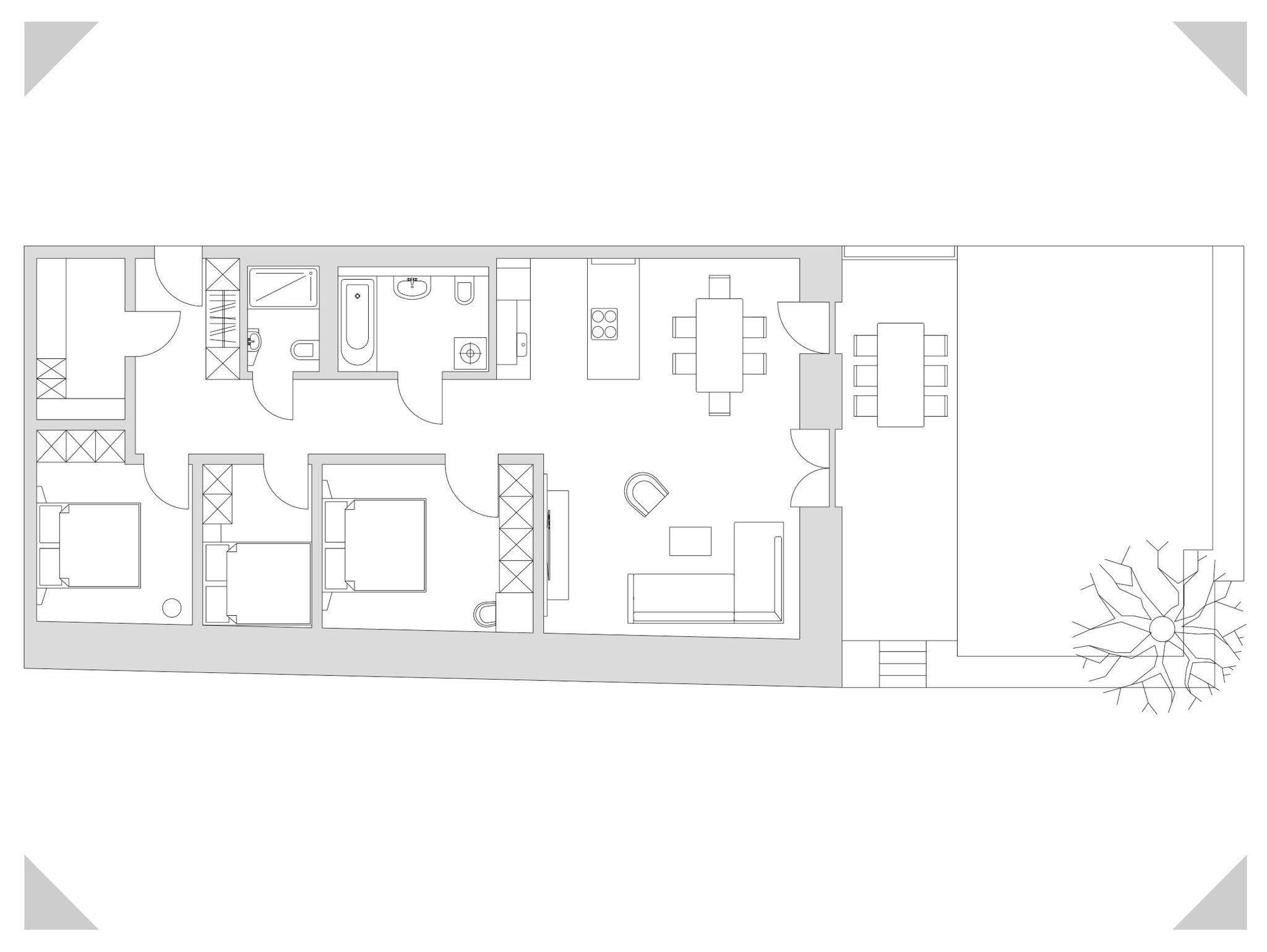 Die Wohnung wurde 2022 neu eingerichtet und verfügt über ein grosses Wohnzimmer, einen Essbereich, eine voll ausgestattete Küche, zwei Badezimmer (Bad/WC/Waschmaschine, Dusche/WC) sowie drei separate Schlafzimmer mit folgenden Merkmalen:
