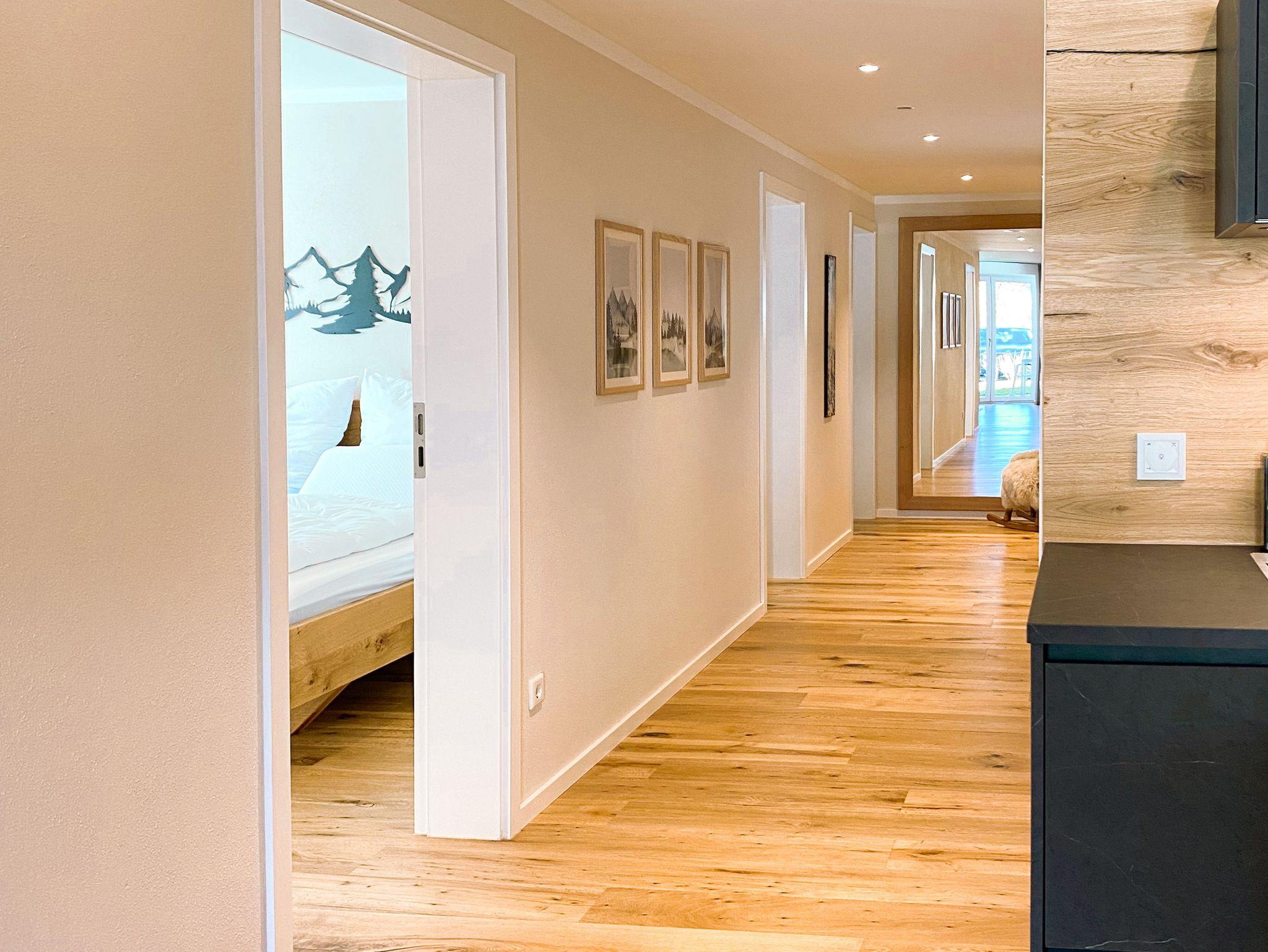 Die Ende 2022 erst fertiggestellte, luxuriöse Ferienwohnung Schneewinkl im kernsanierten ehemaligen Gasthof Blaserwirt ist der perfekte Ausgangspunkt für Urlaub in den Chiemgauer Alpen. Langlaufloipen und Wanderwege sind in unmittelbarer Nähe. Direkt bei der Wohnung hält der Skibus zur Talstation Seegatterl des Skigebiets Winklmoosalm - Steinplatte. Zum Dorfzentrum mit vielen Restaurants und Einkaufsmöglichkeiten sind es ca. 1,3 km, wobei das nächstgelegene Restaurant lediglich 200 Meter entfernt ist. Im Sommer kann man bei schönem Wetter das Frühstück in der herrlichen Morgensonne auf der Terrasse genießen oder ein Buch in der Sonnenliege im Garten lesen. Mit einem kostenlosen Babybett, Kindergeschirr- und Besteck, Krabbeldecke, Spielzeug und Puzzles sowie einem Schlitten ist die Wohnung auch für Familien mit Kleinkindern bestens ausgestattet. Es stehen zwei kostenfreie Parkplätze zur Verfügung. Die Wohnung für bis zu sechs Personen mit drei Schlafzimmern, Küche, Wohnzimmer, zwei Bädern und Garten ist komplett smart ausgestattet. Sie verbindet Altbaucharme mit hochwertiger, moderner Ausstattung.