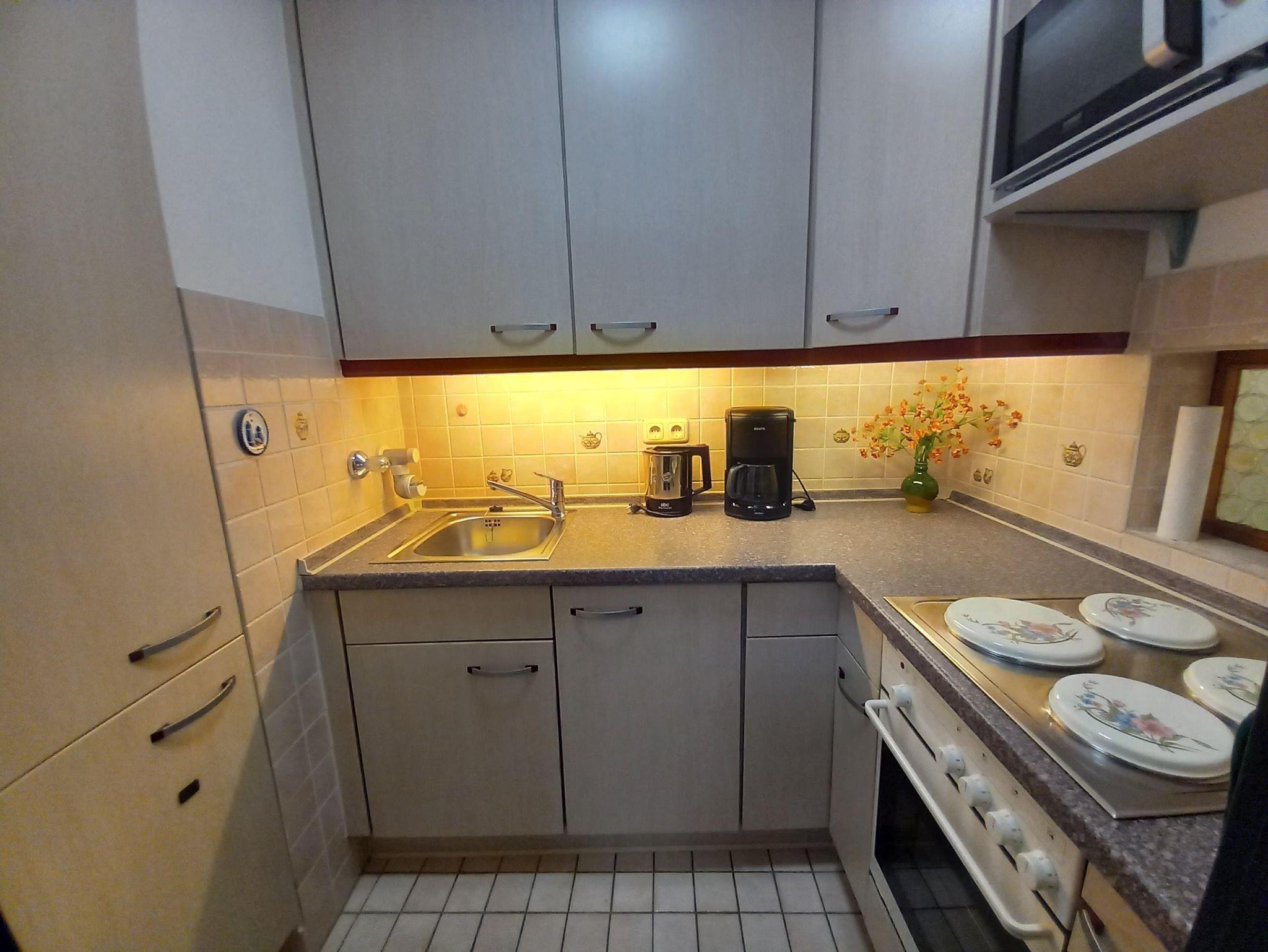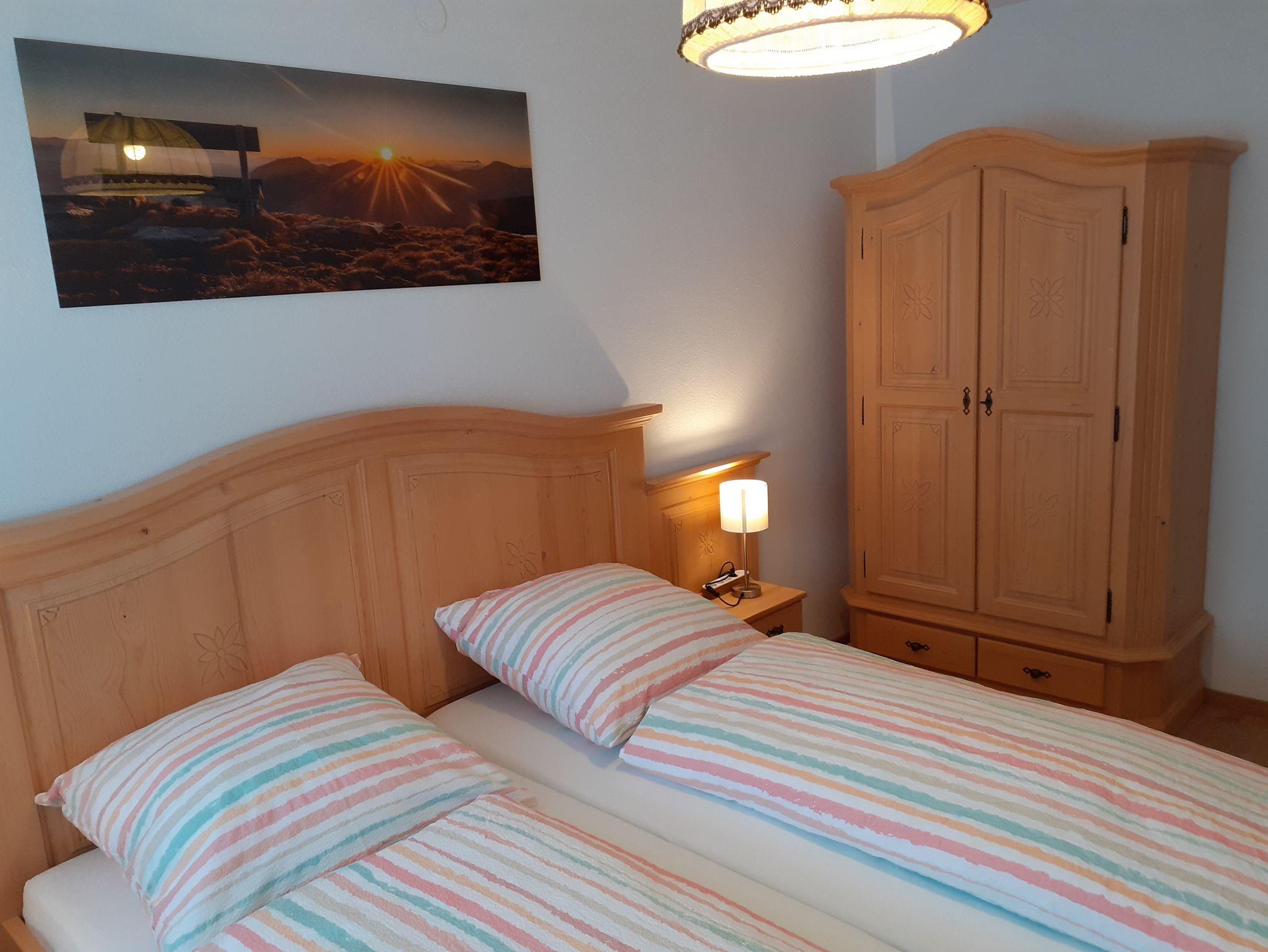 Die 3-Raum-Wohnung verfügt über ein Wohnzimmer, zwei Schlafzimmer, eine Einbauküche mit Backofen sowie ein Bad. Vom voll möblierten Südbalkon haben Sie einen herrlichen Blick auf die Berge und können hier Ihr Frühstück oder Abendessen genießen bzw. den Tag ausklingen lassen. Vor dem Haus stehen kostenlose Parkplätze zur Verfügung.
