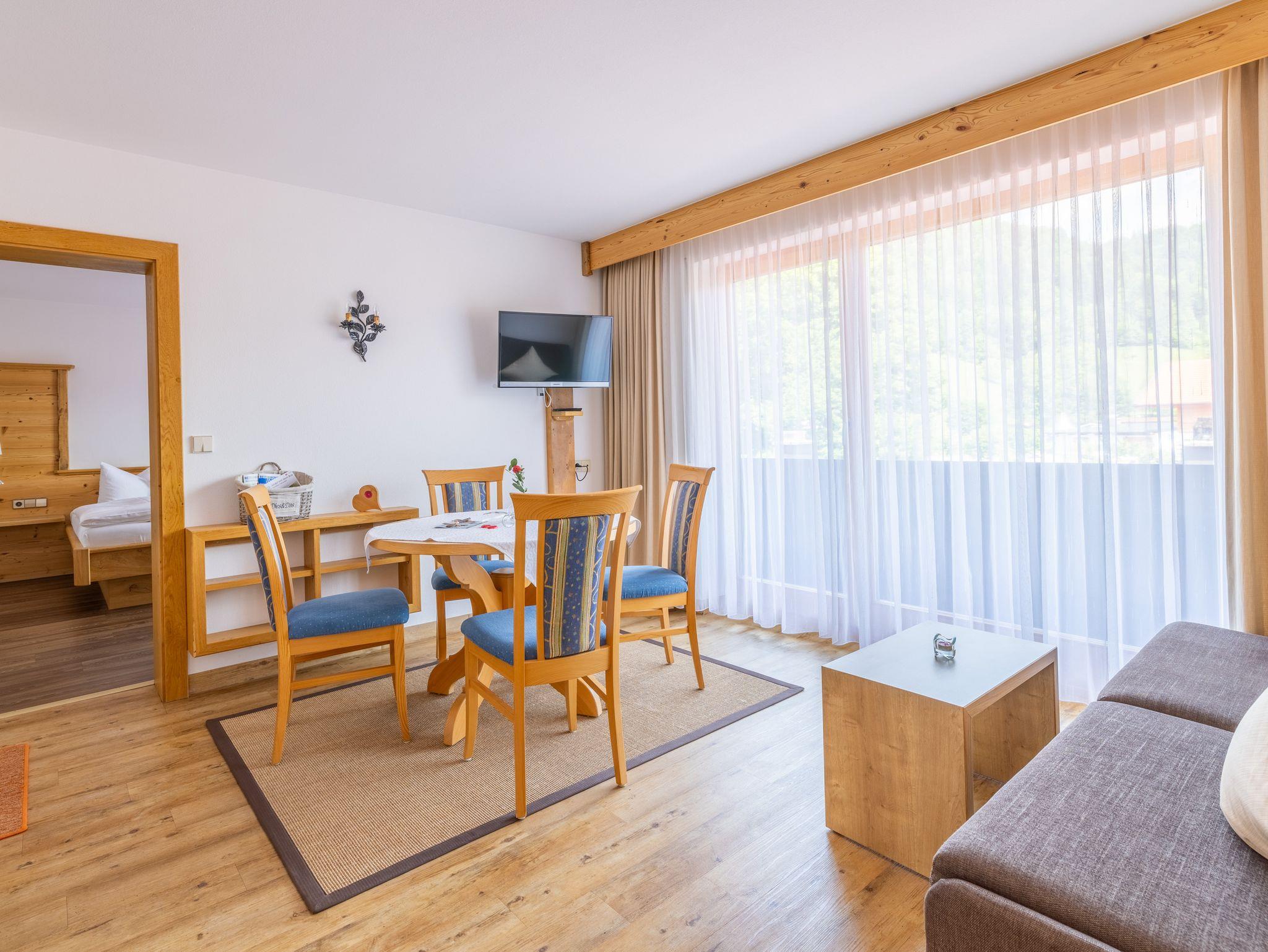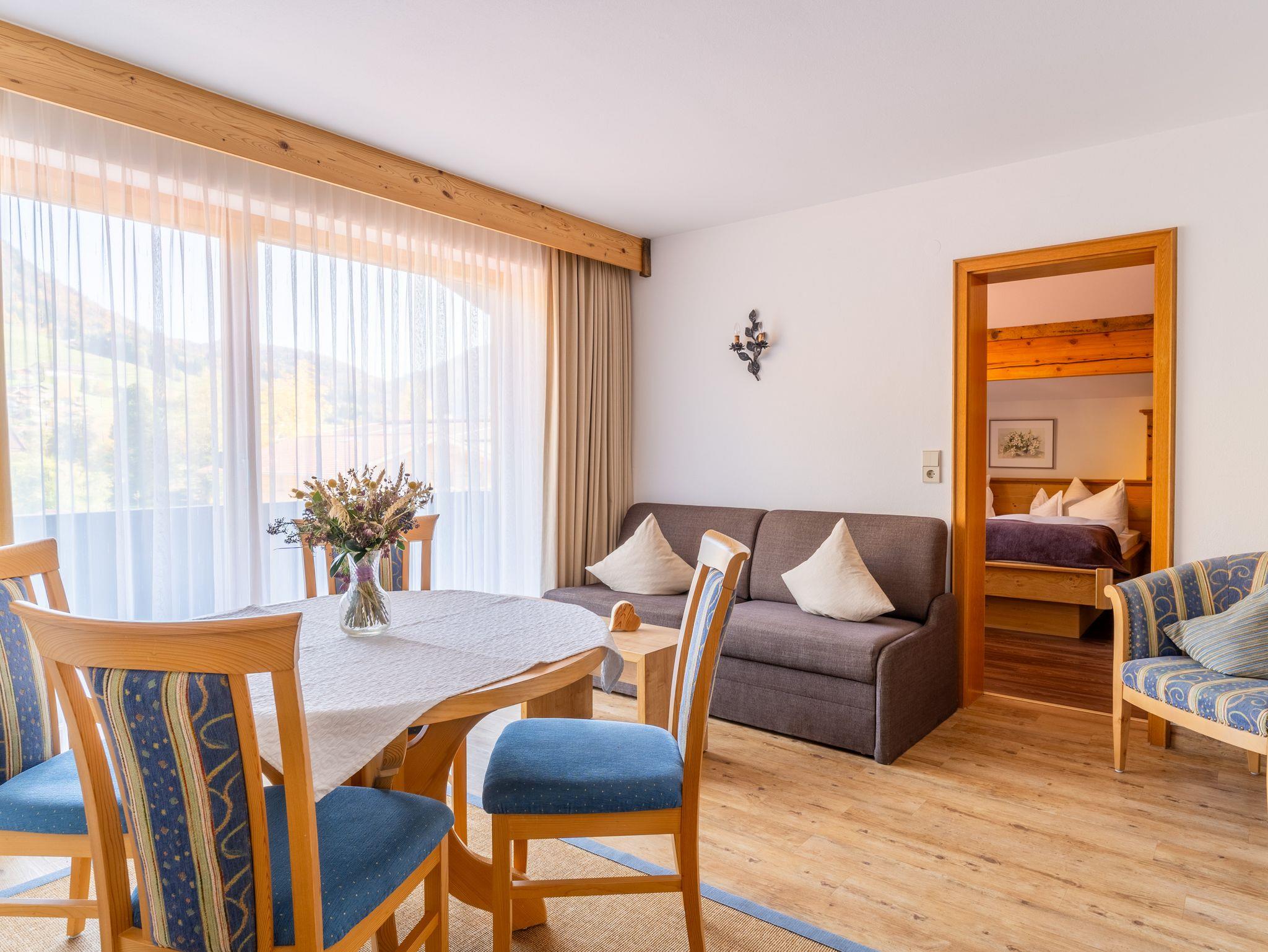 Wir verfügen über sonnige, große, mit viel Liebe zum Detail und Komfort komplett neu renovierte Ferienwohnungen mit Bergblick, die Sie einladen, sich zu entspannen und ein paar erholsame Tage in dieser herrlichen Gegend zu verbringen. Unsere Zweiraumwohnungen verfügen über Schlafzimmer mit Dusche/WC, die Dreiraumwohnungen über zwei separate Schlafzimmer mit Dusche/WC, nahezu alle zusätzlich mit Flat-TV im den Schlafzimmern. Alle neu renovierten Wohnungen haben moderne Einbauküchen mit Geschirrspüler, Backofen und 4-Platten-Cerankochfeld, gemütliche und sonnige Wohn-/Esszimmer, Flat-TV, große Balkone und vieles mehr.