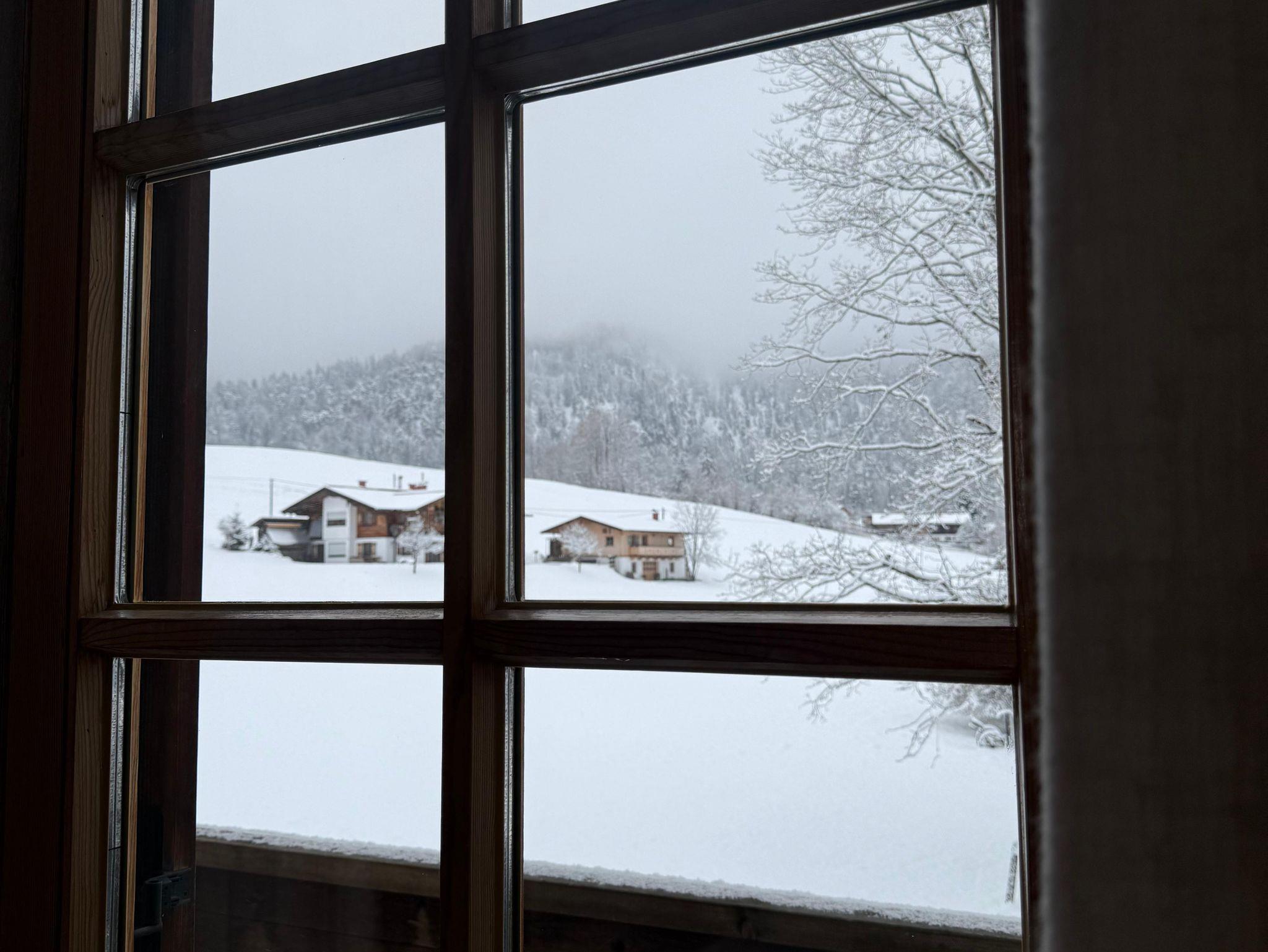 Herrlicher Blick auf die umliegenden verschneiten Berge. Langlaufloipen und gewalzte Winterwanderwege in der Nähe. Täglich kostenloser Bus zur Ortsmitte und in die verschiedenen Ortsteile mit Anschluss zur Winklmoos-Alm.