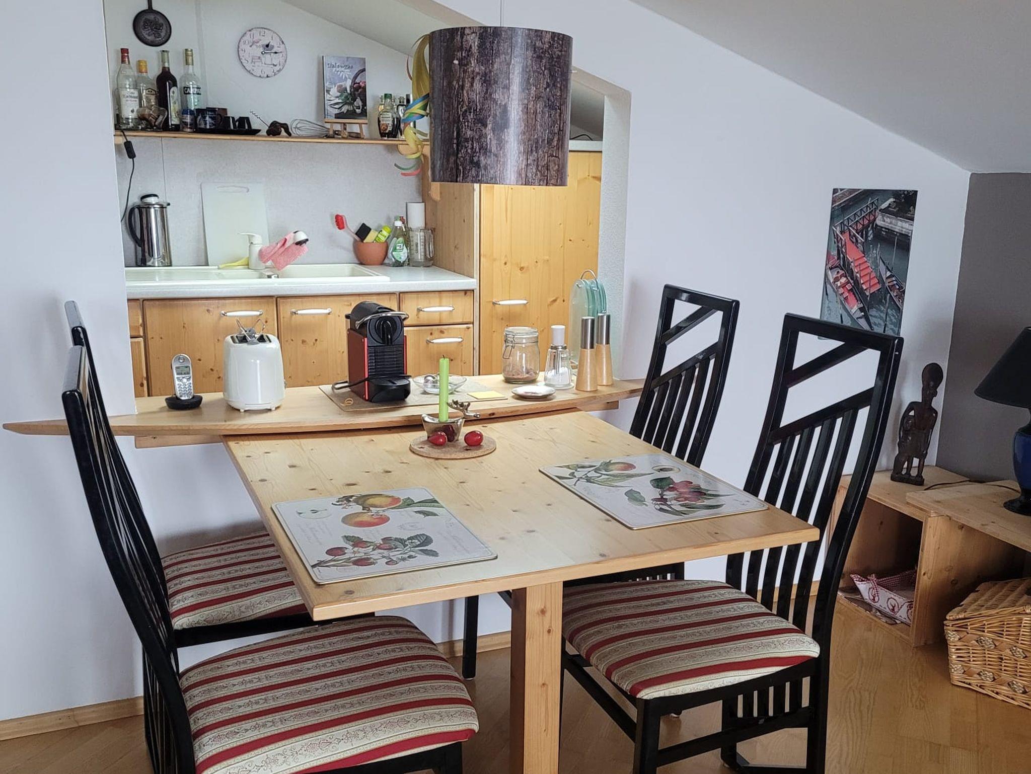 Großzügige, helle Zwei-Zimmer Dachgeschosswohnung mit Südbalkon in einem ruhigen Mehrparteienhaus mit Wasch, bzw. Skiraum. Parkplatz und W-Lan kostenlos, Bettwäsche und Handtücher inklusive. Entfernung zur Langlaufloipe 400 m, zum Ortskern ca.1- 2 Km, Bushaltestelle in unmittelbarer Nähe. Check in nach Absprache jederzeit möglich.