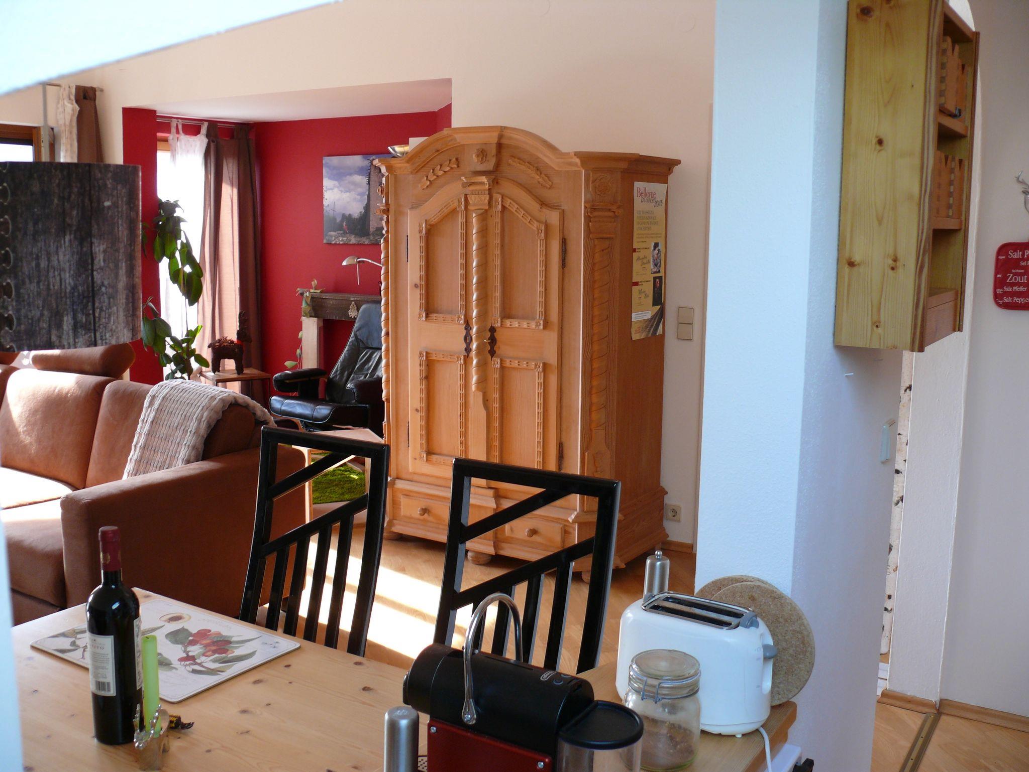 Unsere Ferienwohnung Weitblick ist eine lichtdurchflutete, großzügige Dachgeschosswohnung (Aufzug nicht vorhanden) in einem Mehrparteienhaus (Gemeinschaftstrockenraum mit Waschmaschine im Keller). Großer sonniger Südbalkon mit Blick auf das Kaisergebirge. 1 separates Schlafzimmer (Zirbenholz) mit 160m breitem Doppelbett, großes, ausziehbares Schlafsofa im Wohnzimmer, Fensterbad mit Wanne und Dusche/WC, Küche mit Backofen, Mikrowelle und Kühlgefrierschrank. Langlaufloipe im Winter ca. 400 m entfernt, zum Ortskern sind es ca. 1- 2 km, Bushaltestelle zum Seegatterl/Winklmoosalm (Talstation der Bergbahn) oder nach Prien in unmittelbarer Nähe. Kostenloses Parken direkt vor der Haustür, Gaststätten in 1 bis 2 km Entfernung. Anreise nach Absprache jederzeit möglich.