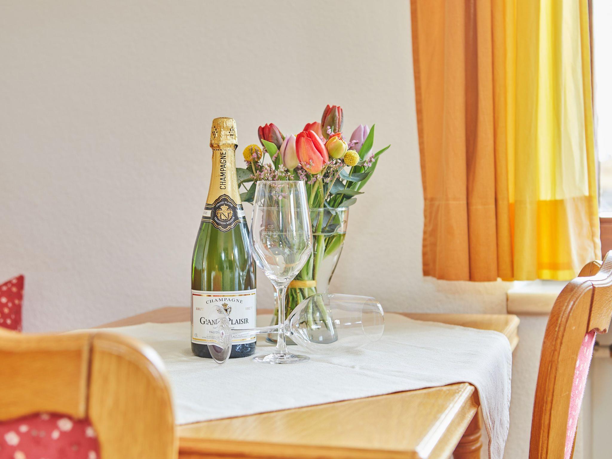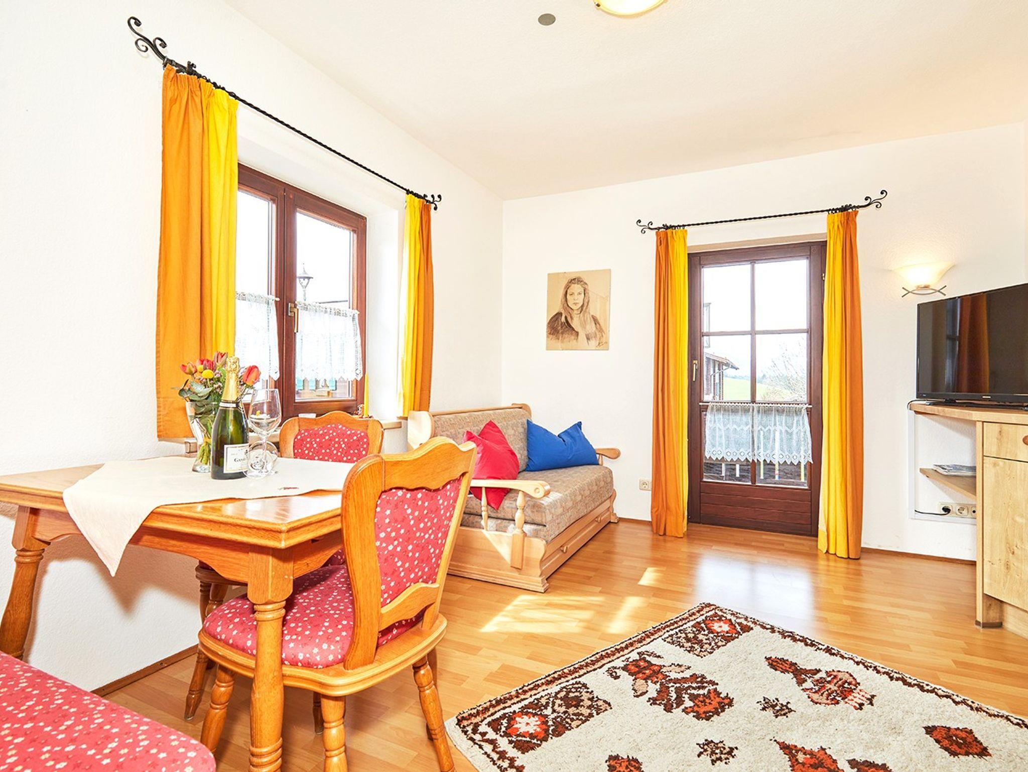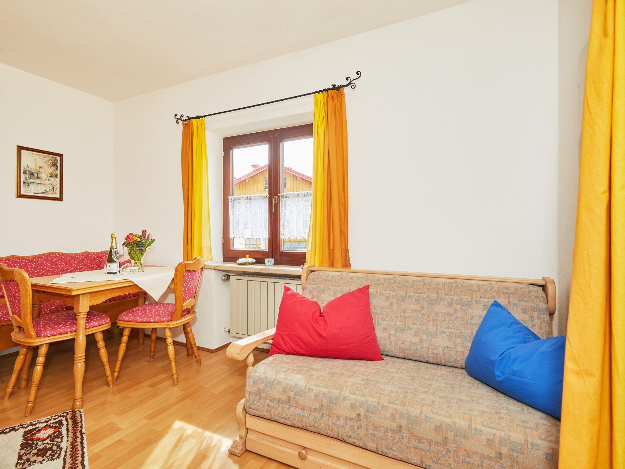 Ferienwohnung 'Lichtblick' – Ihr Zuhause in Rei im Winkl. Willkommen in der hellen und einladenden Ferienwohnung Lichtblick, die sich im ersten Obergeschoss befindet und ideal für Ihren nächsten Urlaub ist! Diese charmante Wohnung bietet ein gemütliches Wohnzimmer und ein komfortables Schlafzimmer mit einem Doppelbett, perfekt für Paare oder kleine Familien. Genießen Sie den großen Balkon, der sowohl vom Wohnzimmer als auch vom Schlafzimmer zugänglich ist. Hier können Sie den wunderschönen Blick auf das Kaisergebirge genießen und entspannte Stunden im Freien verbringen. Die Lage ist unschlagbar: Mitten im Ortszentrum von Reit im Winkl, aber dennoch in einer ruhigen Seitenstraße. Entdecken Sie den malerischen Ortskern mit zahlreichen Einkaufsmöglichkeiten, gemütlichen Restaurants, Cafés, Bars und einem Supermarkt. Auch eine Apotheke, Ärzte und die Skibushaltestelle sind in unmittelbarer Nähe. Die Tourist-Information ist ebenfalls fußläufig erreichbar. Die Wohnung ist mit einem großen Bad ausgestattet, das sowohl eine Badewanne als auch eine Dusche bietet. In der praktischen Kochnische finden Sie einen Kühlschrank, einen 2-Plattenherd und einen Geschirrspüler, kaffeemaschine, Wasserkocher, etc. Das Wohnzimmer lädt mit einer bequemen Couch und einem Esstisch zum Verweilen ein. Die WOhnung sit allergikerfreundlich, Haustiere sind hier nicht erwünscht.