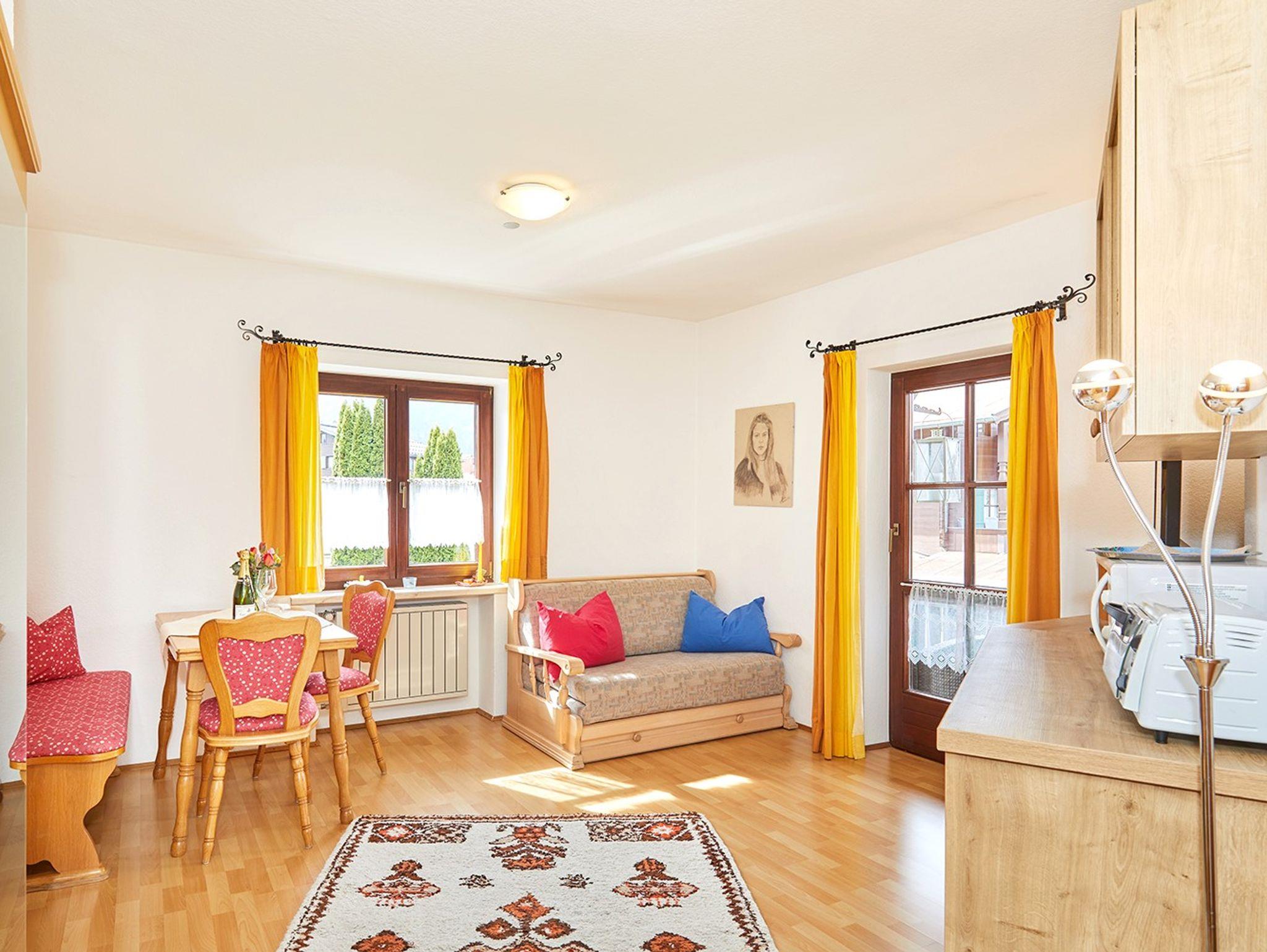 Ferienwohnung Lichtblick – Ihr Zuhause in Rei im Winkl. Willkommen in der hellen und einladenden Ferienwohnung Lichtblick, die sich im ersten Obergeschoss befindet und ideal für Ihren nächsten Urlaub ist! Diese charmante Wohnung bietet ein gemütliches Wohnzimmer und ein komfortables Schlafzimmer mit einem Doppelbett, perfekt für Paare oder kleine Familien. Genießen Sie den großen Balkon, der sowohl vom Wohnzimmer als auch vom Schlafzimmer zugänglich ist. Hier können Sie den wunderschönen Blick auf das Kaisergebirge genießen und entspannte Stunden im Freien verbringen. Die Lage ist unschlagbar: Mitten im Ortszentrum von Reit im Winkl, aber dennoch in einer ruhigen Seitenstraße. Entdecken Sie den malerischen Ortskern mit zahlreichen Einkaufsmöglichkeiten, gemütlichen Restaurants, Cafés, Bars und einem Supermarkt. Auch eine Apotheke, Ärzte und die Skibushaltestelle sind in unmittelbarer Nähe. Die Tourist-Information ist ebenfalls fußläufig erreichbar. Die Wohnung ist mit einem großen Bad ausgestattet, das sowohl eine Badewanne als auch eine Dusche bietet. In der praktischen Kochnische finden Sie einen Kühlschrank, einen 2-Plattenherd und einen Geschirrspüler, kaffeemaschine, Wasserkocher, etc. Das Wohnzimmer lädt mit einer bequemen Couch und einem Esstisch zum Verweilen ein. Die WOhnung sit allergikerfreundlich, Haustiere sind hier nicht erwünscht.