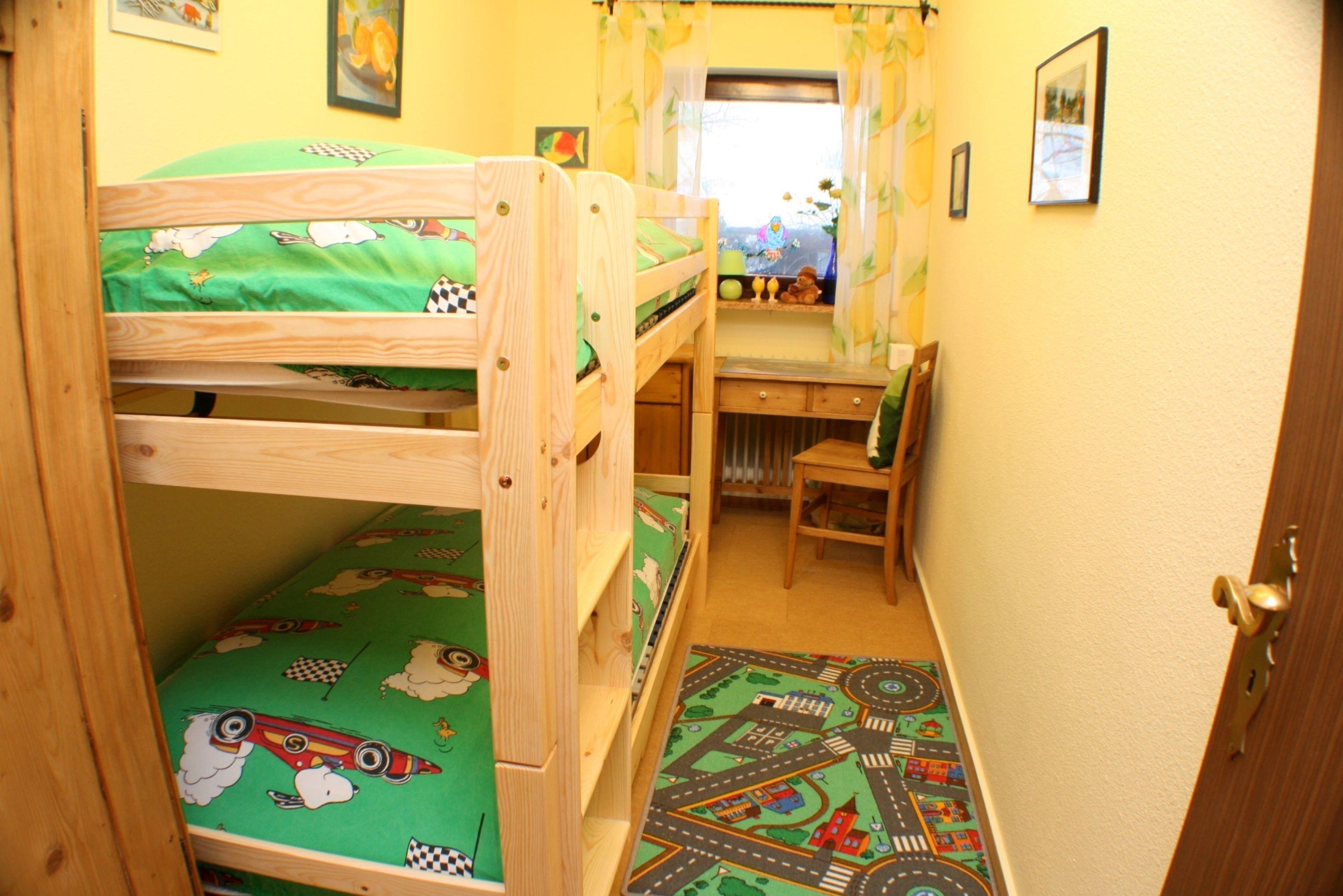 In unserer liebevoll ausgestatteten 3-R-Ferienwohnung (für 4 Personen) können Sie vom Alltag abschalten. Sie verfügt über ein Wohn-/Esszimmer mit Süd-Balkon, ein Schlafzimmer mit Doppelbett für 2 Erwachsene und ein Kinderzimmer mit Etagenbett für max 1 Erwachsenen und 1 Kind oder 2 Kinder, sowie Küche und Bad.