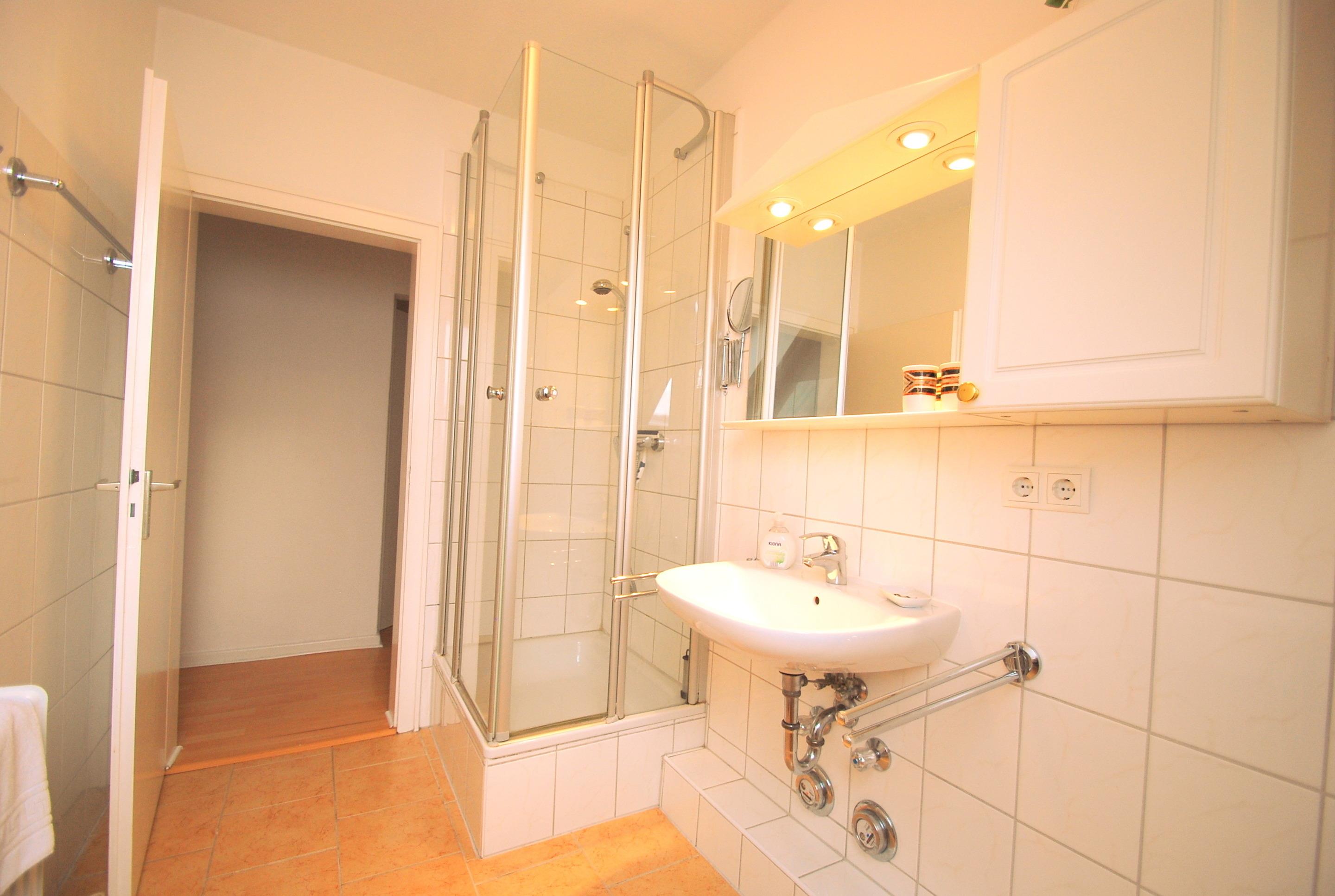 Die Wohnung "Sonnenschein oben" ist eine gemütliche ca. 80 m² große Ferienwohnung im 1. Obergeschoss, die Platz für 2 bis 4 Personen bietet. Sie verfügt über einen großen Wohnraum mit Essecke und Wohnbereich inklusive TV. Schlafraum Nr. 1 ist mit einem Doppelbett ausgestattet, Schlafraum Nr. 2 bietet getrennte Betten. Weiterhin gehören eine Küche, ein Flur, ein Duschbad sowie eine Loggia/Balkon in sonniger Süd/Westlage zur Ausstattung. Im Garten finden Sie außerdem einen Freisitz und die Möglichkeit zum Grillen.