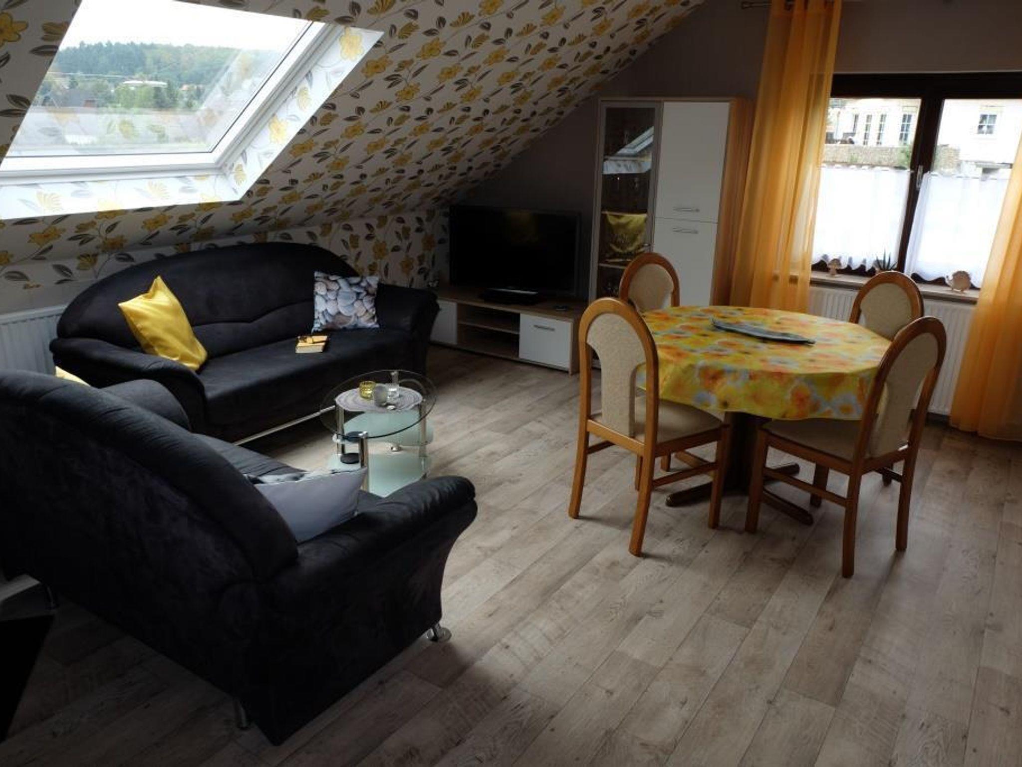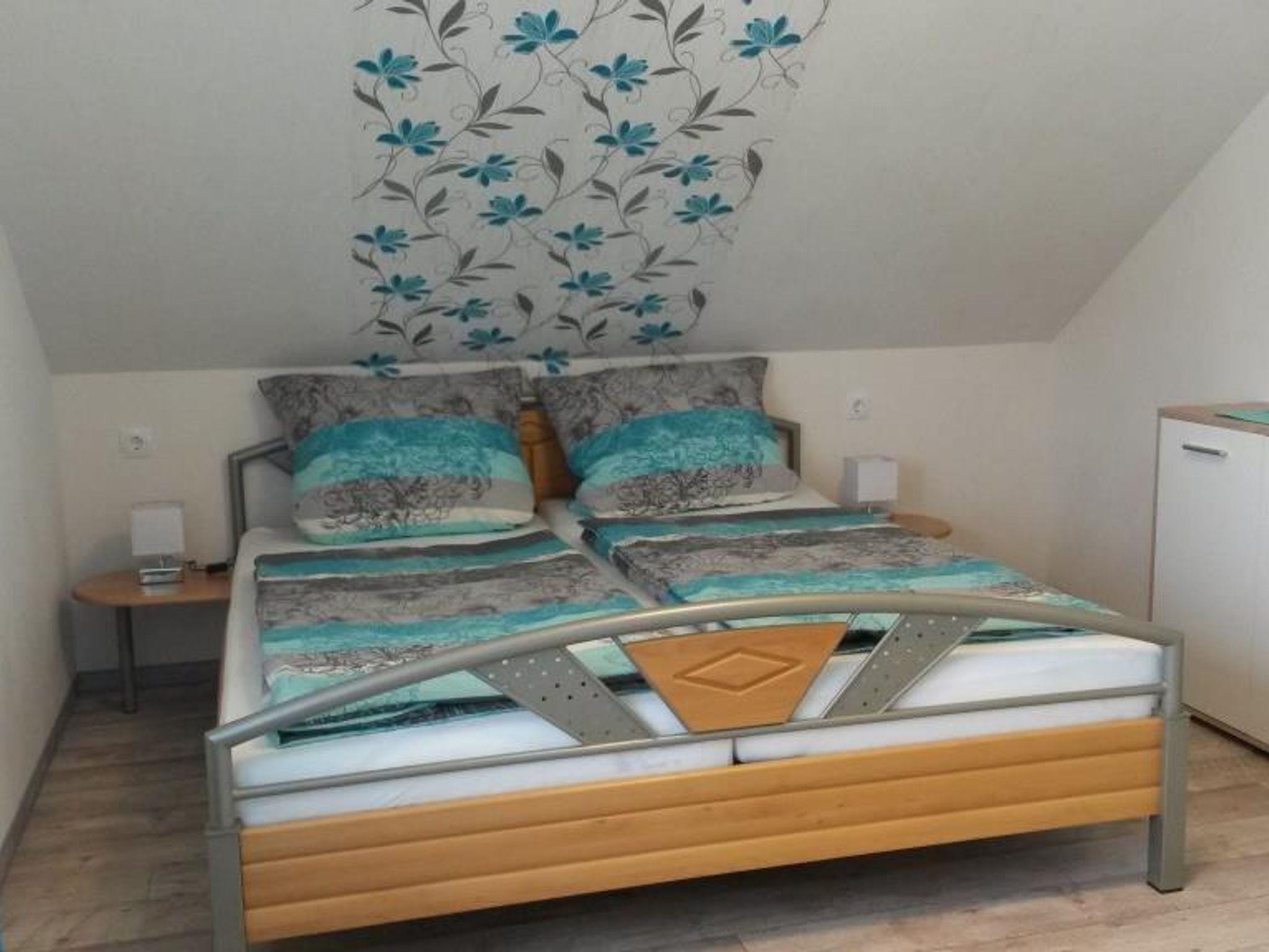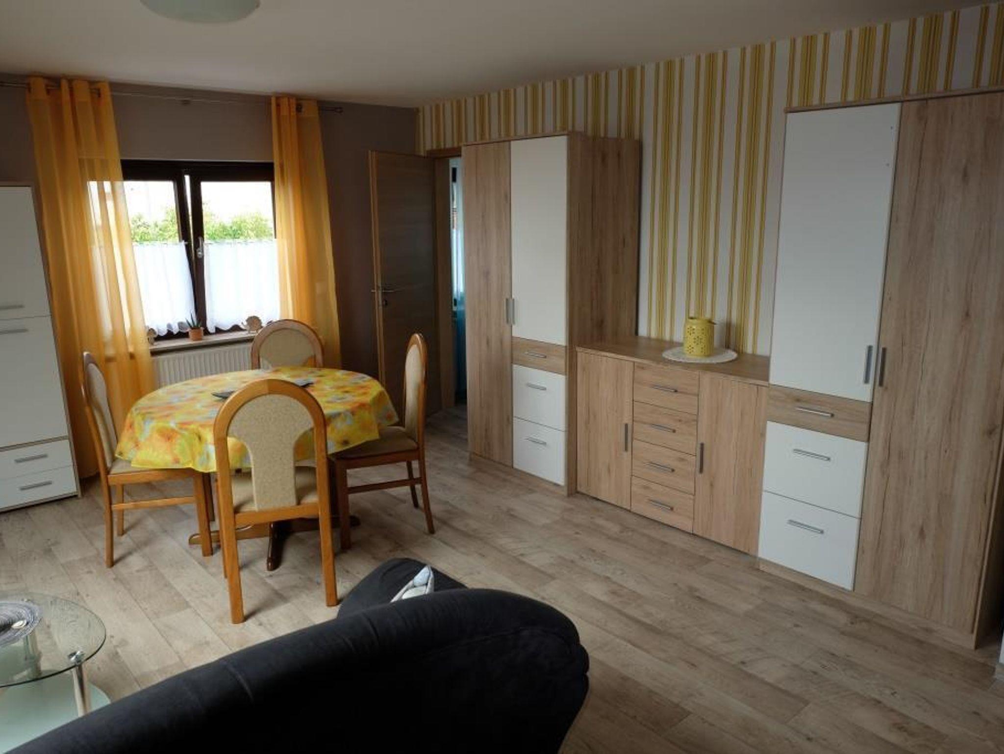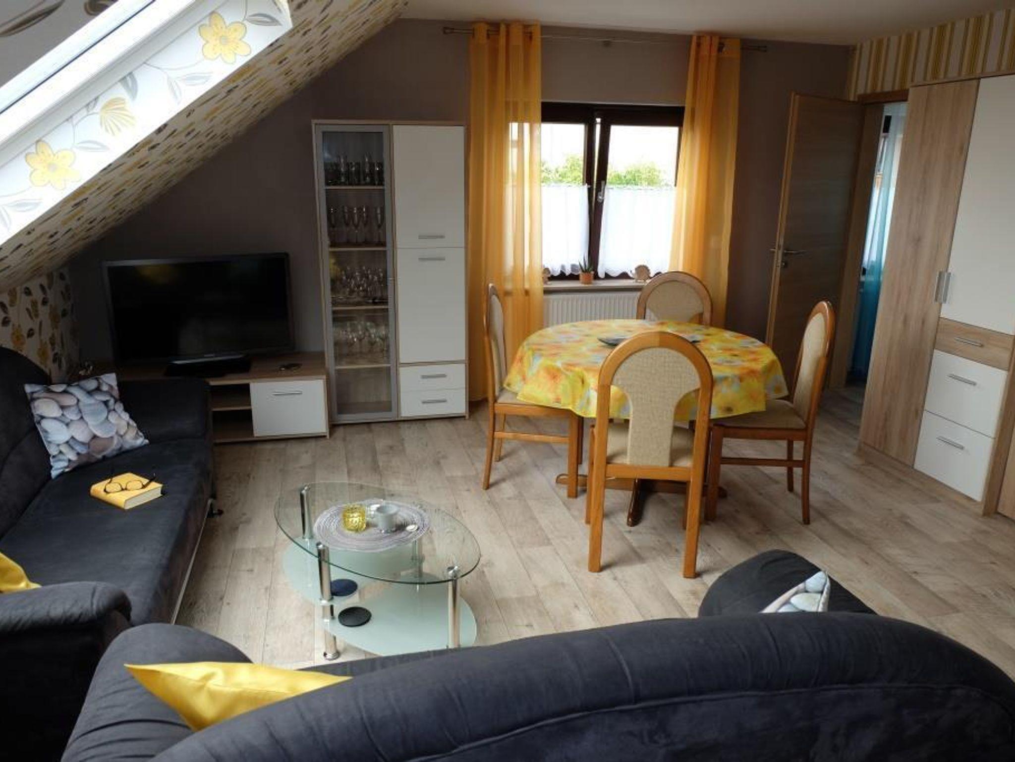 Gemütliche Nichtraucher-Ferienwohnung für 1 bis 3 erwachsene Personen im ersten Obergeschoss unseres Hauses. Die 2016 komplett renovierte Wohnung hat ein Schlafzimmer mit Doppelbett, ein helles Duschbad, ein großes Wohn-Ess-Zimmer mit einladender Couchgarnitur, Esstisch mit 4 Stühlen und einem separaten Schlafsofa (1,25 m breit) sowie eine vollausgestattete Küche mit Geschirrspüler. Ein großer Garten mit vielen Sitzgelegenheiten, Grill und Fischteich bietet Möglichkeiten zum Entspannen und Abschalten. Kostenloses WLAN ist vorhanden.