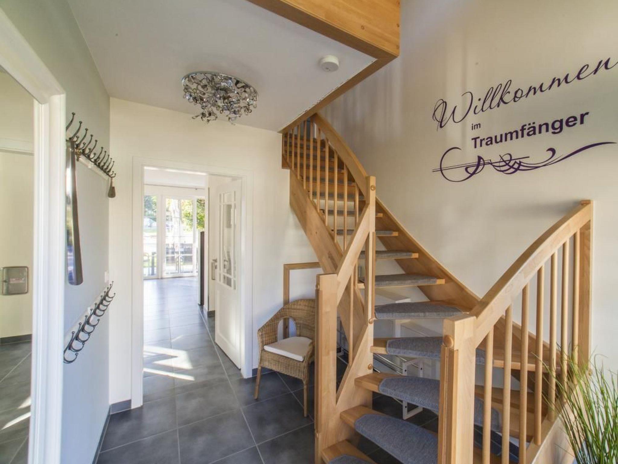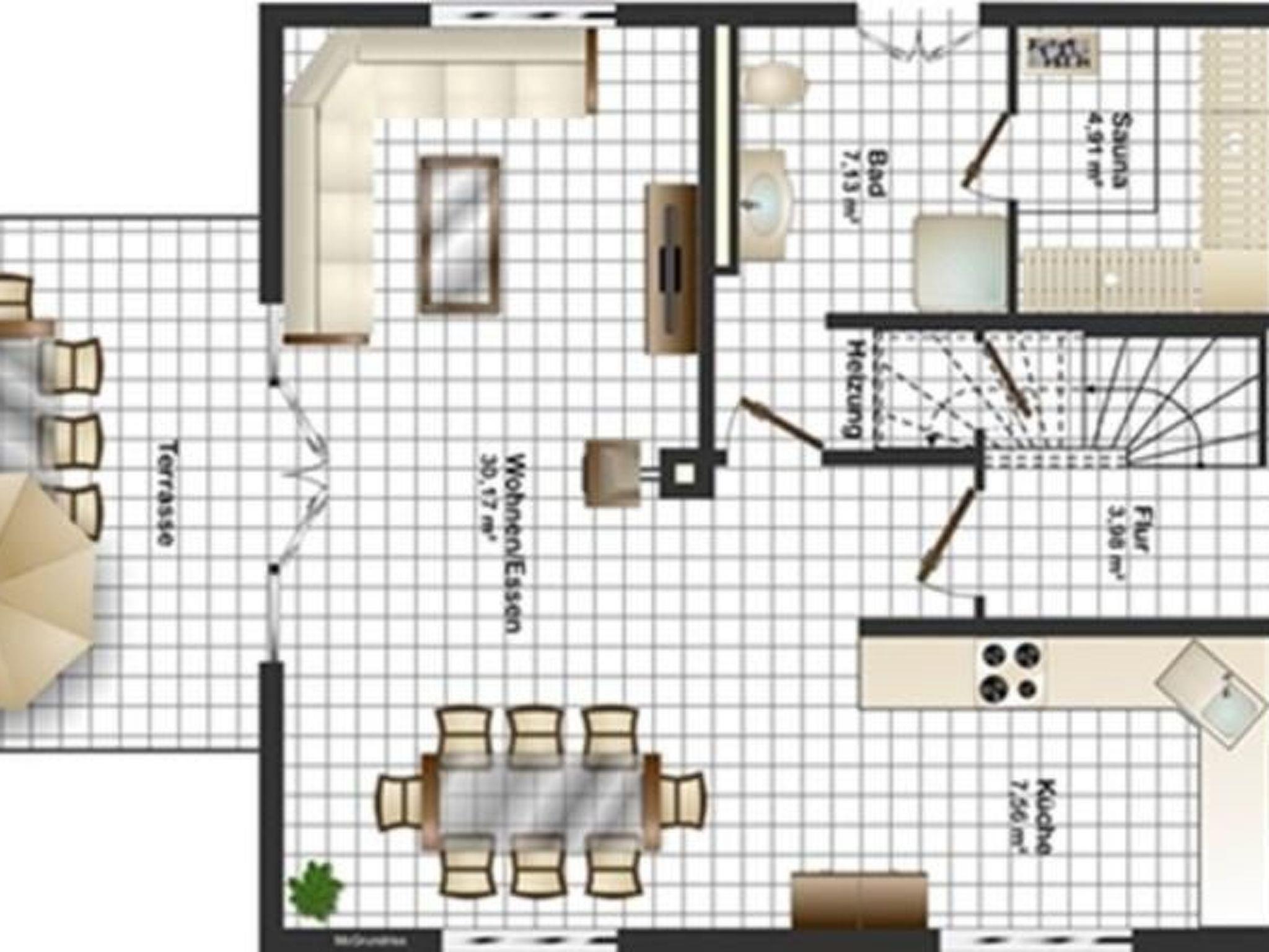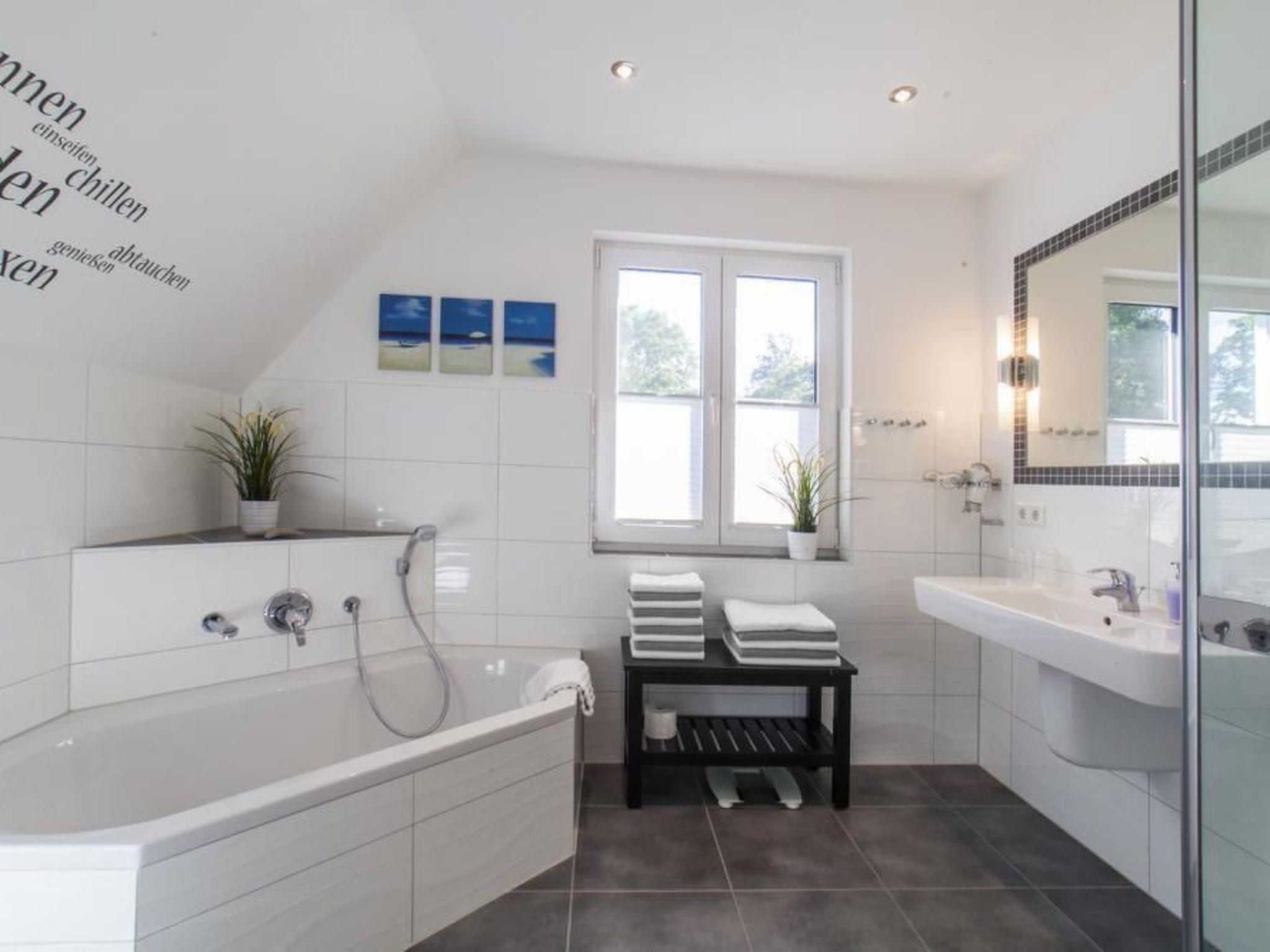You enter the house via a double wing door, which you can open to the outside with your individual code. On the ground floor there is a large living/dining room with a cosy leather seating area, wood-burning stove and a large dining table for eight people as well as a high-quality and fully equipped fitted kitchen. There is also a large shower room with sauna. If you are not out and about, you can enjoy satellite TV or a good film on DVD from the living area. For those who prefer music, there is a stereo system with radio/CD, iPod and USB connection. Or you can relax in front of the wood-burning stove and listen to the crackling of the fire. A modern, fully equipped and spacious eat-in kitchen is available so that you can indulge in your culinary hobby while on holiday. It has a large fridge with freezer compartment, induction hob, extractor bonnet, raised oven, dishwasher, microwave, etc. There is also a washing machine at your disposal. A high chair is available for your small child. The modern bathroom consists of a sauna, floor-level shower with glass cubicle, toilet and washbasin. After your sauna session, you can step out into the fresh Baltic Sea air through double doors. A hairdryer is provided for your wet hair. A fly screen door protects you from unwelcome visitors.
