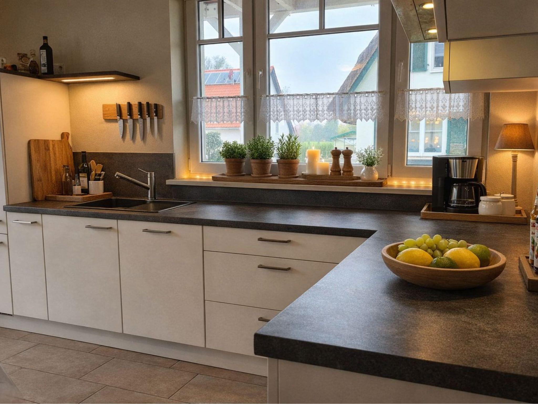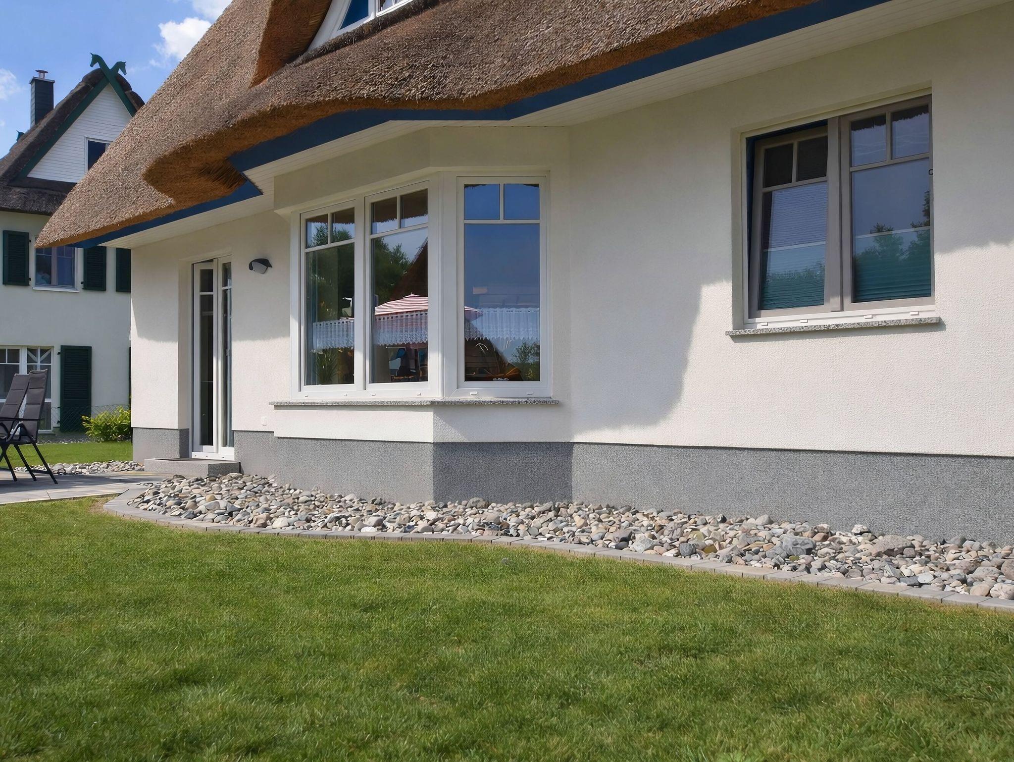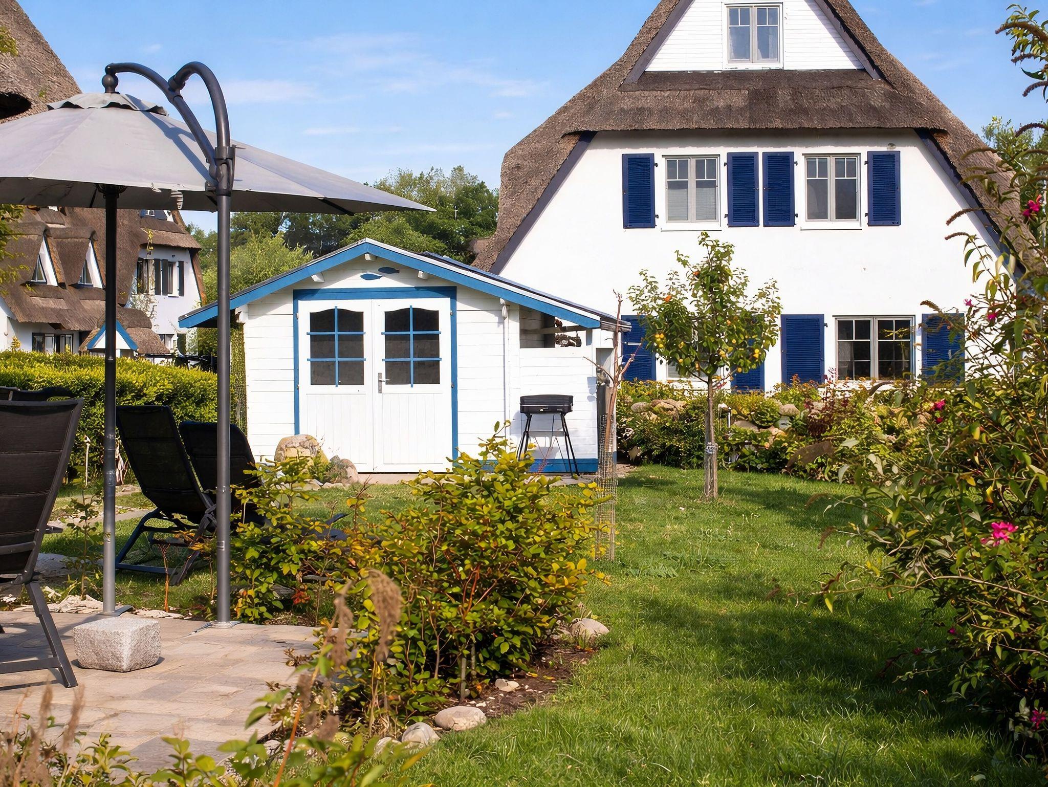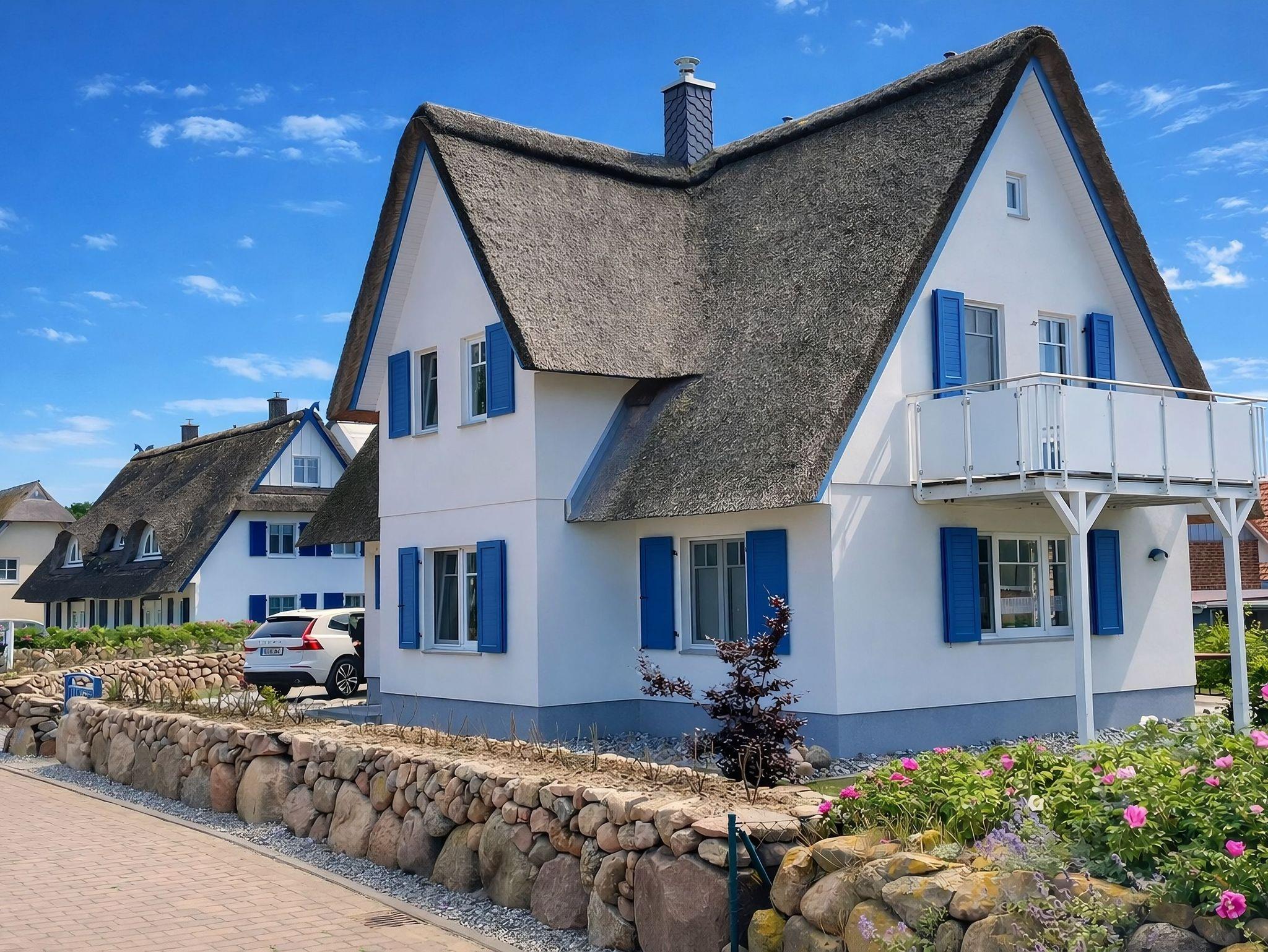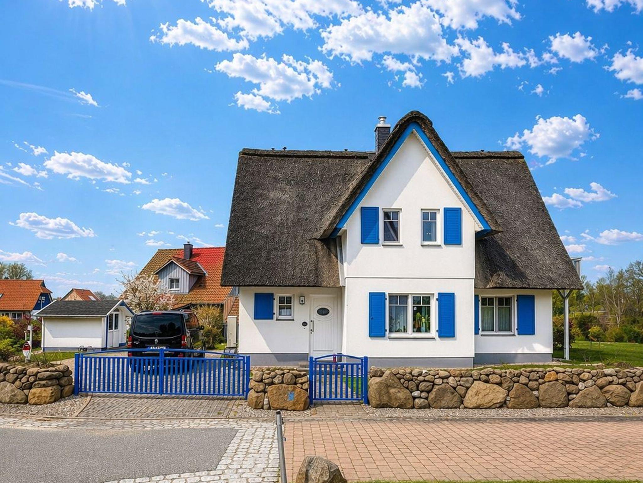 Komfort im Ostseeurlaub im Ferienhaus unterm Reetdach für 6 Personen plus 1 Kleinkind in Strandnähe im Ostseebad Rerik, am ruhigen Ortsrand Richtung Ostseebad Kühlungsborn. Sehr gut ausgestattetes Ferienhaus mit 3 Schlafzimmern, 2 Duschbädern, Sauna, Kamin und Waschmaschine. Eine E-Bike und E-Auto-Ladestation via Wallbox bietet den Gästen im Urlaub technischen Komfort. Der abschließbare Fahrradschuppen auf dem eingezäunten Gartengrundstück bietet Sicherheit für E-Fahrräder und E-Roller.