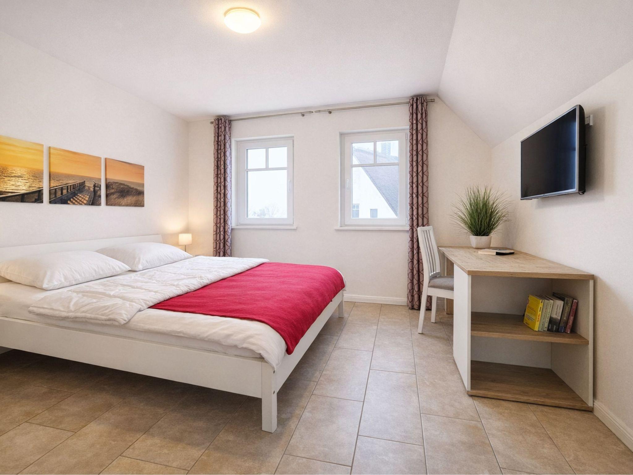 Schlafzimmer 1 mit Doppelbett (1,60 x 2m) und TV