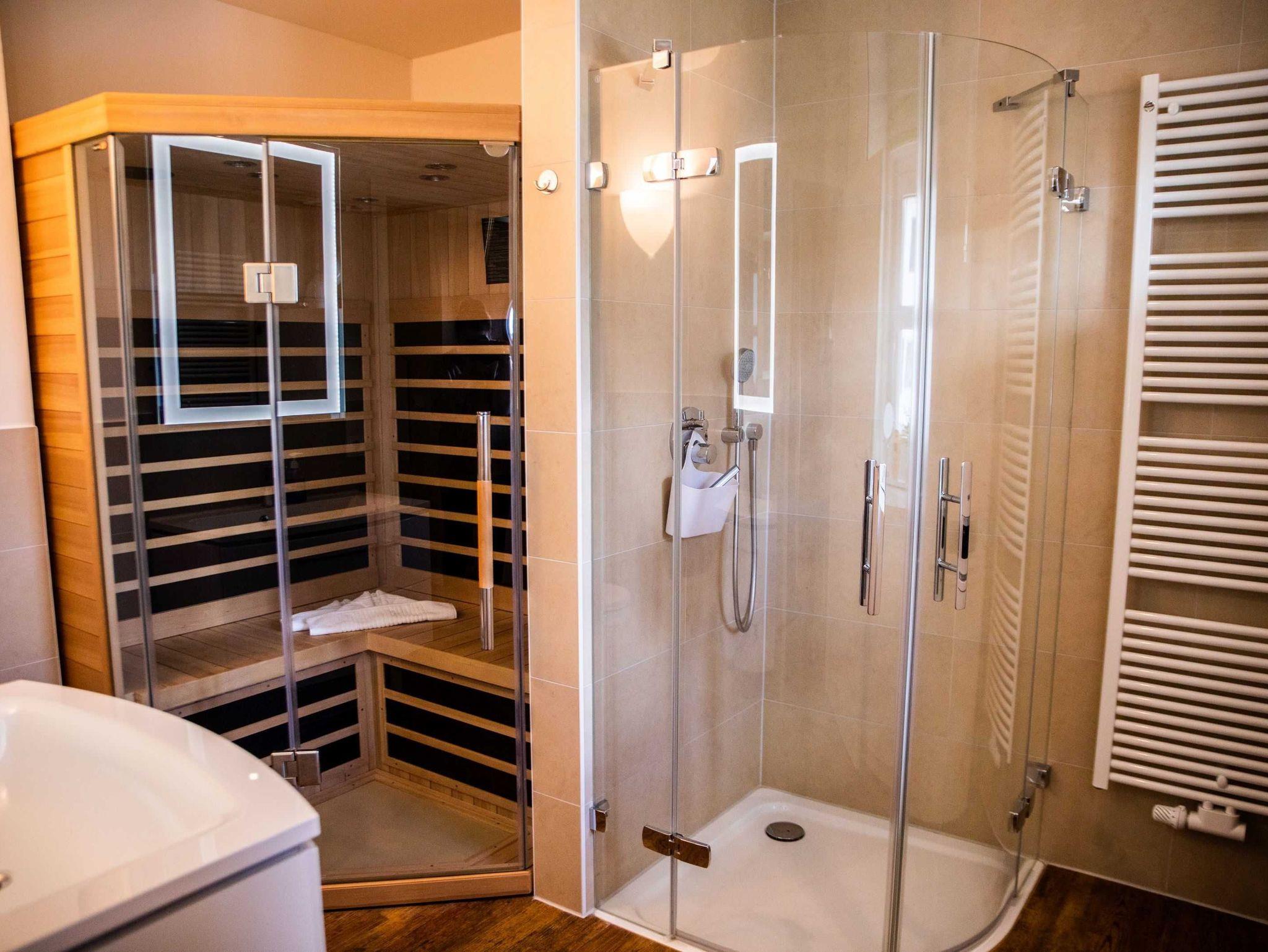 • Ebenerdiges Bad/WC mit bodenebener Dusche und Infrarot-Sauna