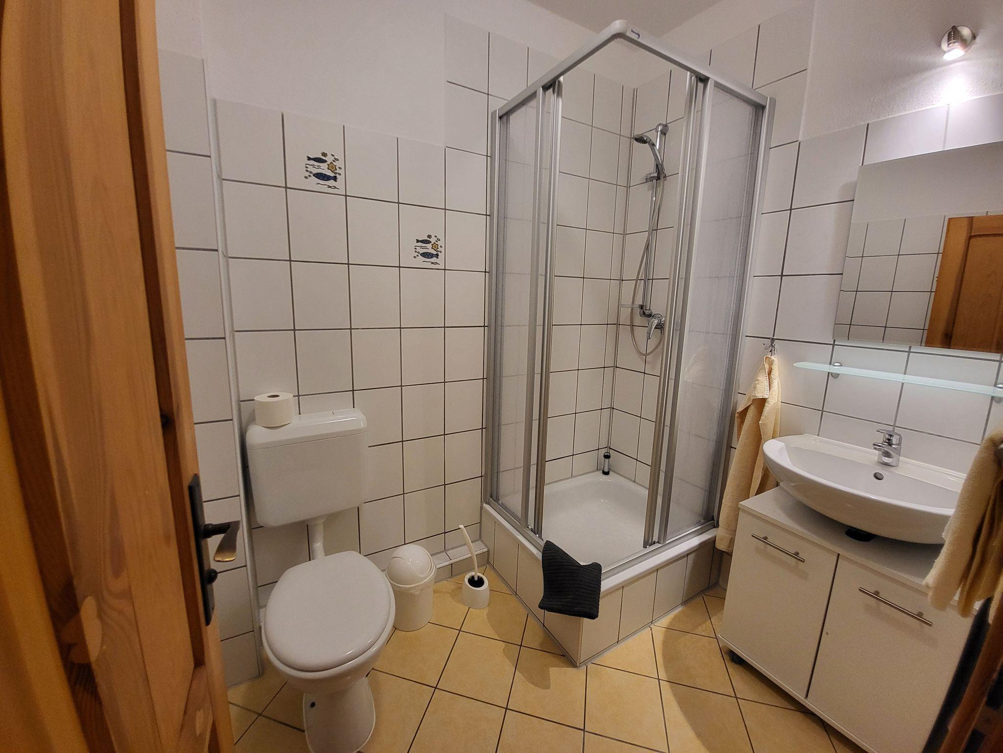 Das 2-Zimmer-Appartement ist landseitig mit separatem Schafzimmer, im Wohnzimmer mit Schlafboden, im Erdgeschoß und 46 qm groß. Dieses Apartment ist erst für Kinder ab 10 Jahren geeignet, da der Schlafboden im Wohnzimmer nur über eine Leiter erreichbar ist.