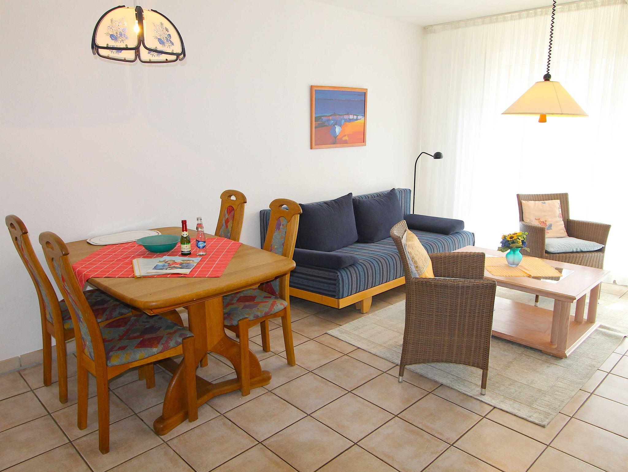 Die gemütlich und geschmackvoll eingerichtete Ferienwohnung verfügt über einen Wohnraum mit Schlafcouch, Sat- TV und Telefon.