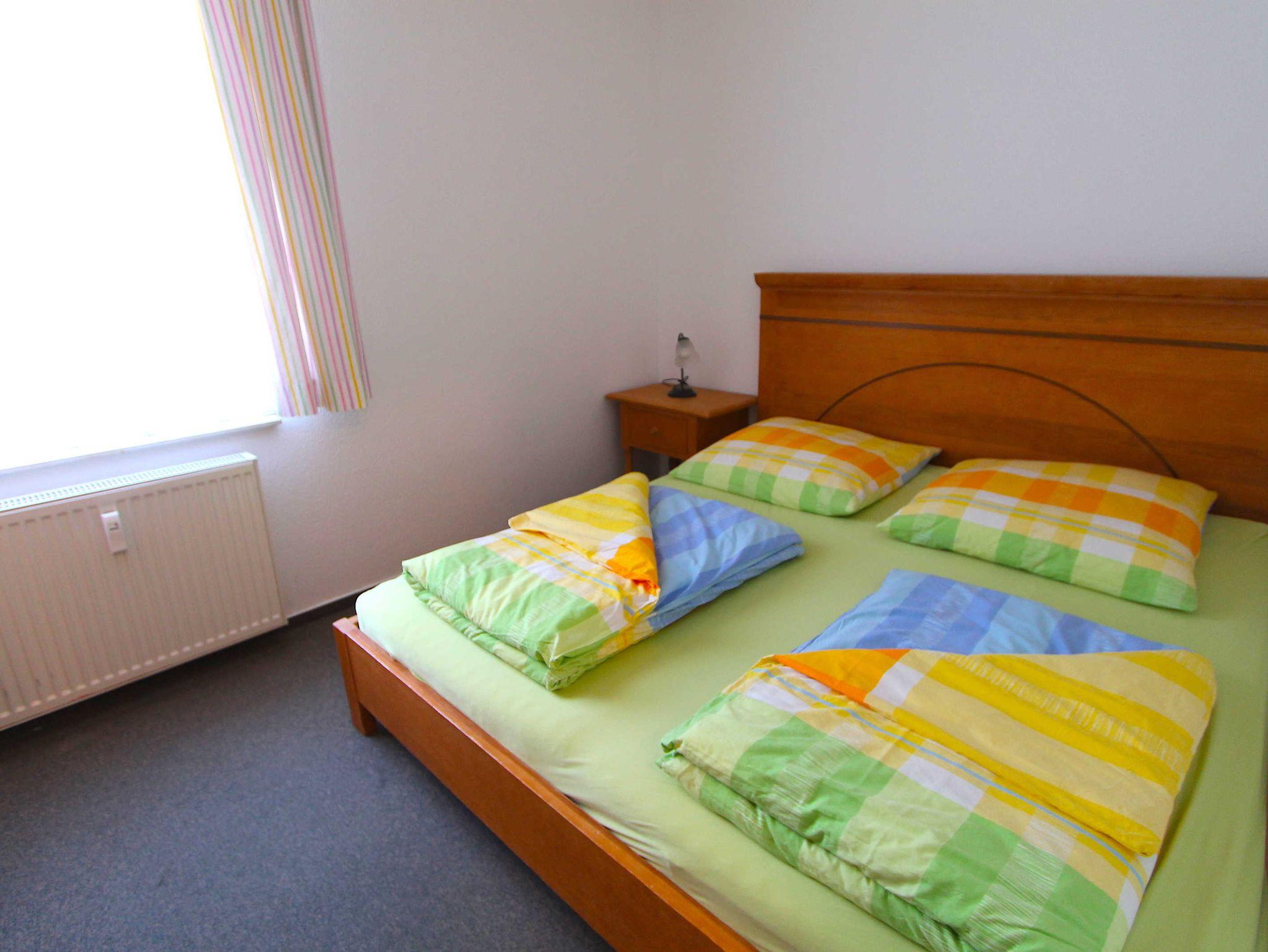 Das Schlafzimmer verfügt über ein Doppelbett.