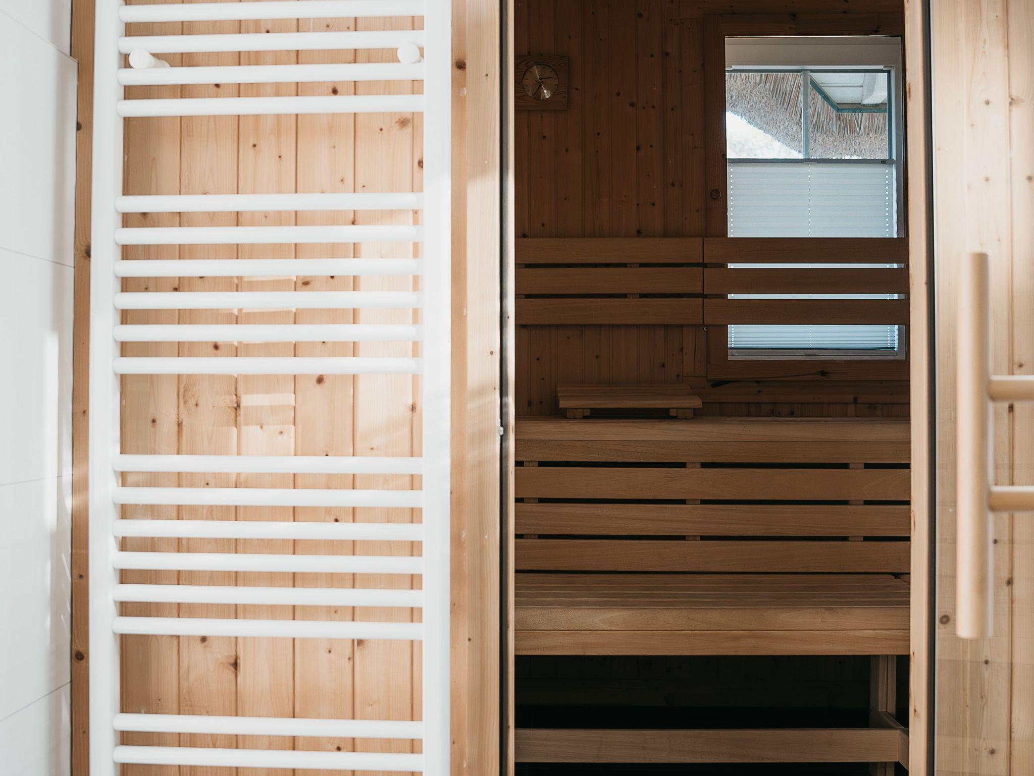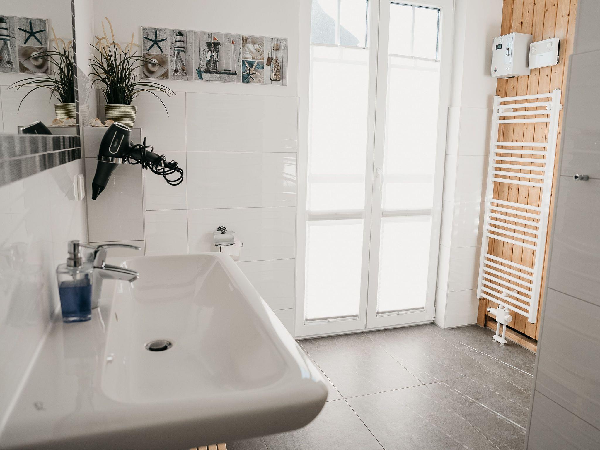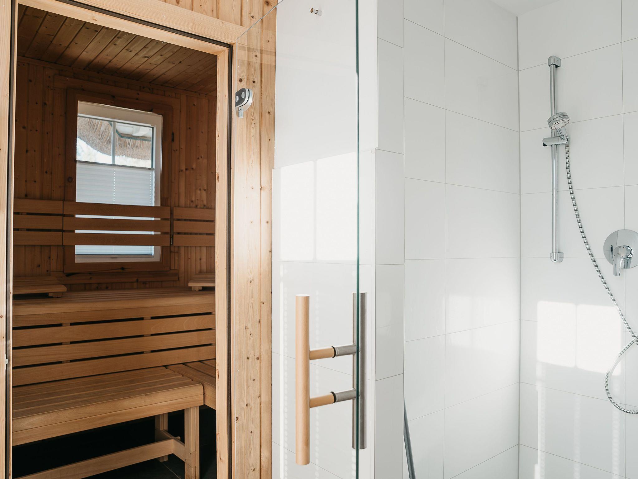 In dem Haus sind 2 Bäder, im Erdgeschoss befindet sich ein Saunabad mit einer bodengleicher freibegehbaren Dusche. Das exklusive Bad im 1. EG, mit Badewanne, bodengleicher Dusche lädt zum Relaxen ein.
