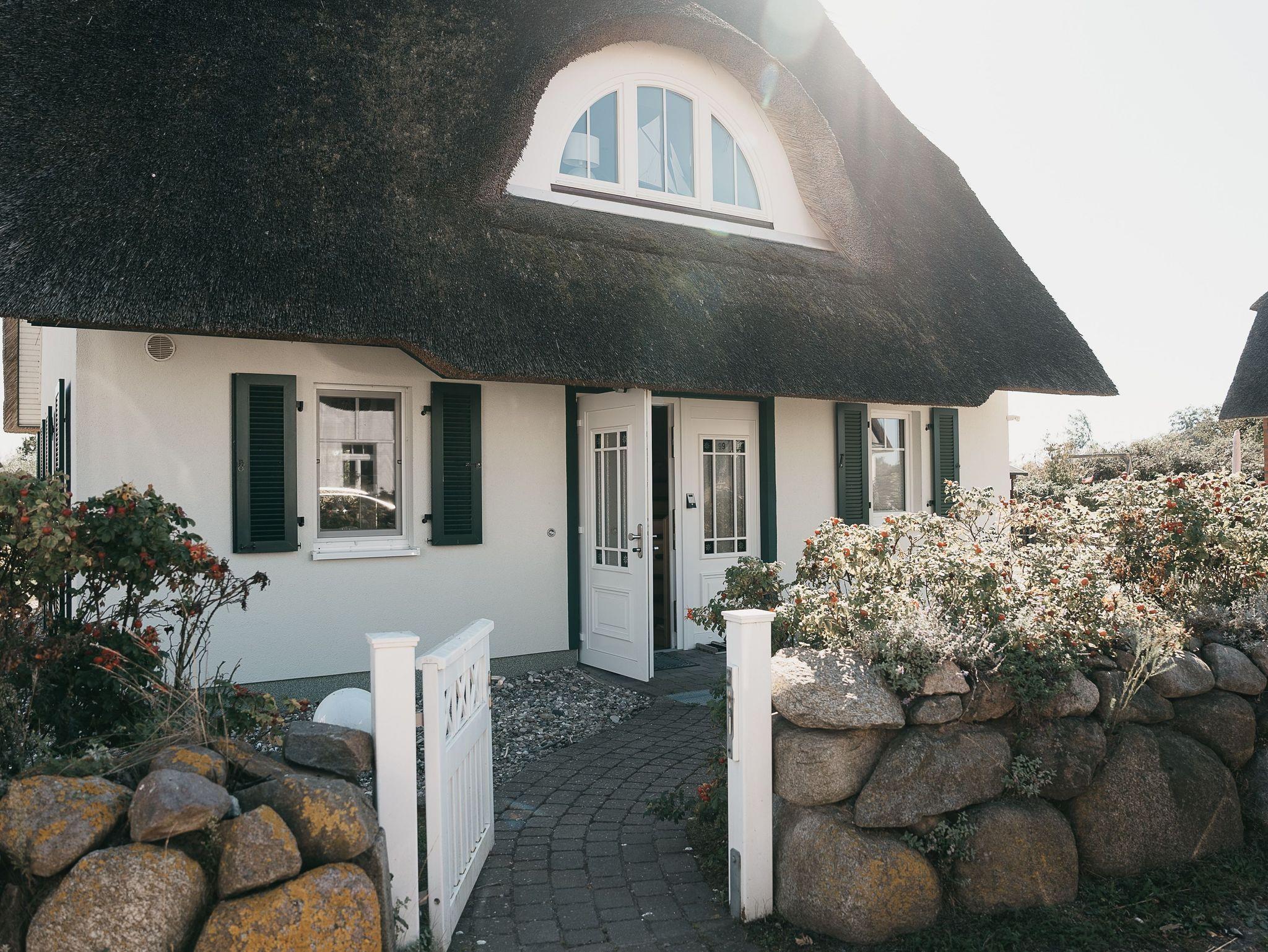 Die Außenanlagen sind durch eine Natursteinmauer / Zaun auf einer Höhe von ca. 80 cm eingezäunt. Zu Ihren Stellplätzen fahren Sie durch ein Doppelflügelgartentor, hier ist eine Stelfläche für bis zu vier Fahrzeuge. Alles was man so am Strand benötigt sowie Ihre Fahrräder können Sie im eigenen Fahrradschuppen verschließen. Vom Wohn- / Essenzimmer gelangen Sie auf die große Terrasse. Der große Gartentisch mit Platz für 10 Personen lädt zu einem geselligen Grillabend ein ( ein Elektrogrill steht im Fahrradschuppen zur Verfügung).