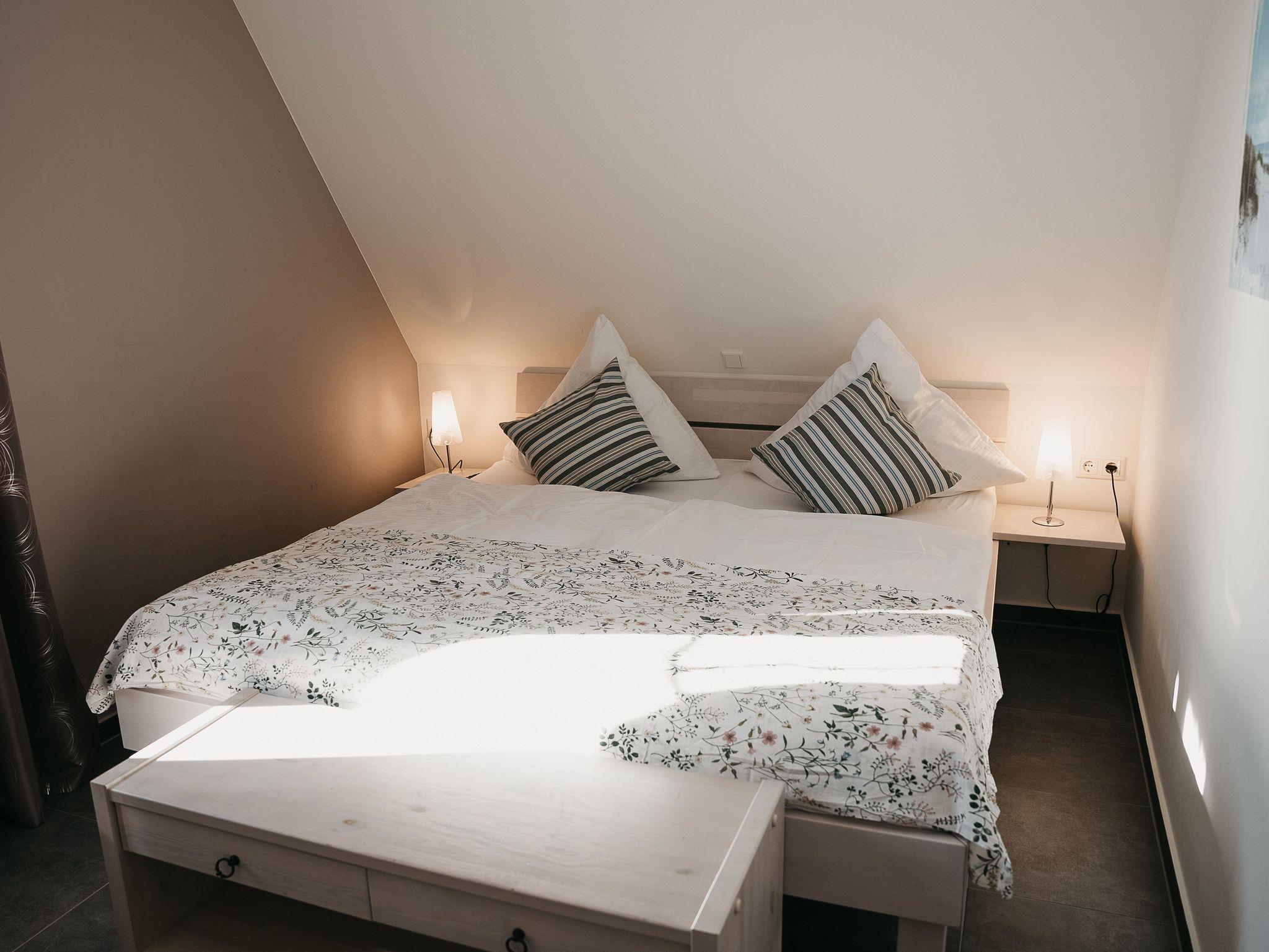 150 qm Wohnfläche bieten Platz für 10 Personen und ein Kleinkind. Das Ferienhaus hat 5 Schlafbereiche. Die Schlafzimmer 1, 2 und 3 haben je ein Doppelbett (180x200 cm). Im vierten Schlafzimmer befinden sich zwei Einzelbetten ( je 90x200 cm). Die Chillout Lounge mit einer Hochwertigen Schlafcouch kann zu einem zusätzlichen Schafbereich umfunktioniert werden. Die Couch besteht aus zwei Betten (90x200 cm). Bis auf das Schlafsofa sind alle Betten mit verstellbaren Lattenrosten an Fuß- und Kopfteil ausgestattet.