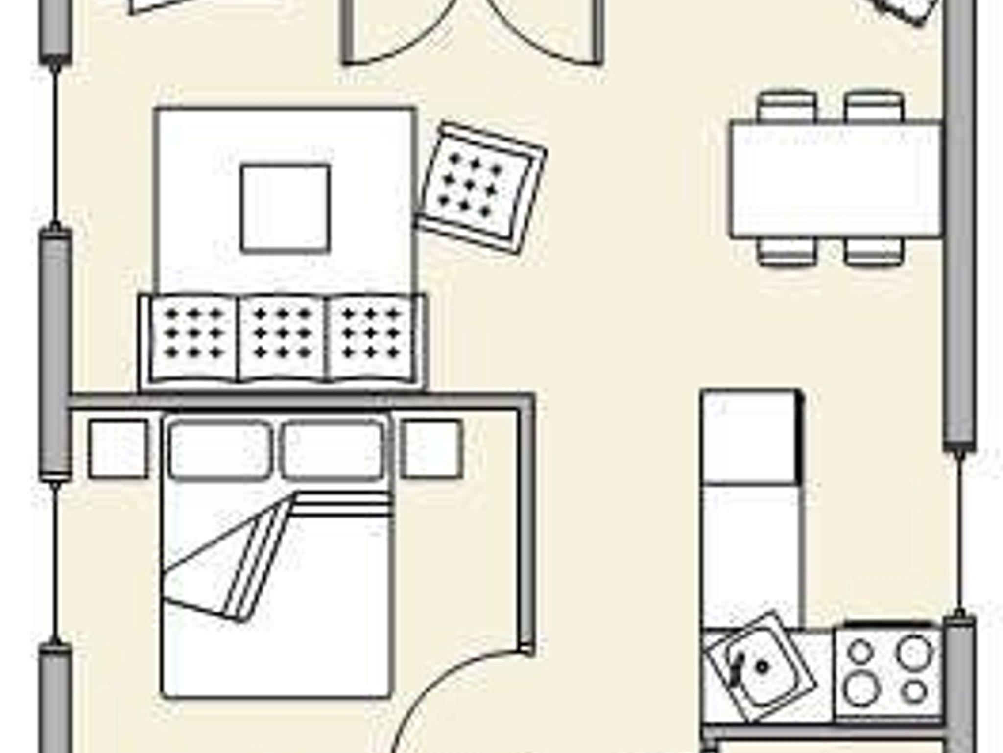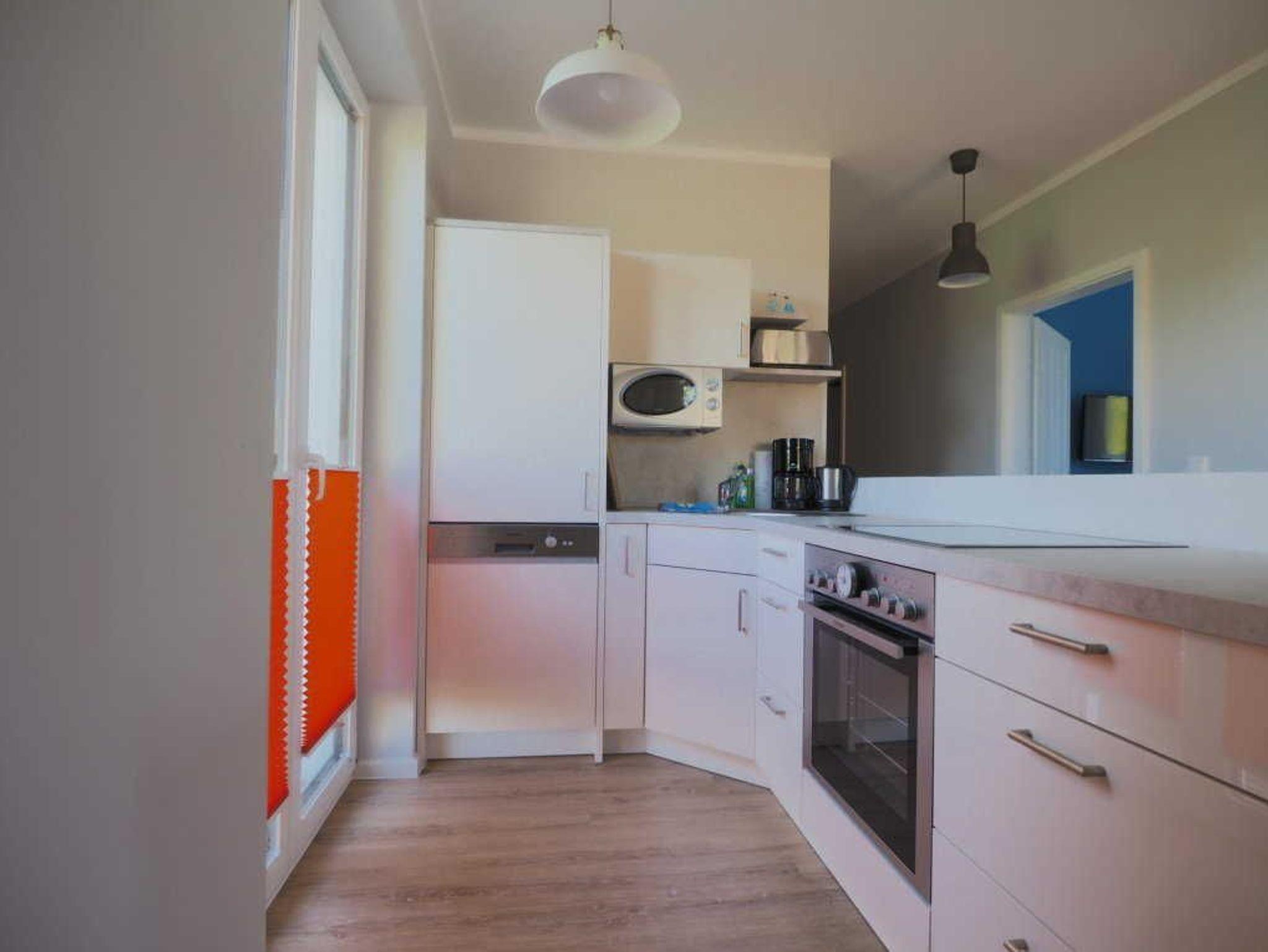 Offene, gemütliche 2-Zimmer-Wohnung im Erdgeschoss mit Schlafsofa im Wohnzimmer. Die vollständig ausgestattete Küche mit Essbereich ist zum Wohnbereich mit Sitzecke und TV geöffnet. Durch den Wohnbereich betreten Sie die schöne Terrasse mit Gartenmöbeln auf der Sie morgens beim Frühstück die Sonne genießen können. Das Schlafzimmer, ein Duschbad mit bodengleicher Dusche und eine Abstellkammer vervollständigen die sehr gute Ausstattung dieser Ferienwohnung.