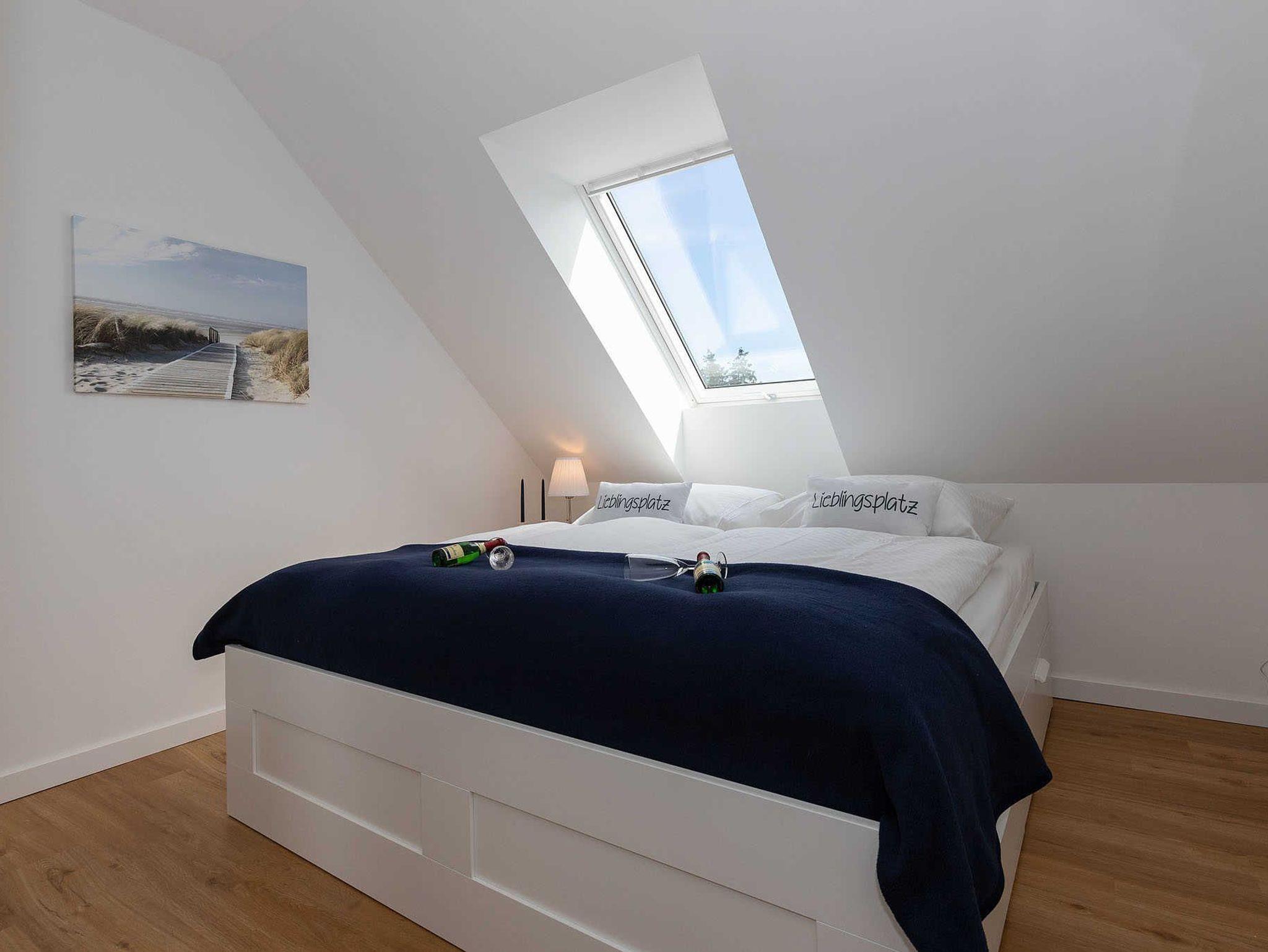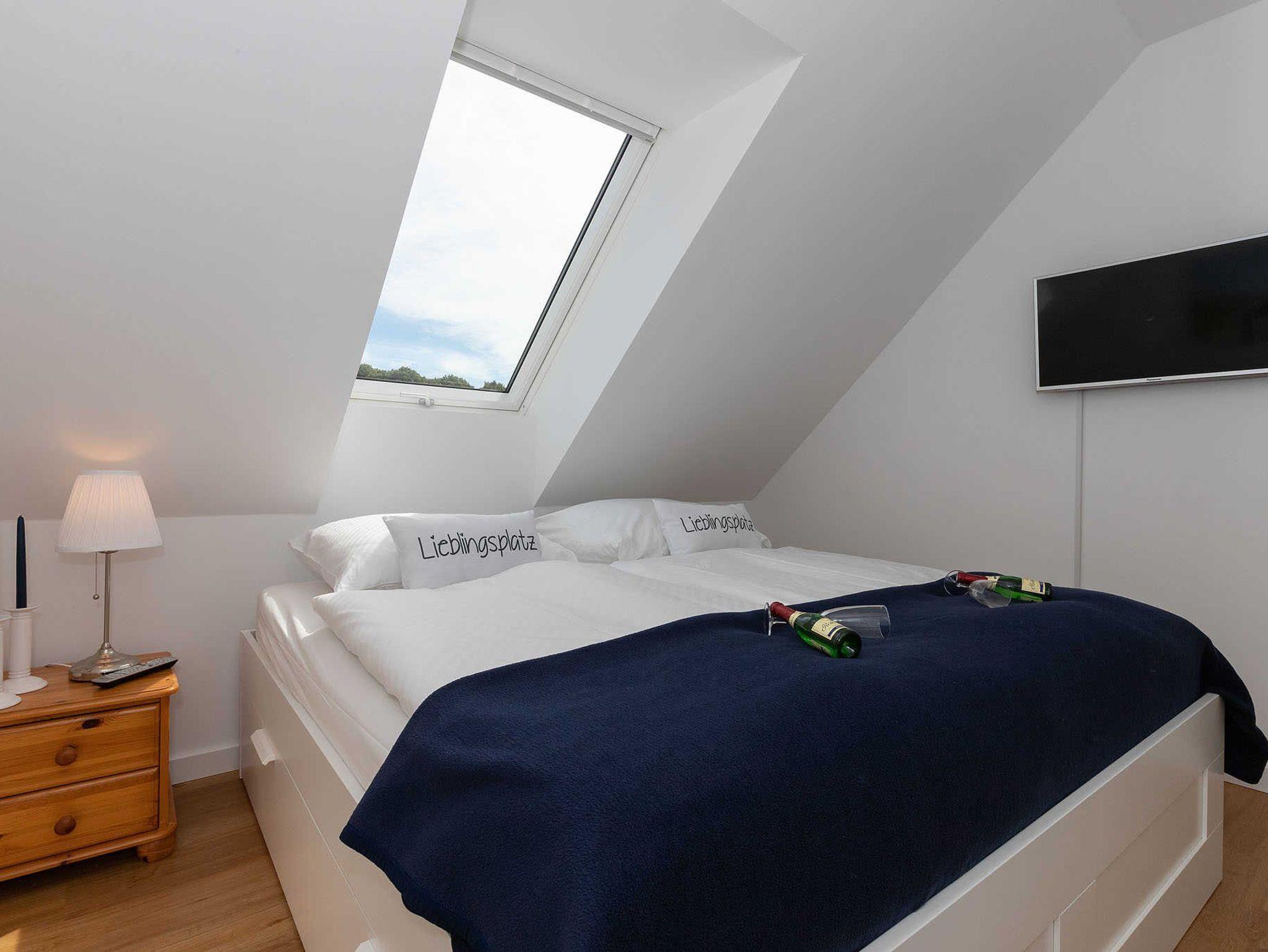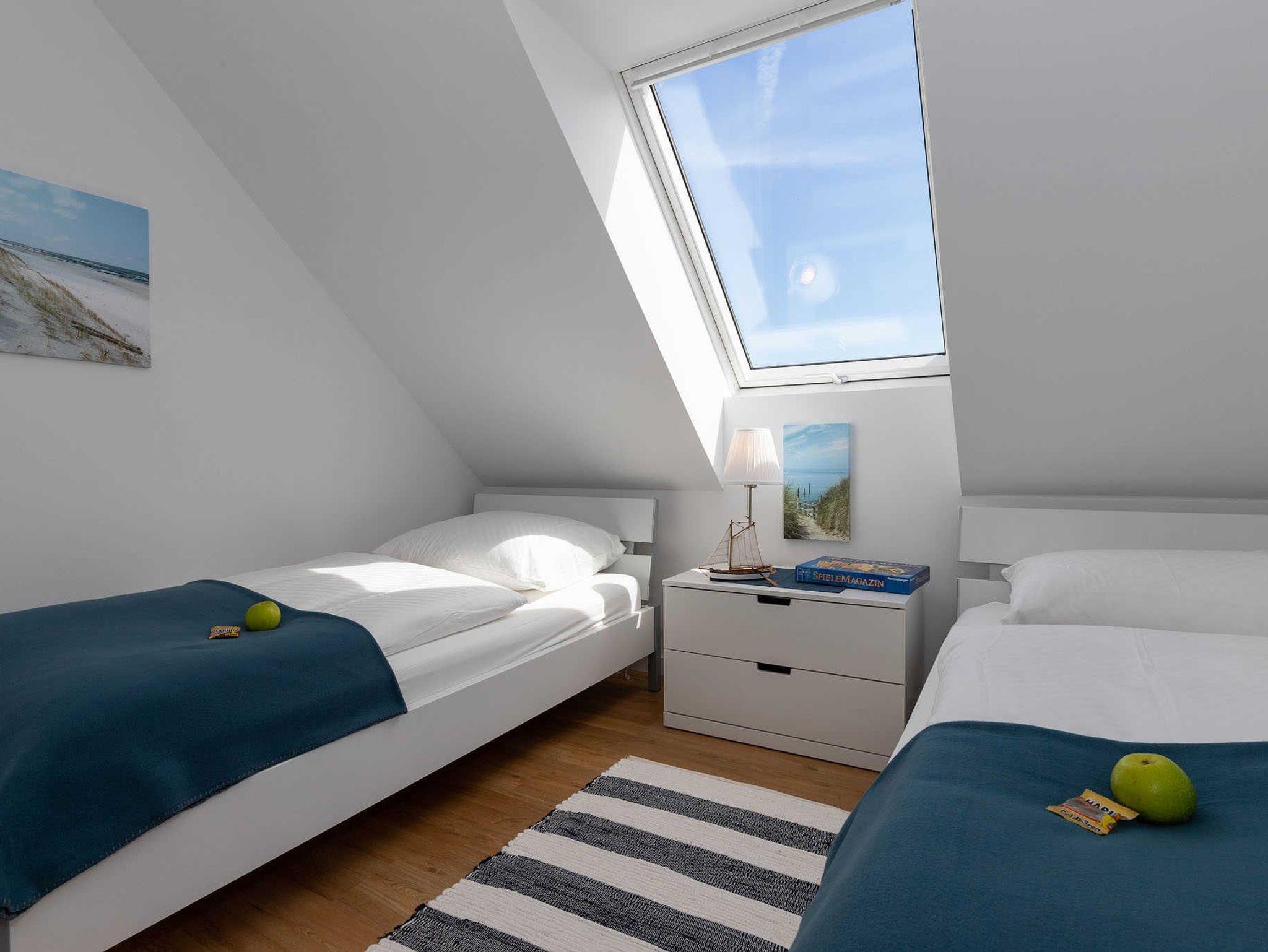 Die Wohnung verfügt über 2 Schlafzimmer. Im ersten Schlafzimmer ist ein Doppelbett (1,80m x 2,00m) und im zweiten Schlafzimmer sind zwei Einzelbetten (jeweils 1,00m x 2,00 m).