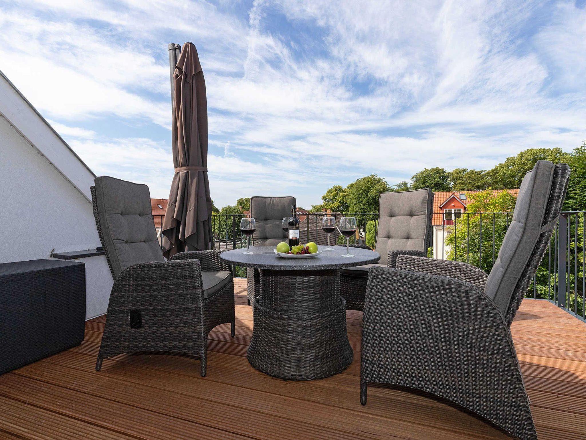 Auf der großen Loggia und einem weiteren Balkon können Sie bei entsprechendem Wetter dem Rauschen des Meeres lauschen, mit einem guten Glas Wein die Sterne beobachten und Ihren Urlubstag ausklingenlassen.