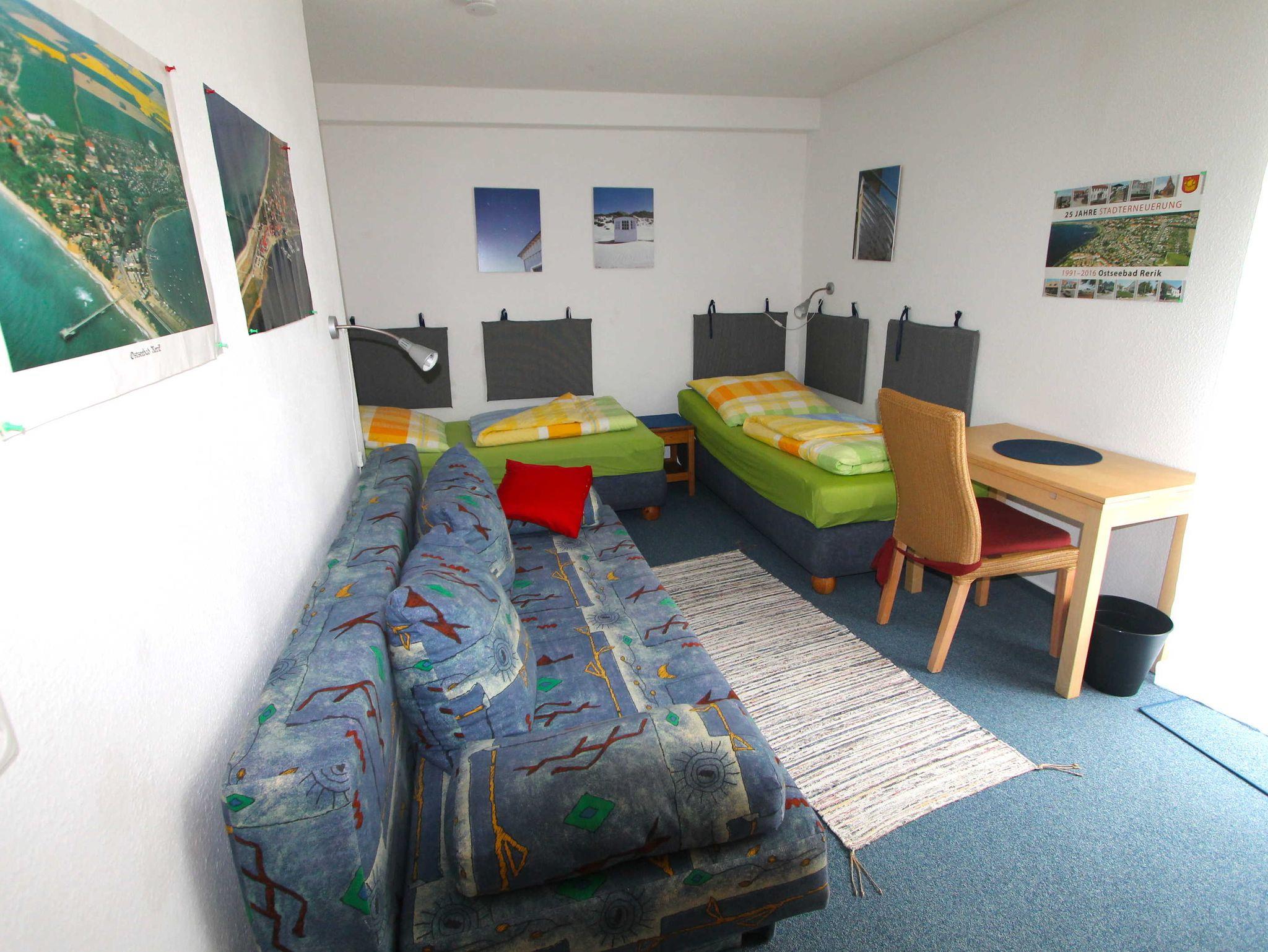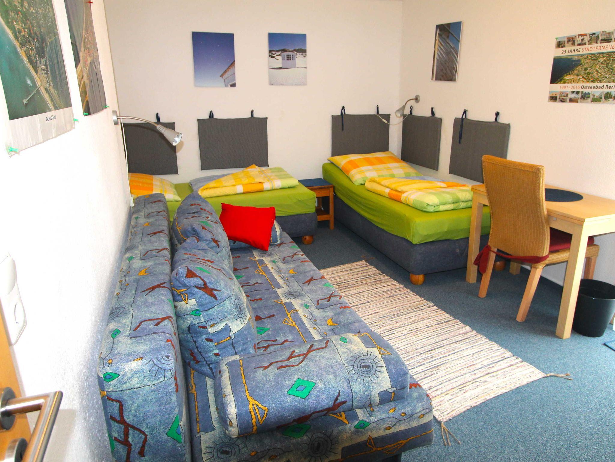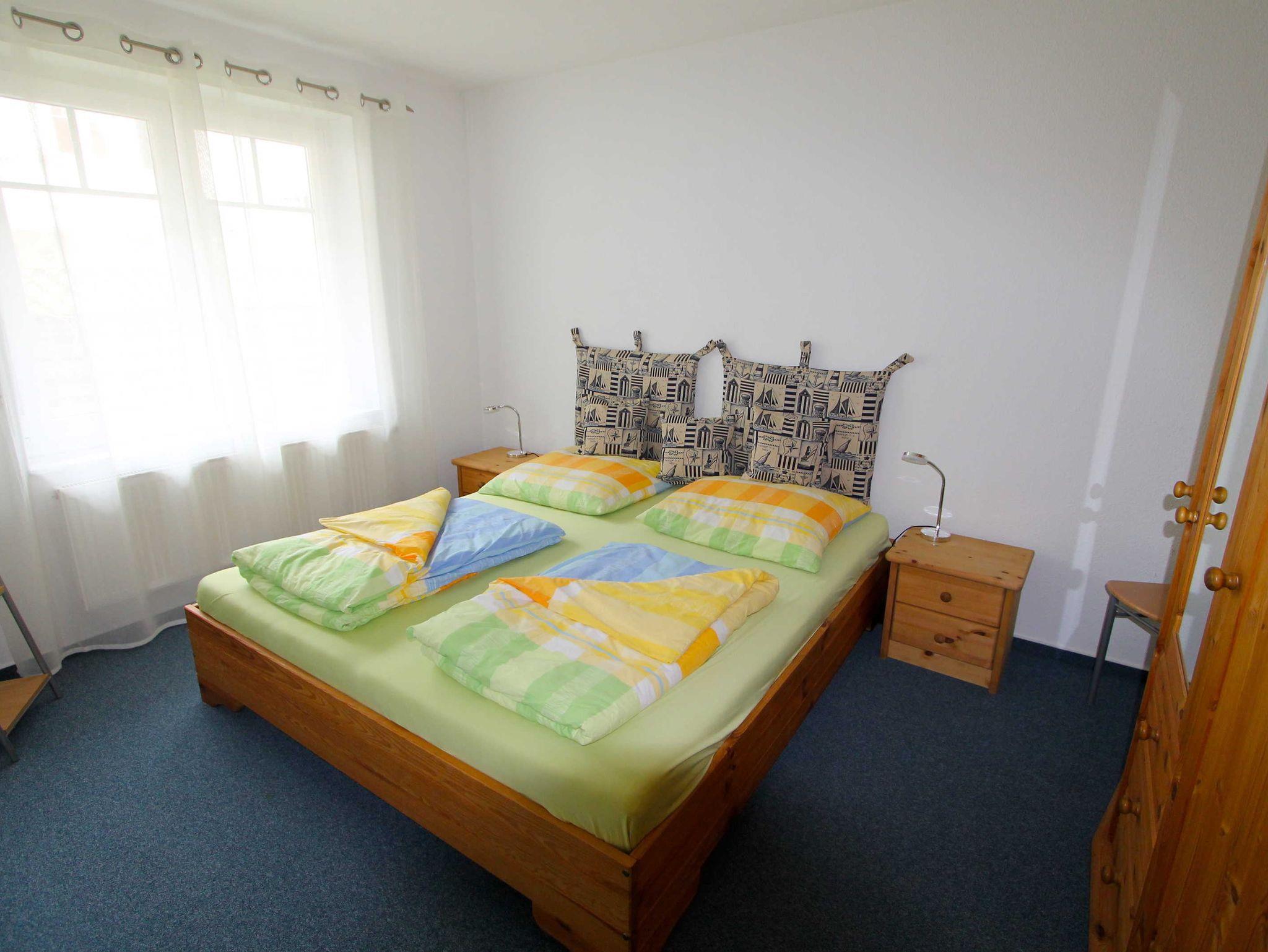 In einem Schlafzimmer befindet sich ein Doppelbett, im zweiten Schlafzimmer zwei Einzelbetten und eine Schlafcouch.