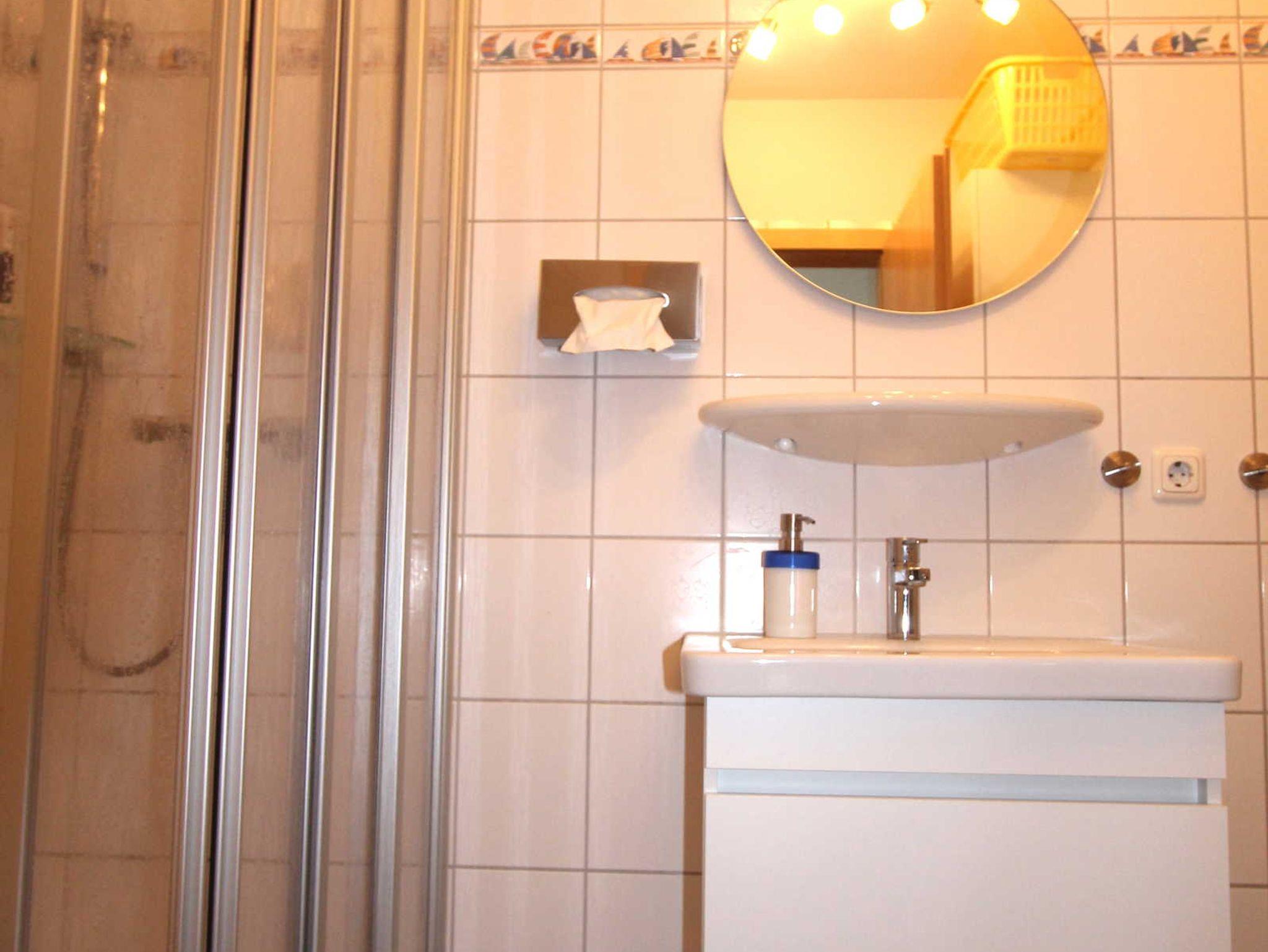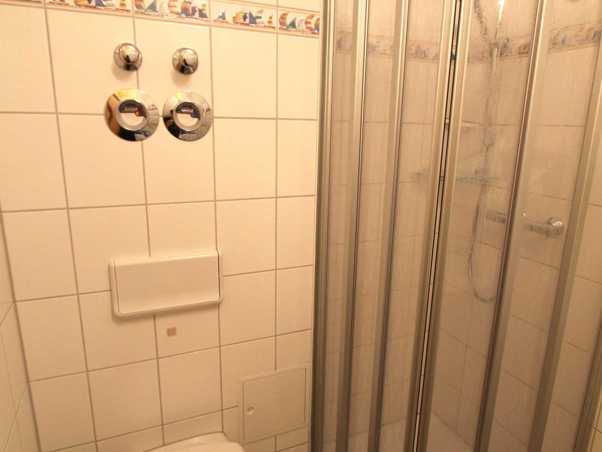Im Badezimmer befindet sich eine Dusche, WC sowie eine Waschmaschine.
