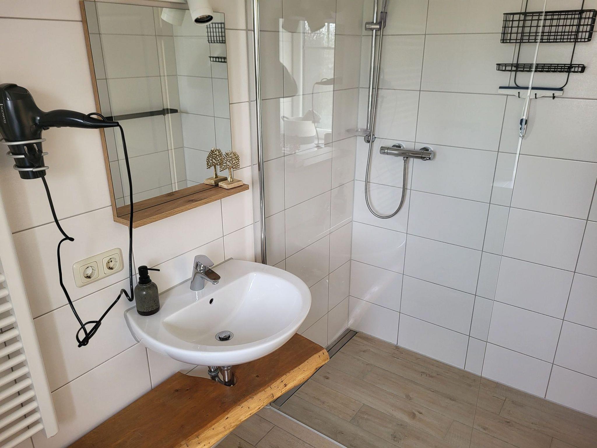 Das Ferienzimmer ist auch für Menschen mit Handicaps geeignet. Es ist ebenerdig, ohne Stufen und Schwellen und auch die Zugänge zur Terrasse und zur Dusche sind barrierefrei. Bitte beachte aber, dass der Duschzugang mit 48 cm Breite zu schmal für einen Rollstuhl ist. Die Wohnung ist daher nicht zu 100 % rollstuhlgerecht, sondern nur rollstuhl- und behindertenfreundlich. Das Haupthaus, in dem sich die Anmeldung und der Frühstücksraum befinden, ist über eine Rampe barrierefrei zugänglich.