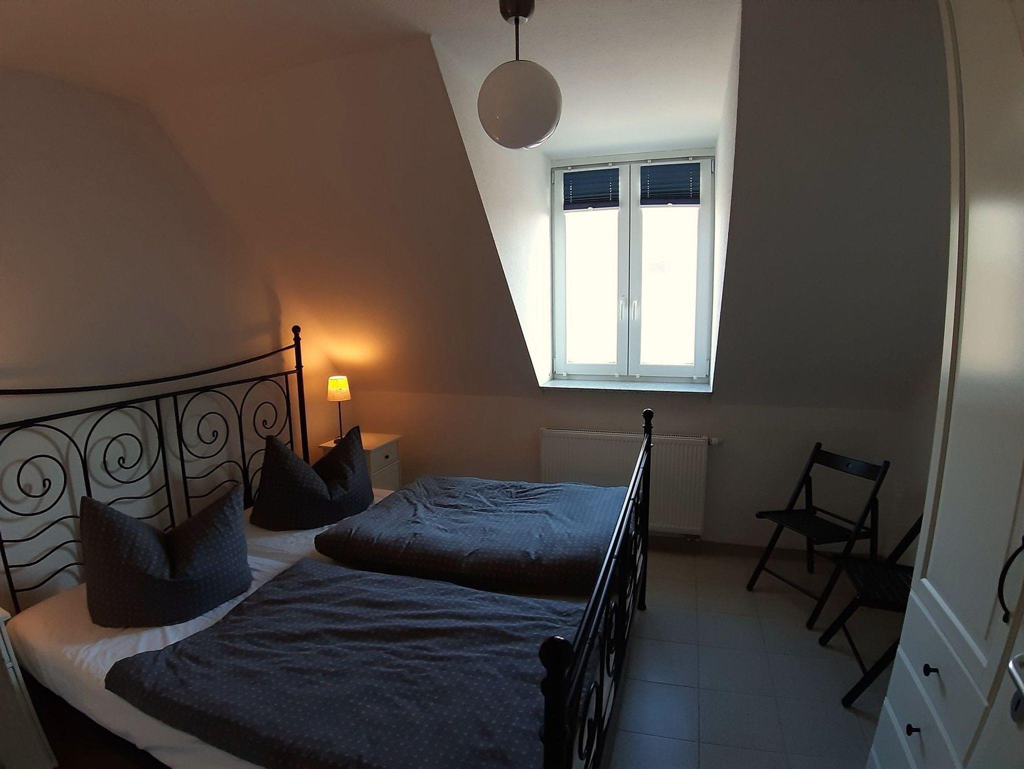 Die Ferienwohnung liegt im 2.OG und verfügt neben dem nach Süd-Osten und Nord-Westen ausgerichteten Wohn-Kochbereich mit Balkon und dem Schlafzimmer über einen weiteren abgeschlossenen Schlaf- u. ggf. Spielbereich in der Empore. Die Wohnung verfügt insgesamt über fünf Betten.