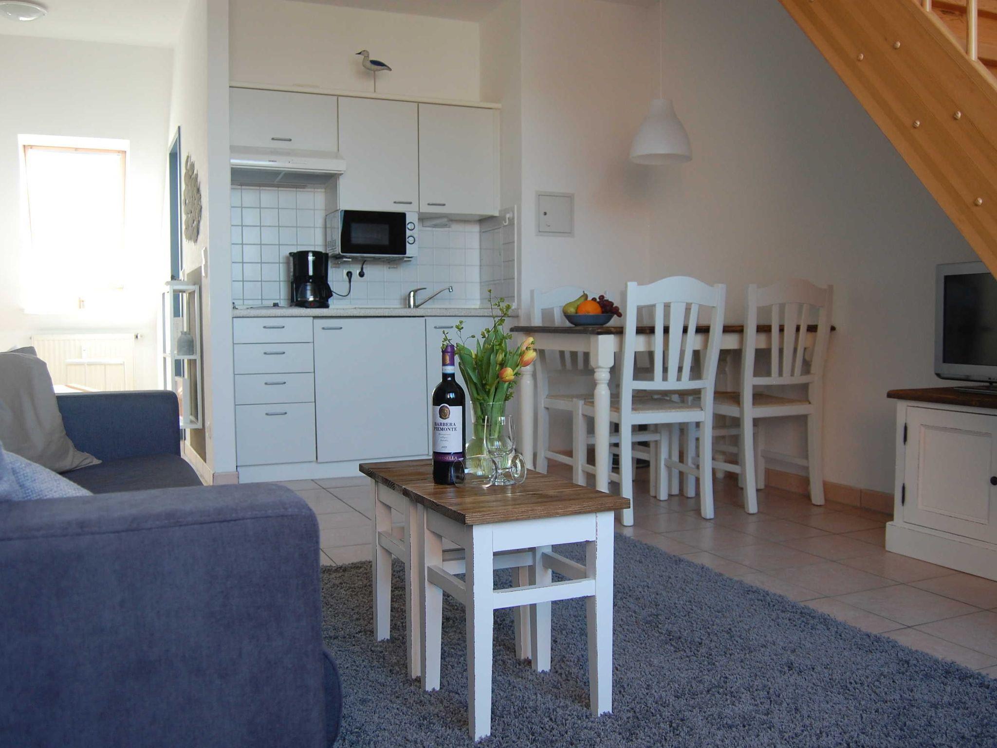 Die Ferienwohnung über 2 Ebenen in Rerik bietet Ihnen eine Loggia mit Blick auf die Ostsee und das vor der Haustür beginnende Salzhaff. Das separate Schlafzimmer hat ein Doppelbett und eine Ausziehcouch im offenen Wohnbereich. Die Küche ist gut ausgestattet.