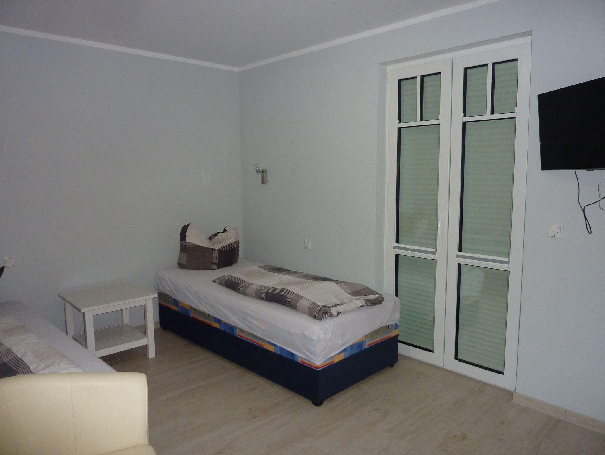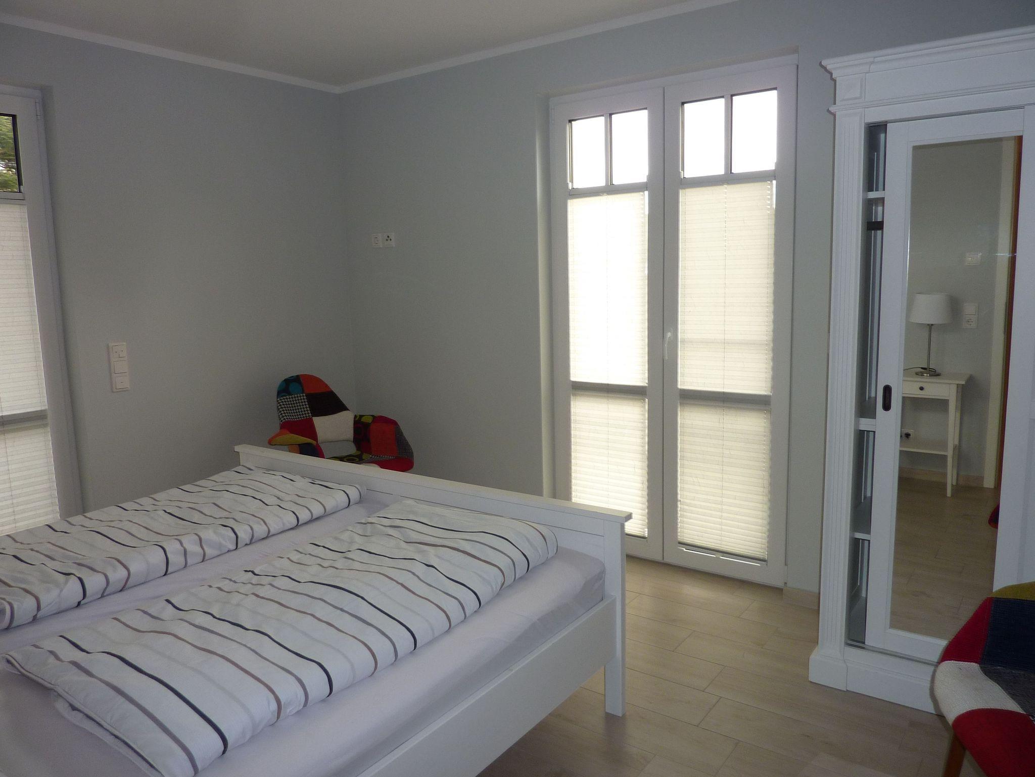 Unsere Ferienwohnung befindet sich in der 1. Etage. Sie verfügt über 2 separate Schlafzimmer. Ein Schlafzimmer mit Doppelbett und das zweite Schlafzimmer mit zwei Einzelbetten normaler Größe und verstellbarer Lattenroste. Als Verdunkelungsmöglichkeiten dienen Ihnen Plissees und Außenrolläden. Das Kinderschlafzimmer verfügt über einen Fernseher. Das Elternschlafzimmer nicht.