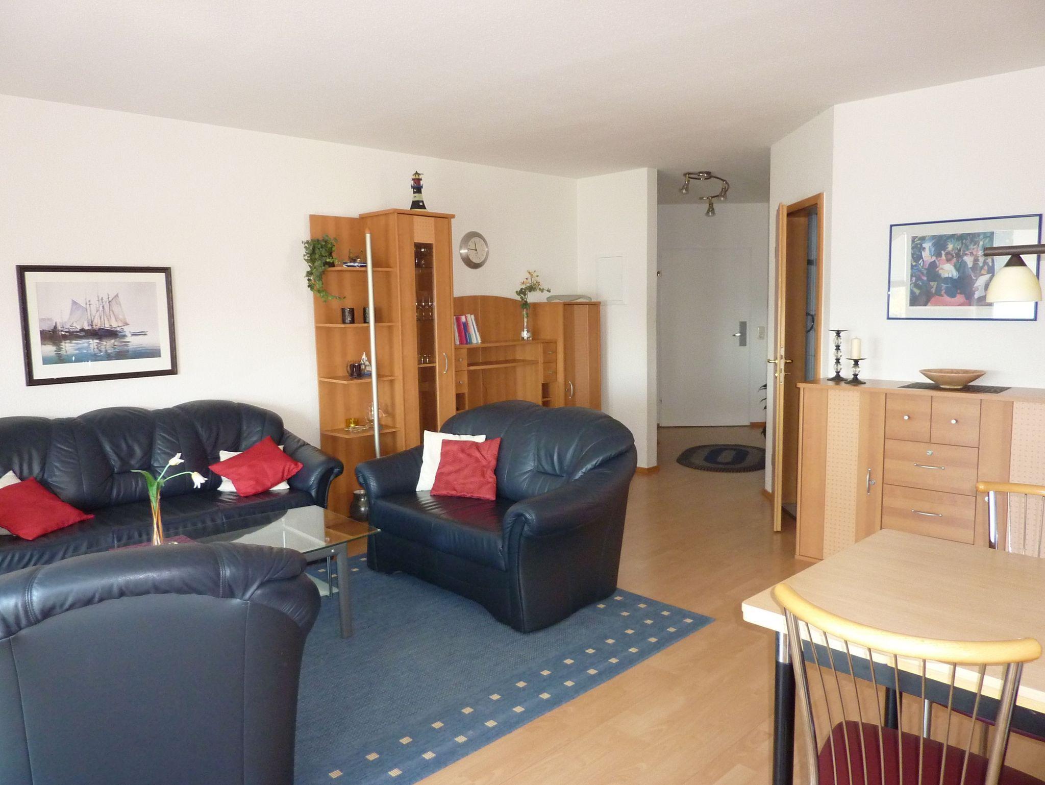 Die Wohnung teilt sich auf in zwei Schlafzimmer - 1 x Doppelbett u. 1 x Kinderzimmer Doppelstockbett, Wohnzimmer mit integrierter Küchenzeile, DU/WC. Wäschepaket ist mietbar - 20,.00 Euro/Person. Zur Anlage gehören ein Schwimmbad, Sauna, Solarium und Tiefgarage. Vom Balkon der Wohnung hat man einen traumhaften Blick auf Salzhaff und Ostsee.