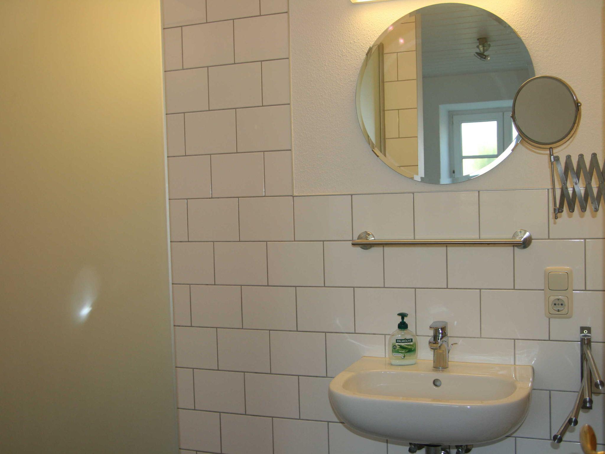Erdgeschoss: Großer Gemeinschaftraum mit Terrassenzugang. Küche (Backofen, Kühl/Gefrierschrank, Mikrowelle, Geschirrspüler, Kaffeemaschine). 2x Wohnbereich mit TV/Radio. 2x Doppelzimmer (Bett 1.80x2m; je 1 Babybett stellbar). 2x Duschbad/WC. Ebenerdig, behinderten-/ rollstuhlfreundlich, nur 2 Stufen im Eingangsbereich. Rollstuhlrampe vorhanden.