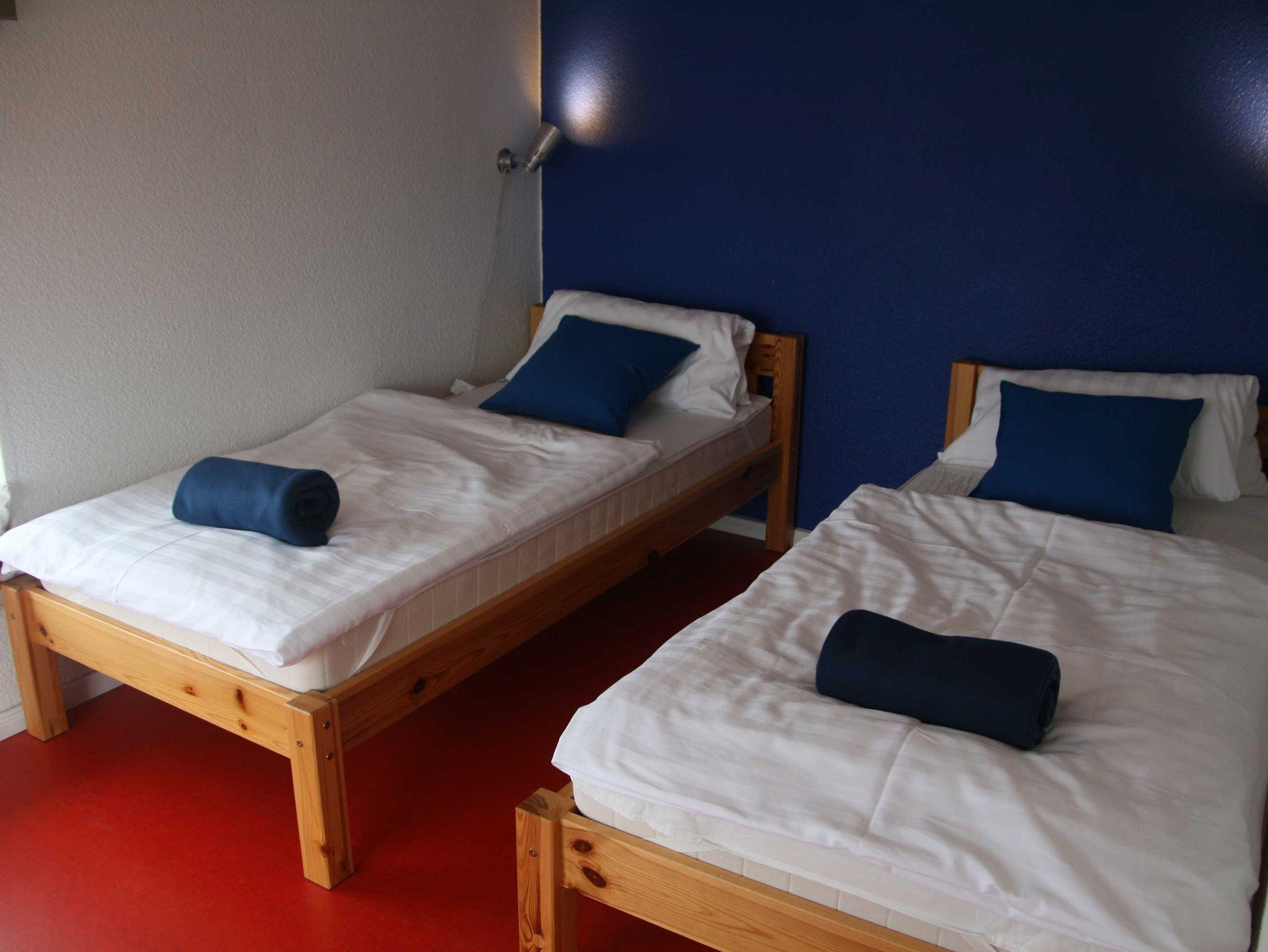 Obergeschoss: Duschbad/WC. 5 Schlafräume: davon 2x Doppelzimmer (Bett 1.80x2m,je 1 Babybett) und 3x Kojen Zweibett-Zimmer (2 Einzelbetten je 0.90x2m; ohne Kleiderschrank, Zimmerhöhe 1.90m, ideal als Kinderzimmer).