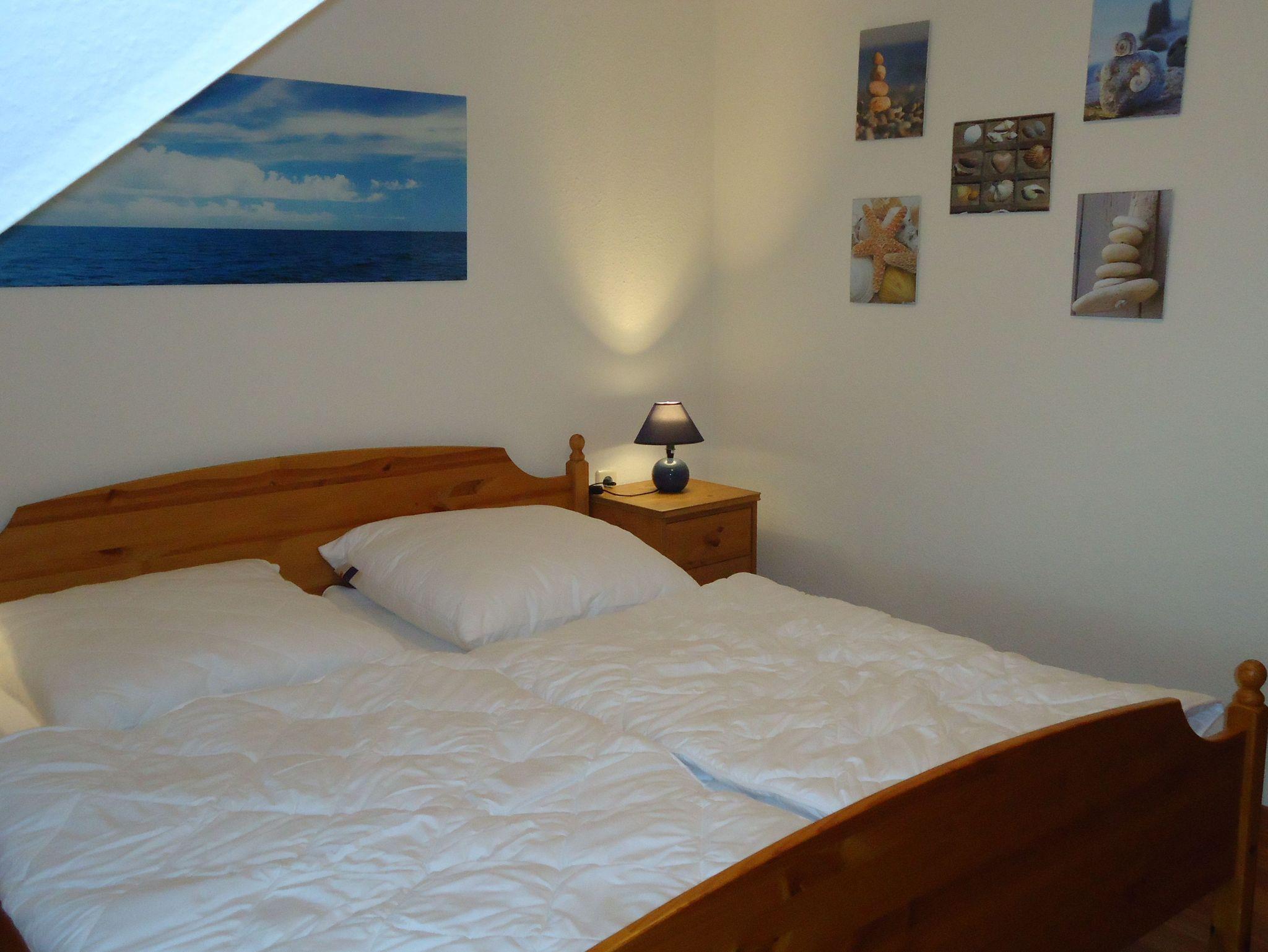 Nichtraucher-Wohnung, Südbalkon mit Haffblick. Moderne Küche mit Backofen, Ceranfeld, Spülmaschine, Mikrowelle, Kühlschrank mit Gefrierfach, Wasserkocher, Kaffeemaschine, Toaster, Mixer. SAT-TV, Flachbildschirm, DVD-Spieler mit USB-Anschluss, CD-Spieler, Radio, WLAN-Netz, Spielesammlung,Tauschbücherei. Im 1. Schlafzimmer Doppelbett, Kleiderschrank, Kommode, Kleiderdiener, Verdunkelungslamellen, gemütlicher Liegesessel mit Tisch und verstellbarer Leselampe. Im 2. Schlafzimmer 2 sep. Betten, Kommode, Maltisch mit 2 Stühlen, Velux-Verdunkelungsrollo, eigener Kleiderschrank. Für Kinder: Babybett, Hochstuhl, Bettgitter, Maltisch, Tritthocker im Bad, Spiele und Duplo/Legosteine. Im Haus: Solarium, Waschmaschine, Trockner (gegen Gebühr), Bäcker mit Café. Tiefgarage mit eigenem Stellplatz.