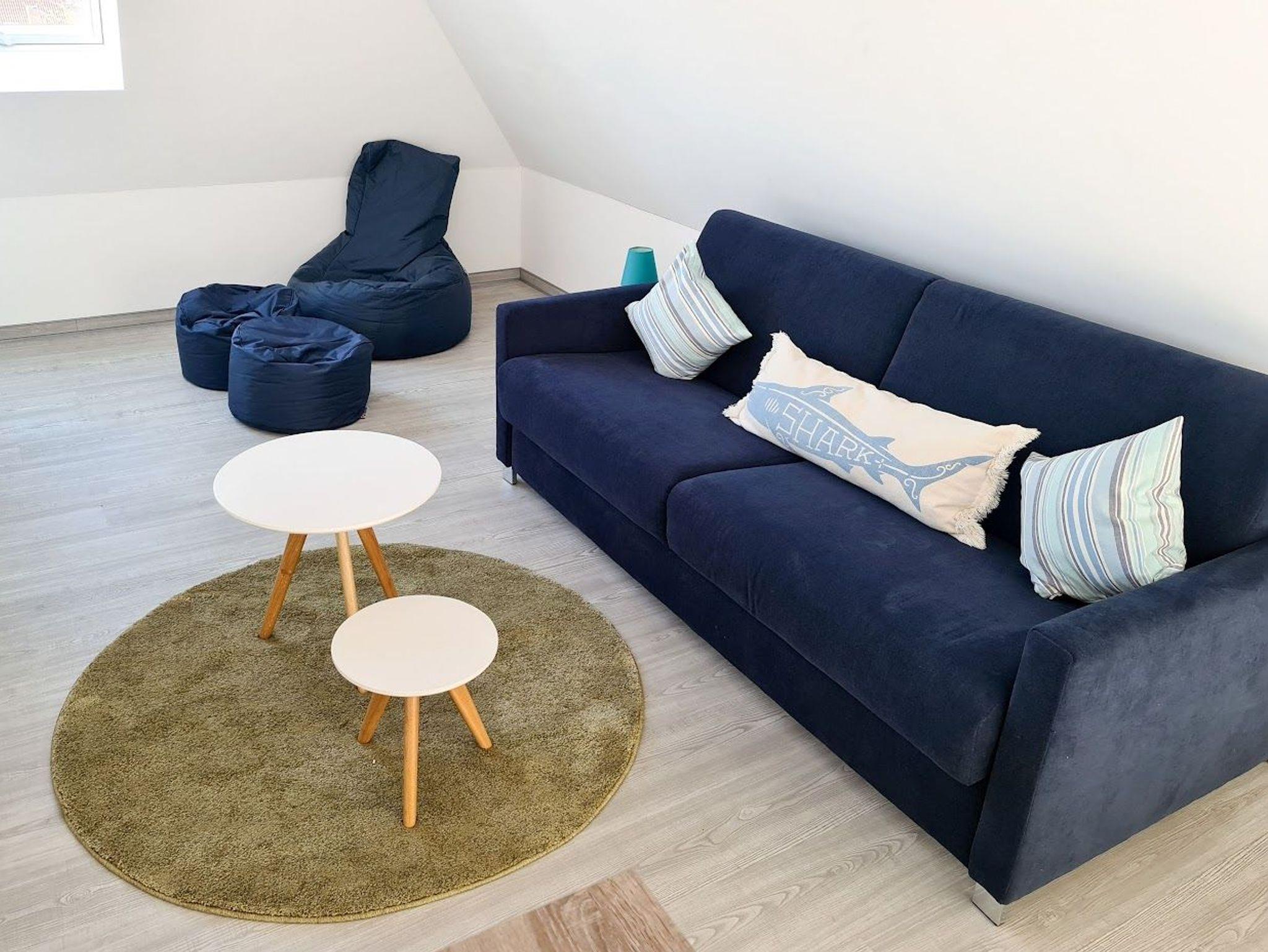 Die offene Galerie ist ein gemütlicher Rückzugsort, ausgestattet mit einem hochwertigen Schlafsofa und kuscheligen Sitzen. Ein Schreibtisch bietet ausreichend Platz zum Arbeiten und kann als Mobile Office genutzt werden.